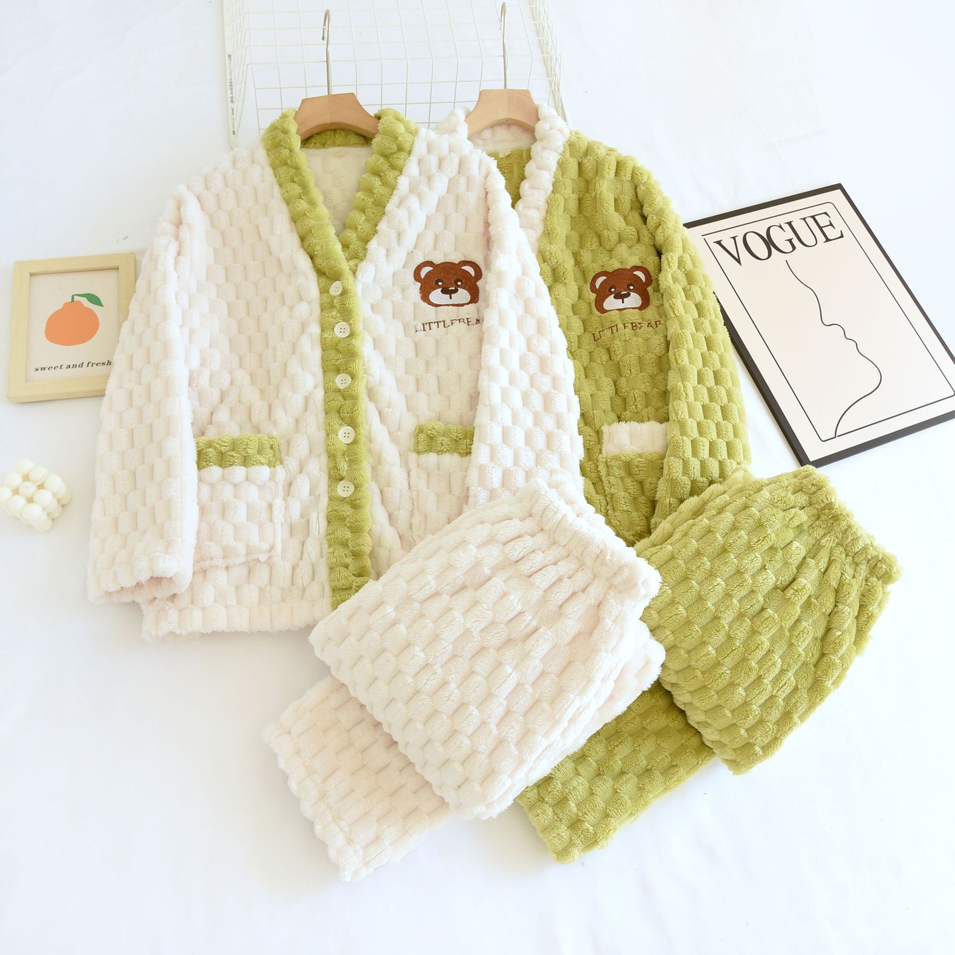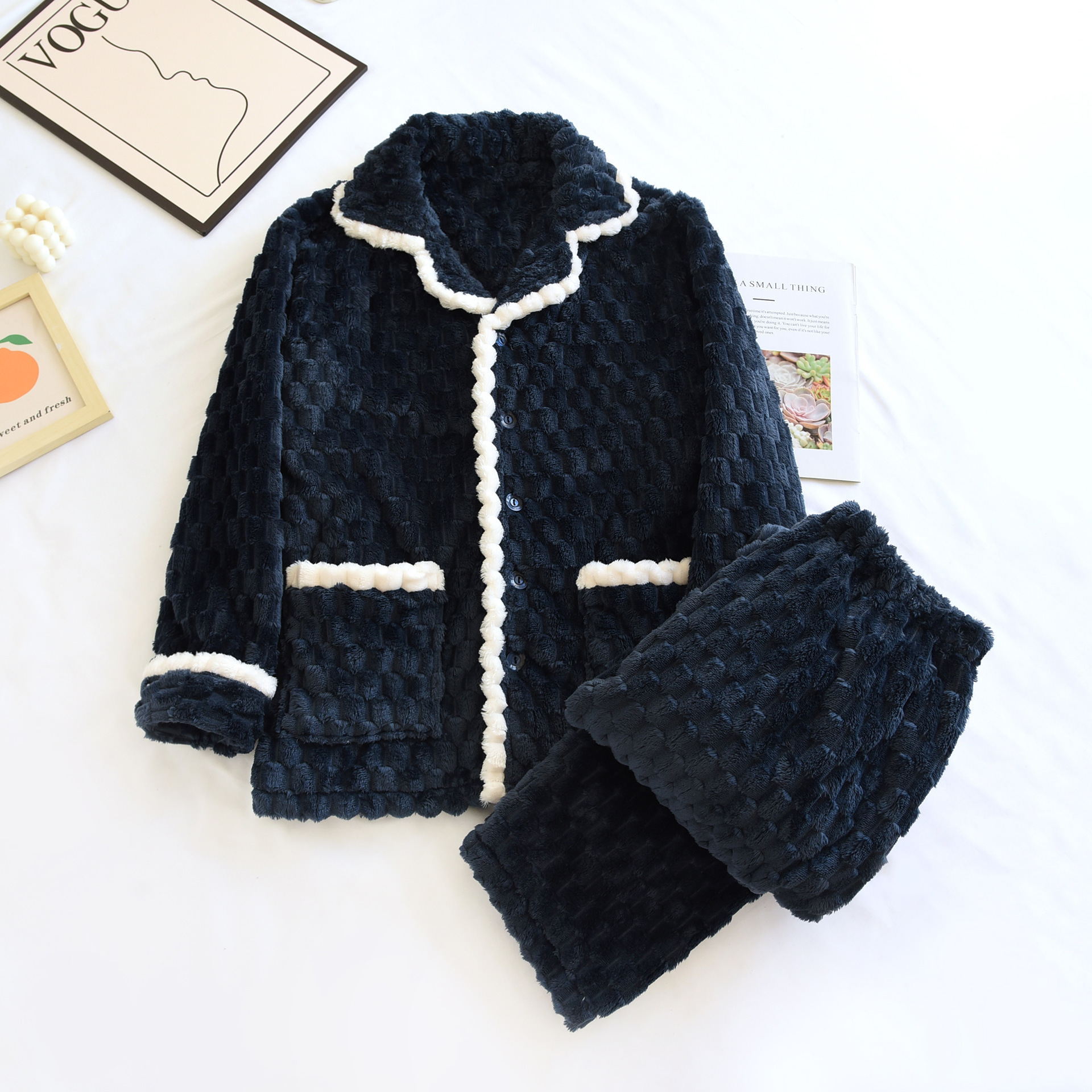 새로운 플란넬 커플 캐주얼 잠옷 가을과 겨울 기모 두꺼운 따뜻한 산호 양털 가정 옷 커플 세트