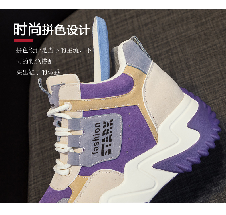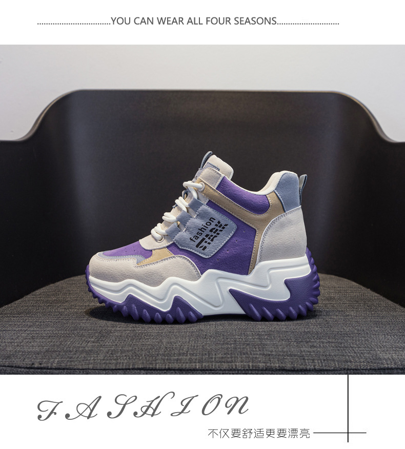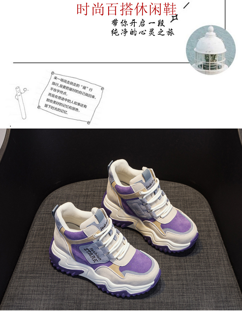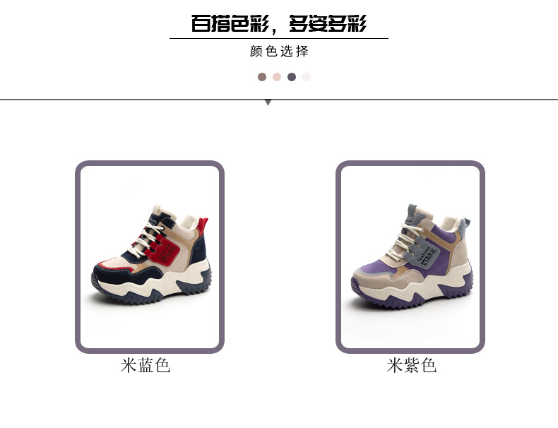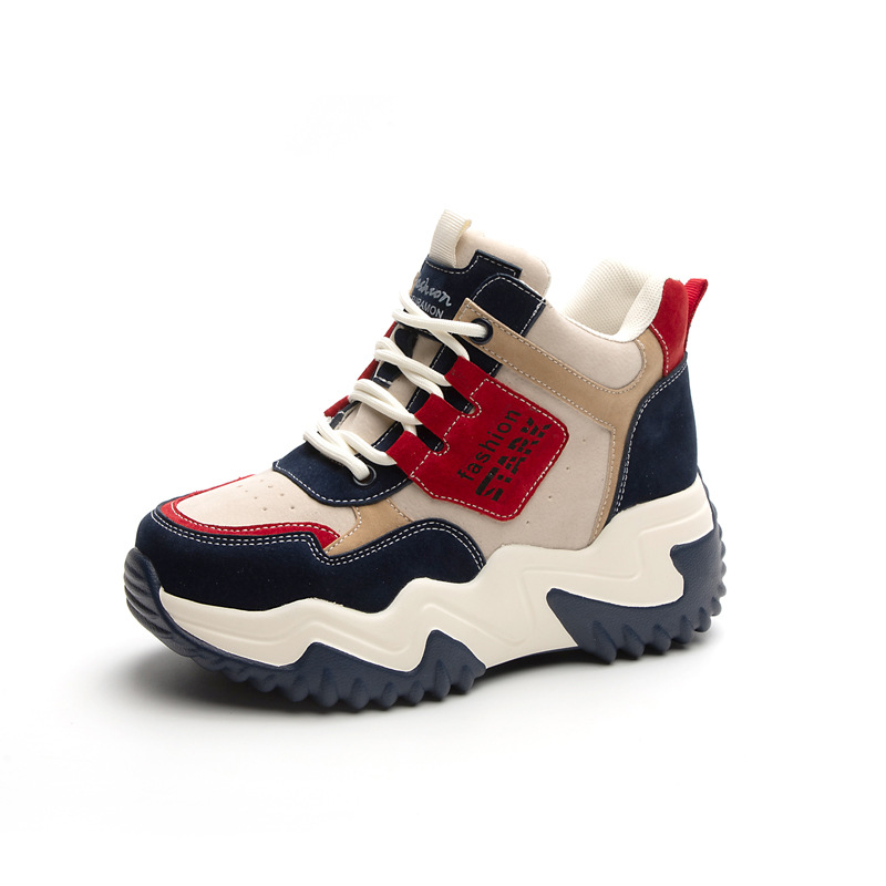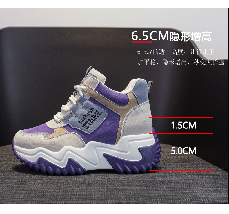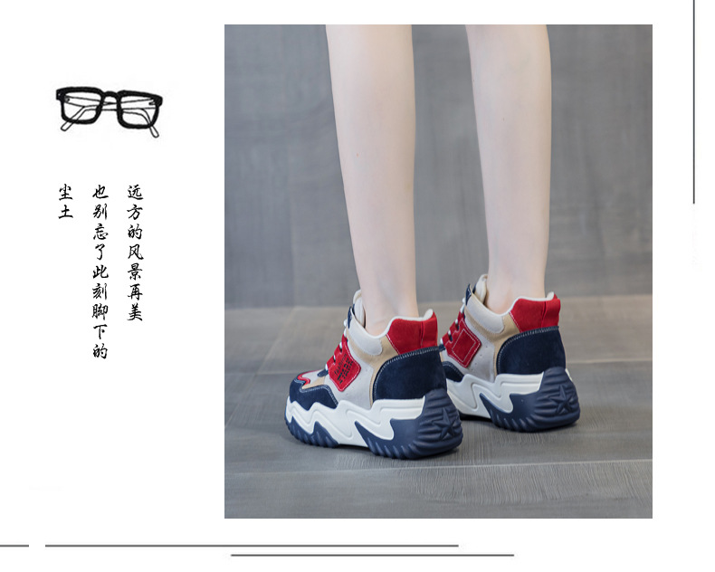 2023 가을 신상 키높이 한국 스타일 아빠 신발 두꺼운 밑창 배색 캐주얼 하이탑 슈즈 웨지힐 패션 여성화스토어 가기