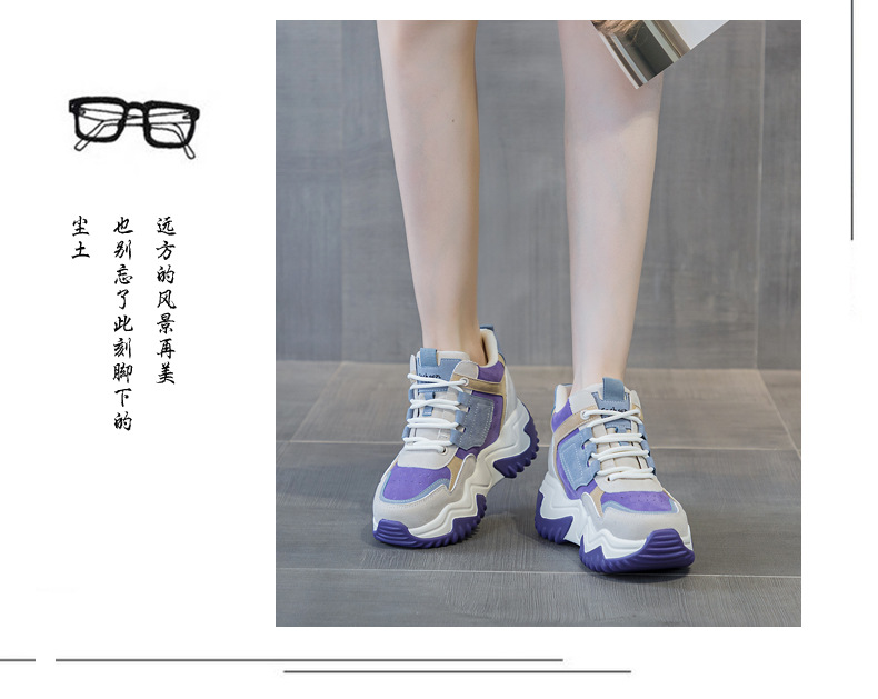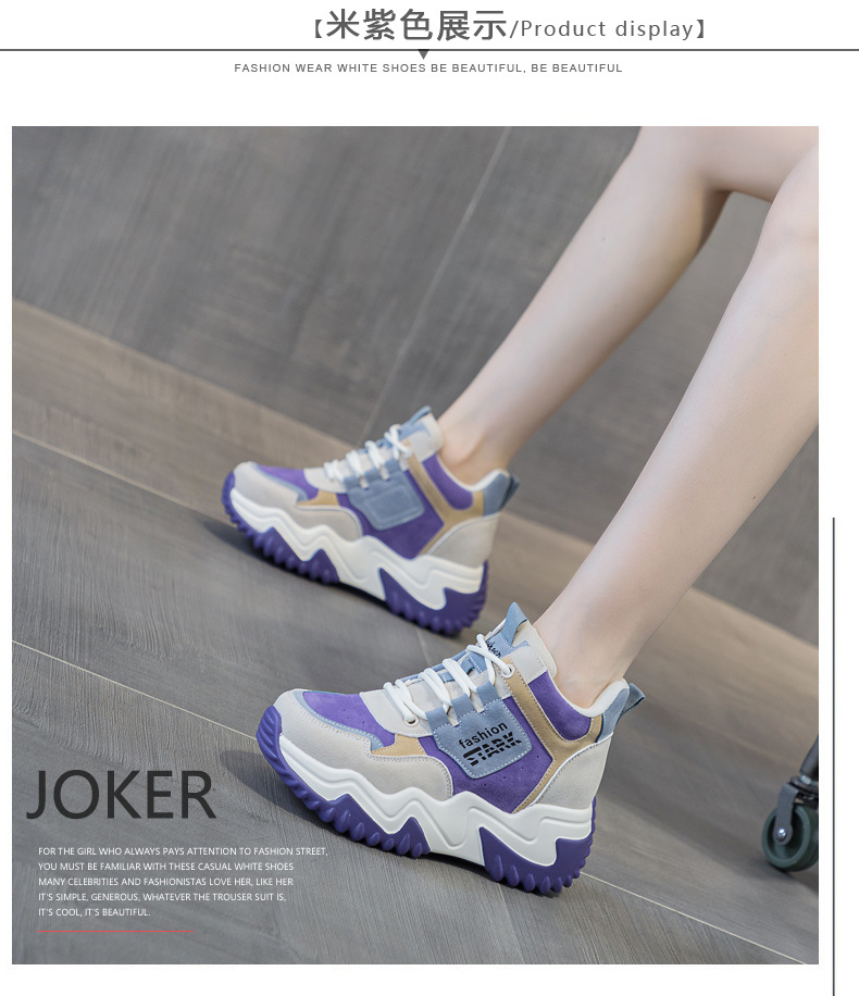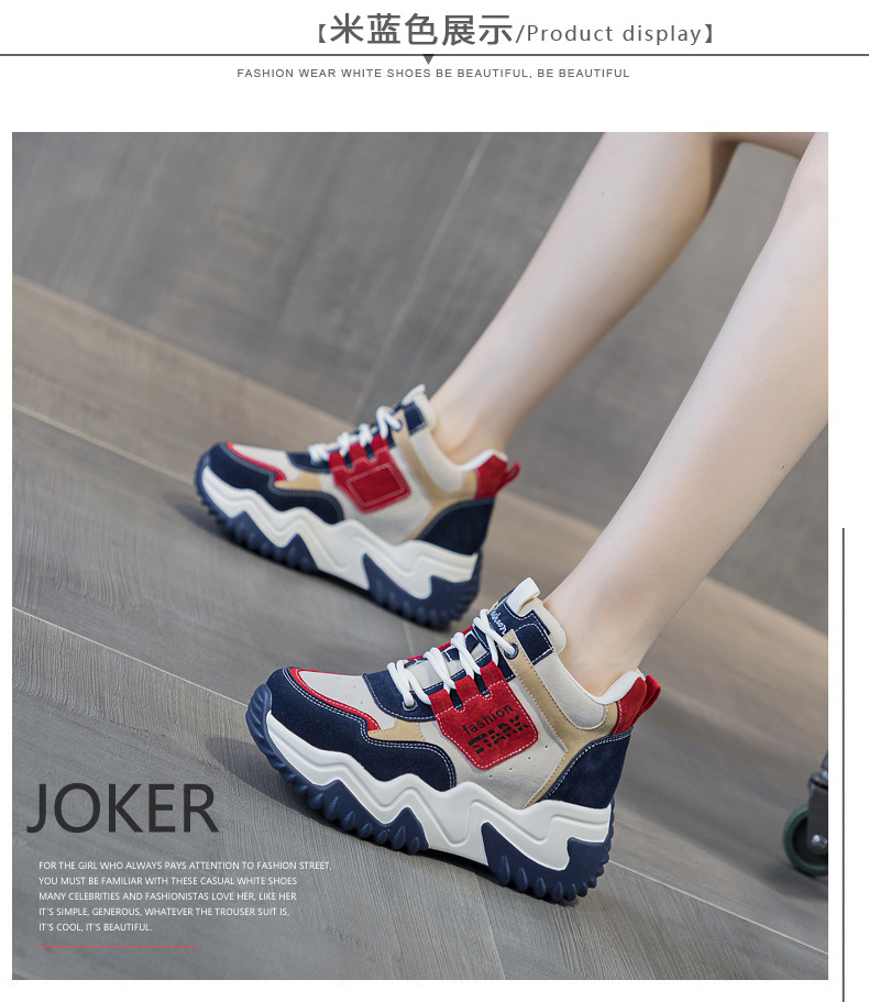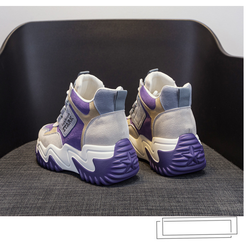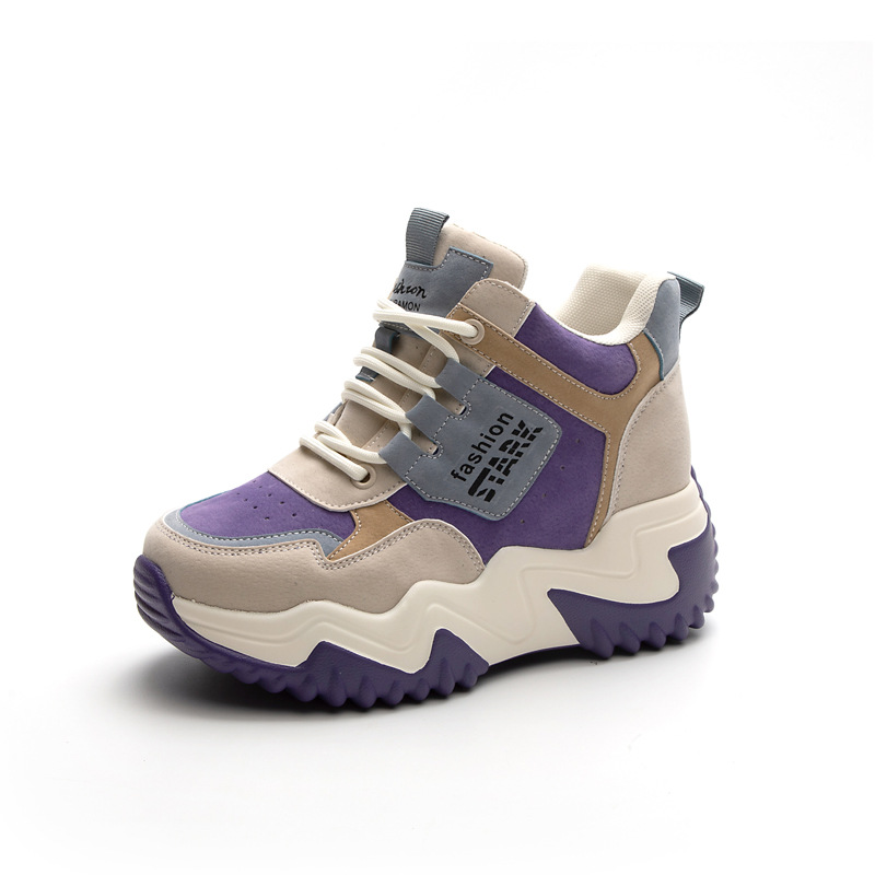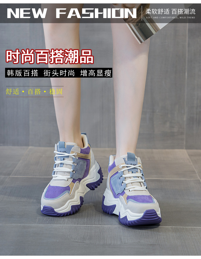 2023 가을 신상 키높이 한국 스타일 아빠 신발 두꺼운 밑창 배색 캐주얼 하이탑 슈즈 웨지힐 패션 여성화스토어 가기