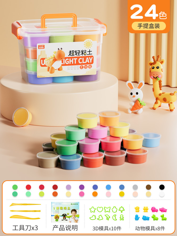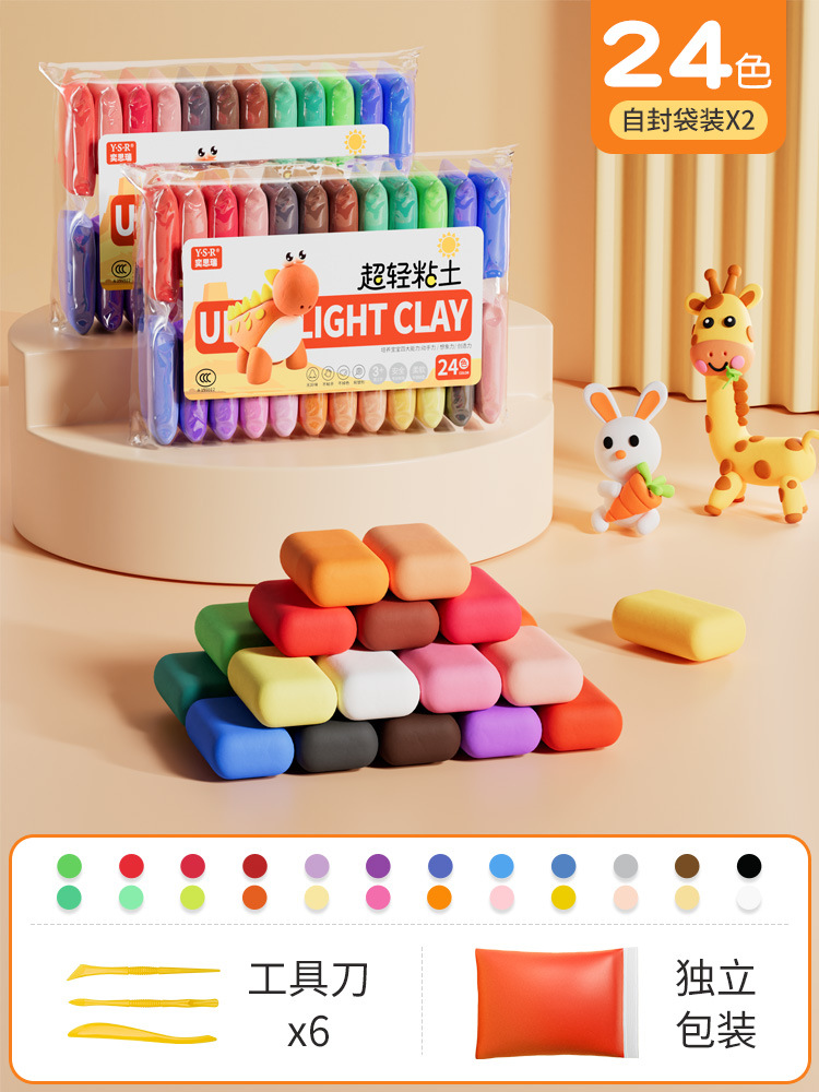 어린이 초경량 점토 교육용 장난감 친환경 무취 플라스틱 점토 수공예 장난감 식품 등급 24색