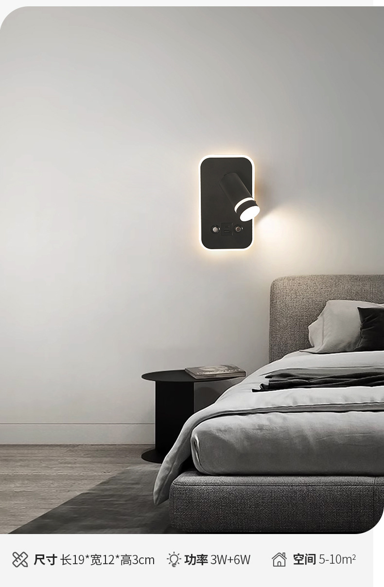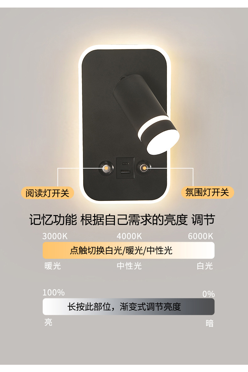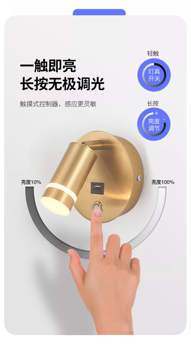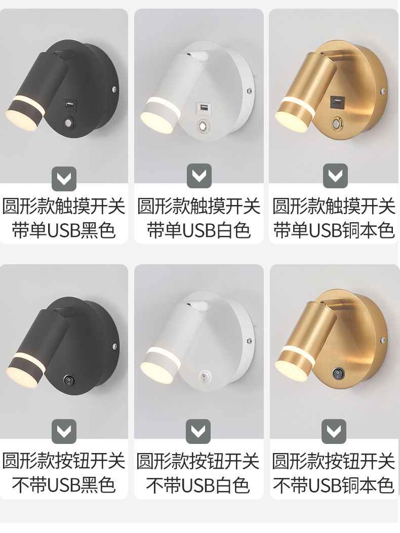 새로운 창조적 인 터치 벽 램프 LED dimmable 호텔 침대 옆 독서 램프 현대 미니멀리스트 침실 벽 램프 USB