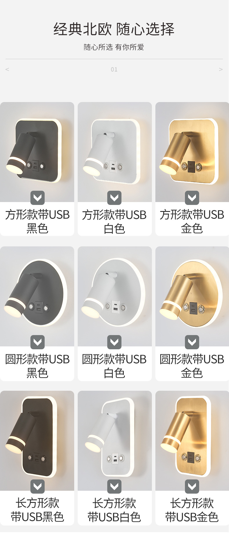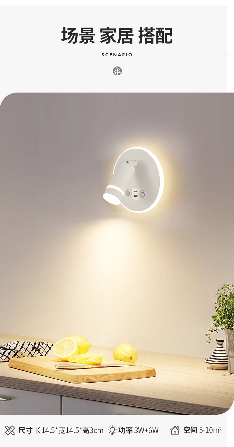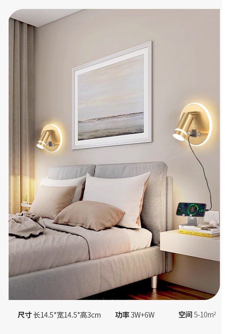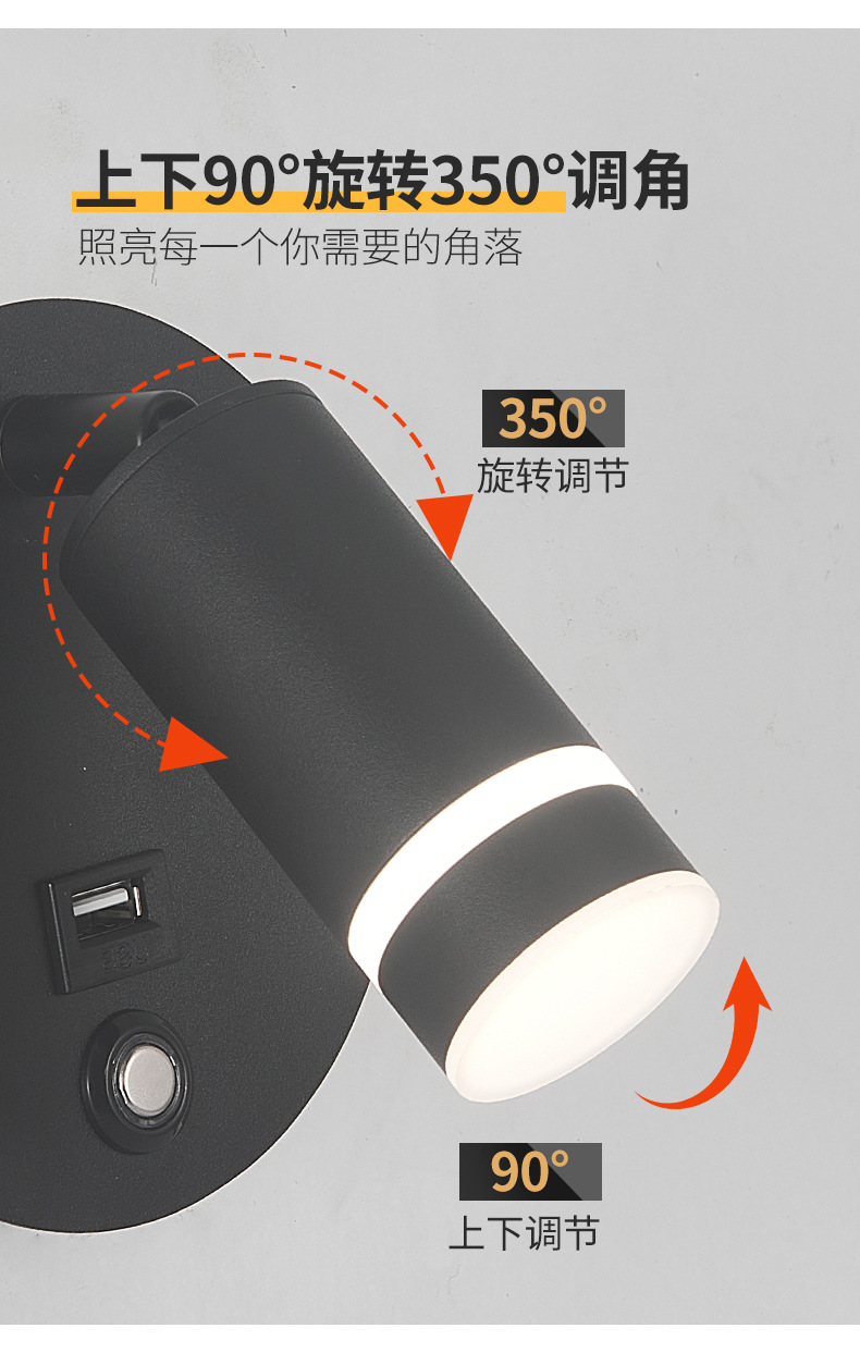 새로운 창조적 인 터치 벽 램프 LED dimmable 호텔 침대 옆 독서 램프 현대 미니멀리스트 침실 벽 램프 USB