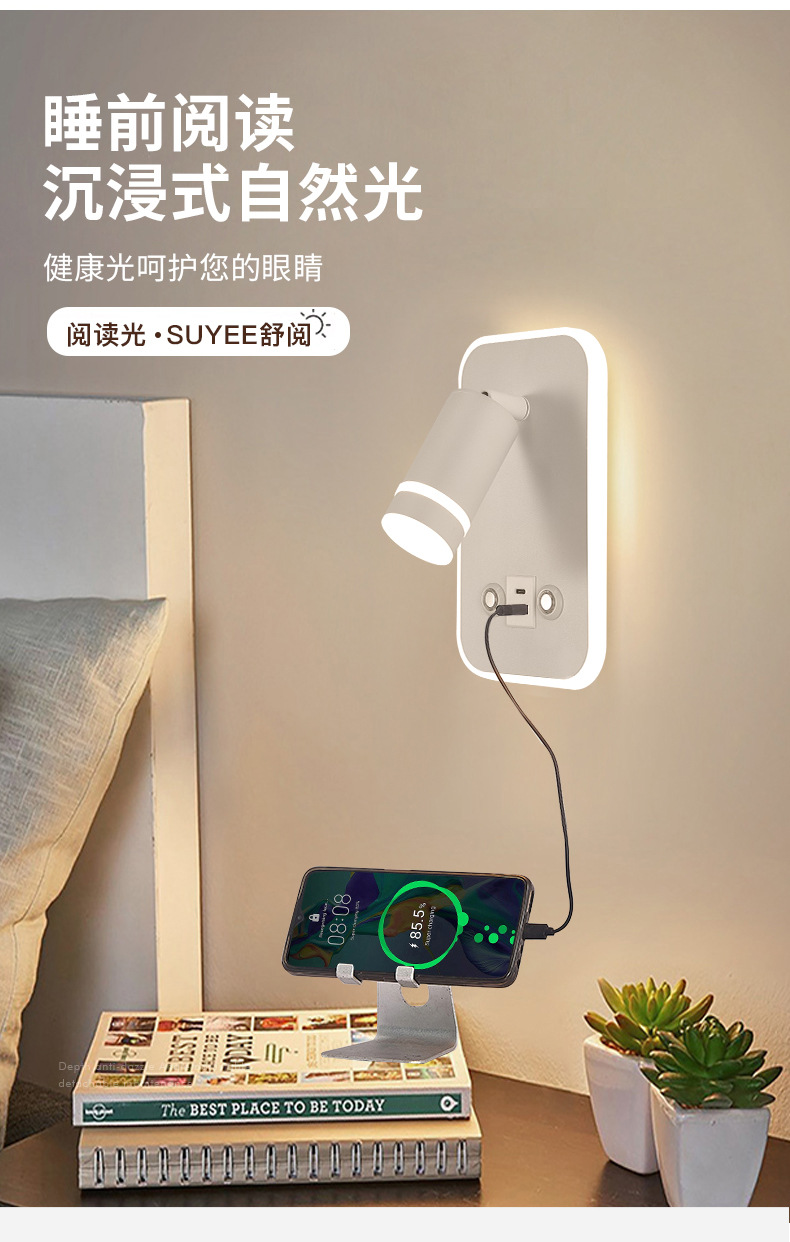 새로운 창조적 인 터치 벽 램프 LED dimmable 호텔 침대 옆 독서 램프 현대 미니멀리스트 침실 벽 램프 USB스토어 가기