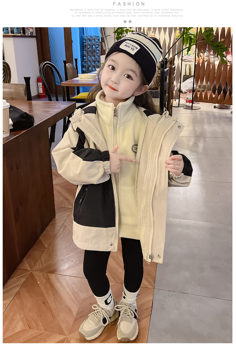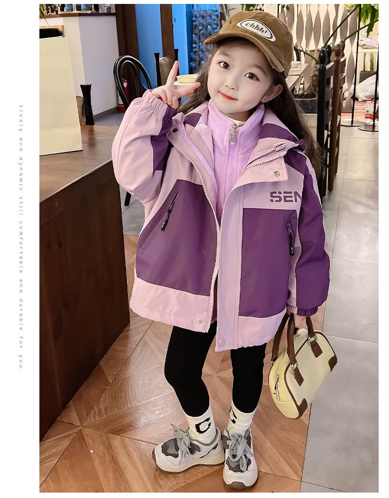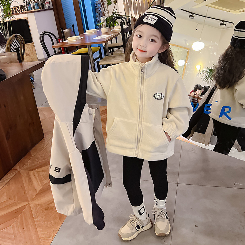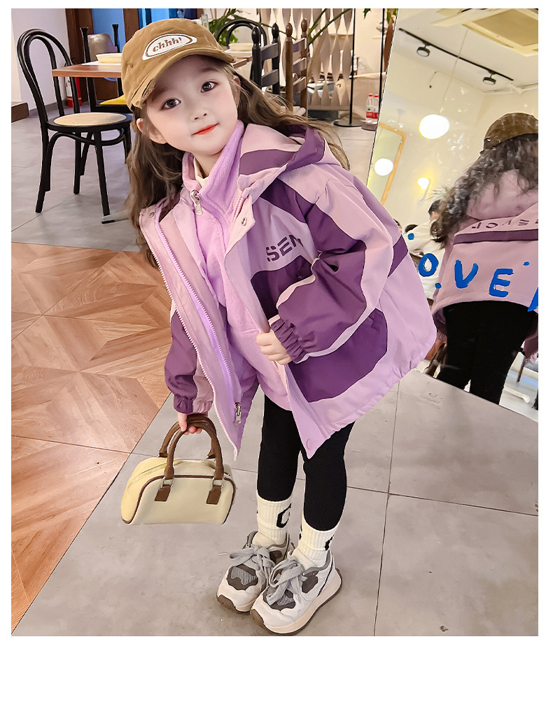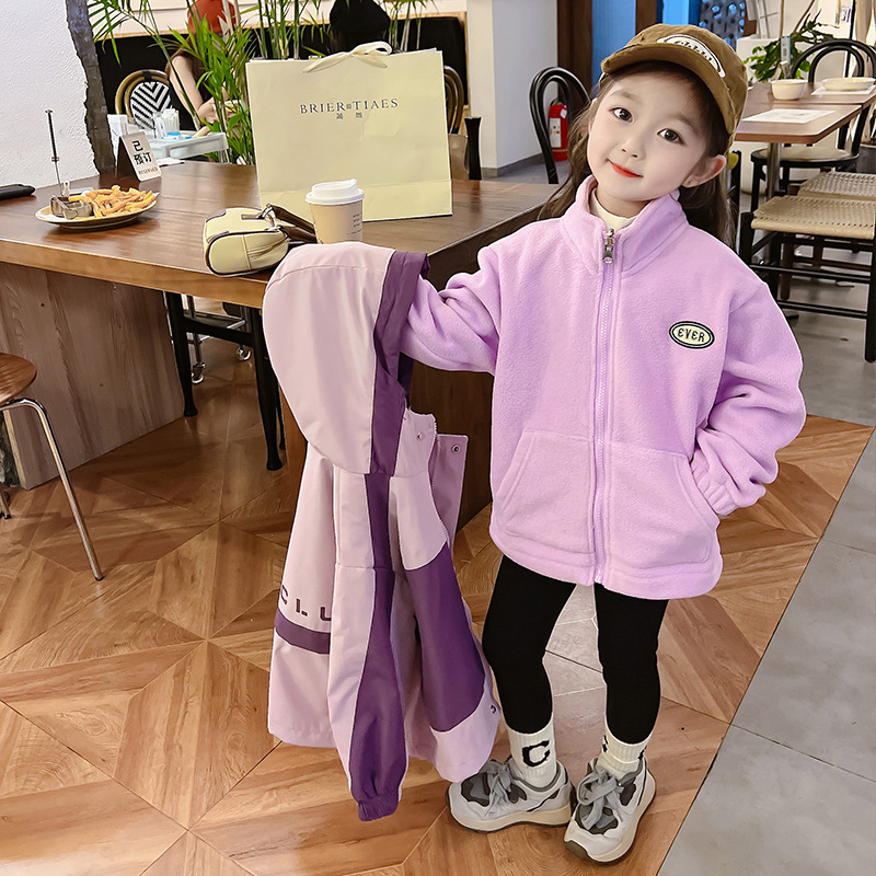 소녀의 충전 옷 3 대 1 분리 가능한 2024 새로운 스타일 두꺼운 최고 소녀의 가을 옷 어린이 가을 외부스토어 가기