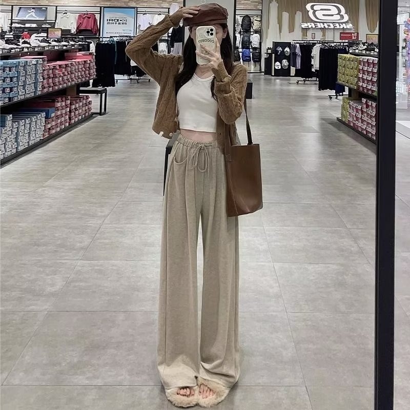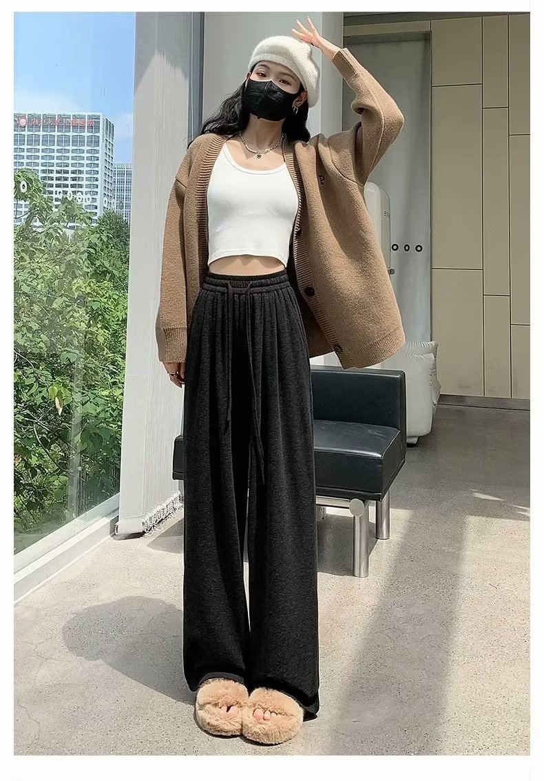 게으른 와이드 레그 팬츠 여성 가을 2023 새로운 니트 찹쌀 바지 교수형 감각 느슨한 스트레이트 캐주얼 바지스토어 가기