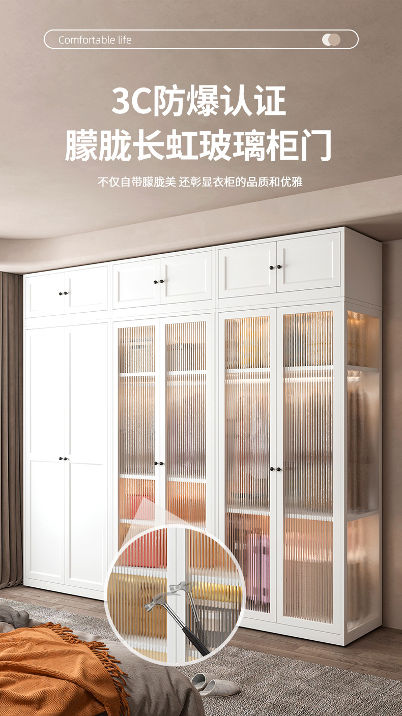 단철 옷장 2023 새로운 스타일의 가정용 침실 옷장 캐비닛 간단한 유럽 스타일의 유리 문 금속 조합 보관 캐비닛스토어 가기