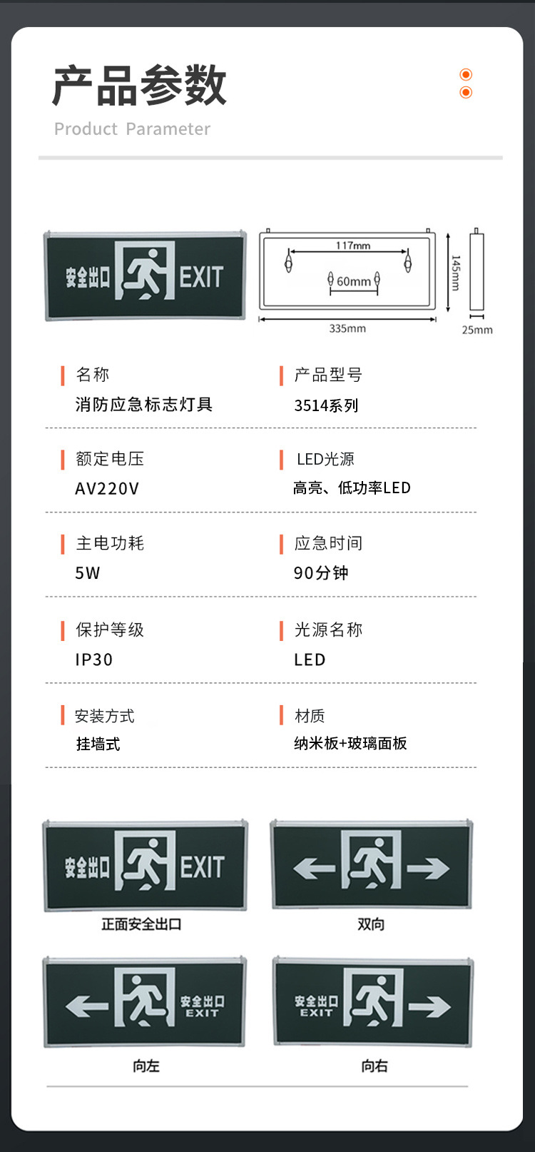 • Minhua 전기 기술자 안전 출구 표시등(양방향) 단면