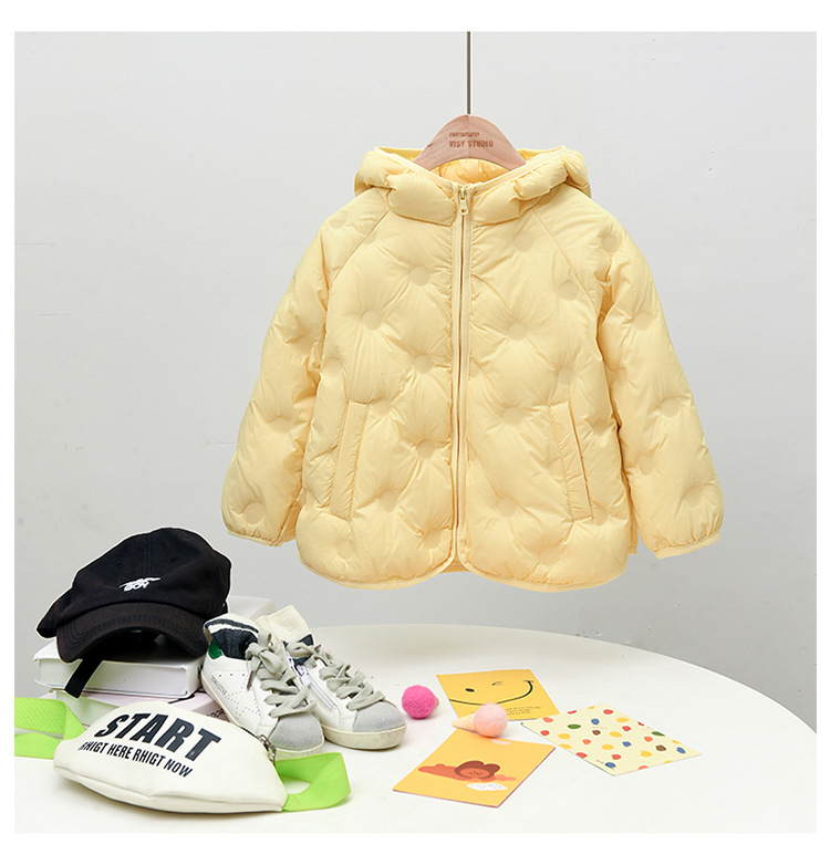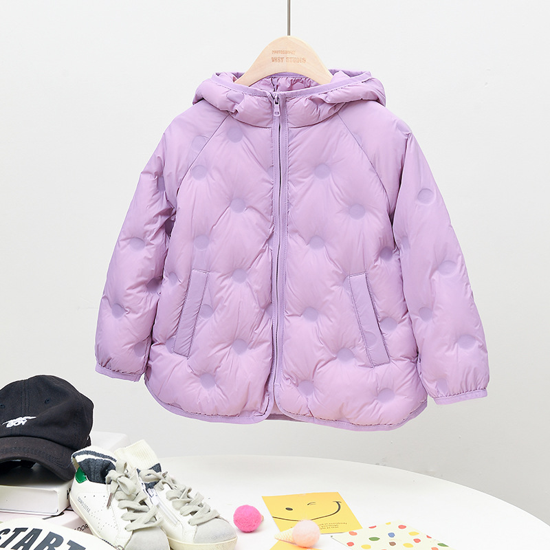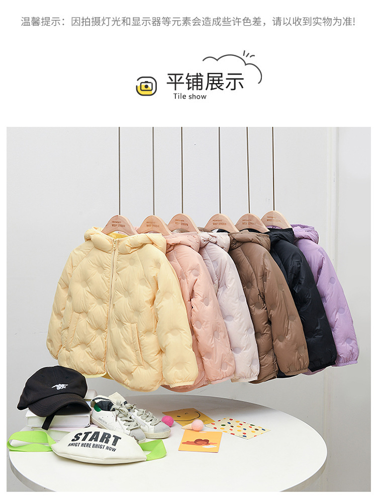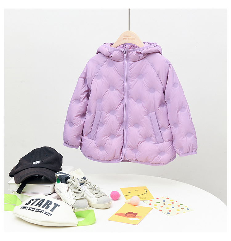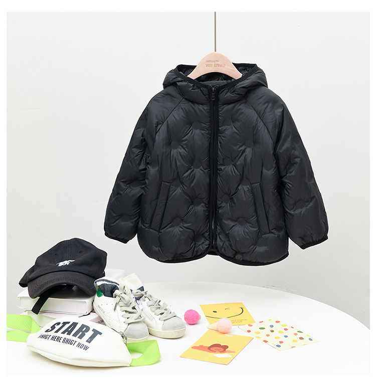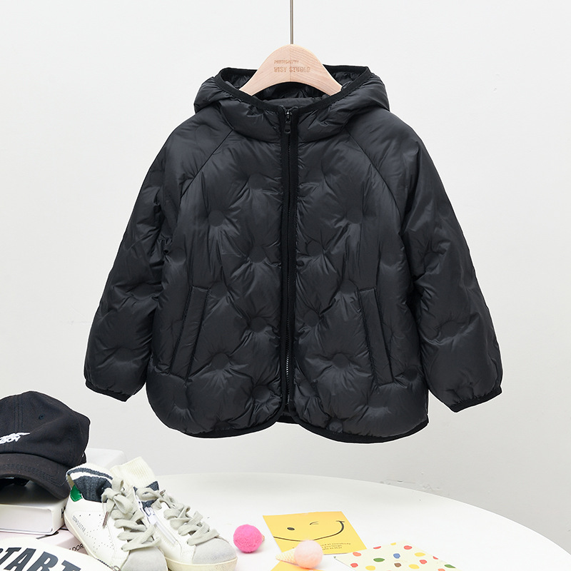 90 덕 다운 2023 겨울 새로운 어린이 압력 접착제 후드 경량 다운 재킷 짧은 소년 소녀 중년 아기