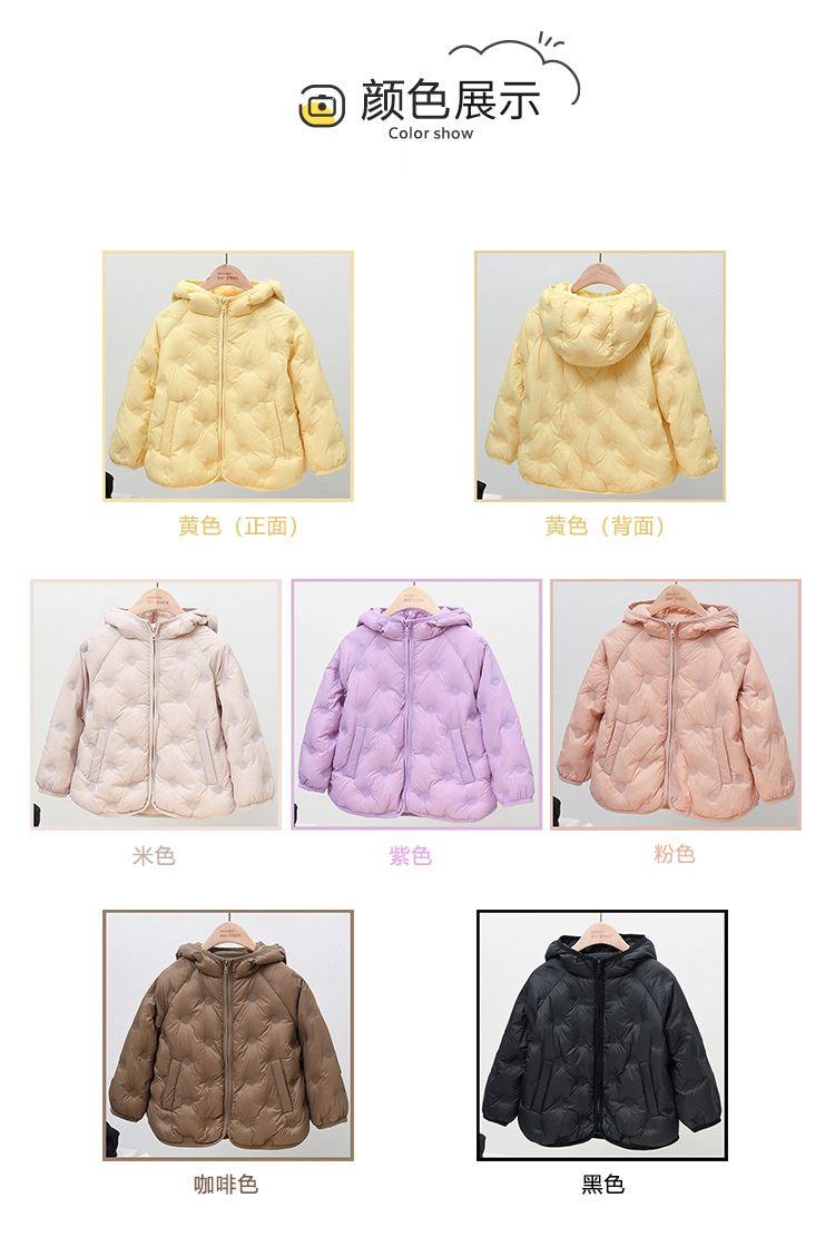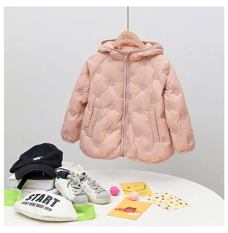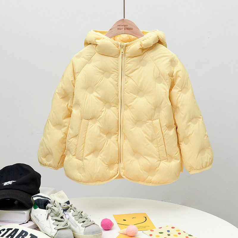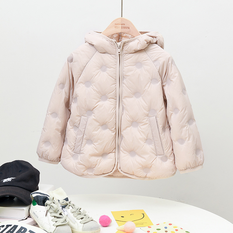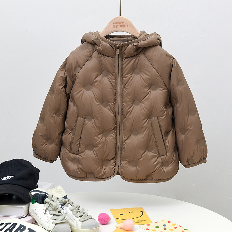 90 덕 다운 2023 겨울 새로운 어린이 압력 접착제 후드 경량 다운 재킷 짧은 소년 소녀 중년 아기