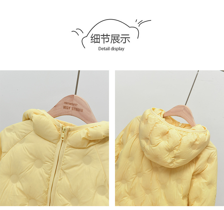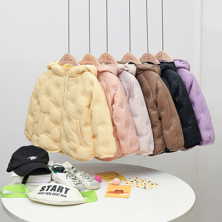 90 덕 다운 2023 겨울 새로운 어린이 압력 접착제 후드 경량 다운 재킷 짧은 소년 소녀 중년 아기스토어 가기