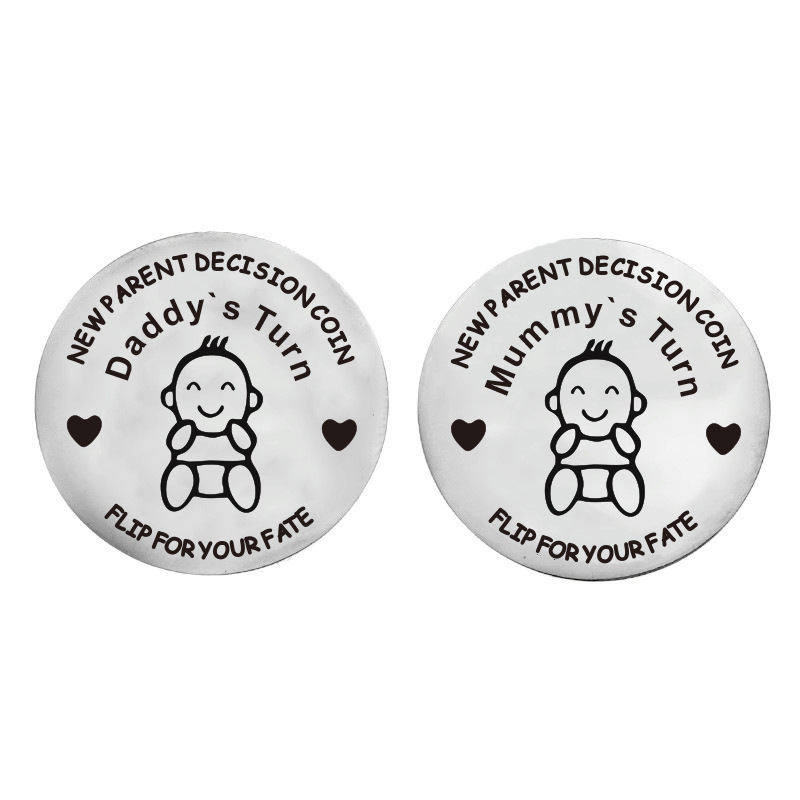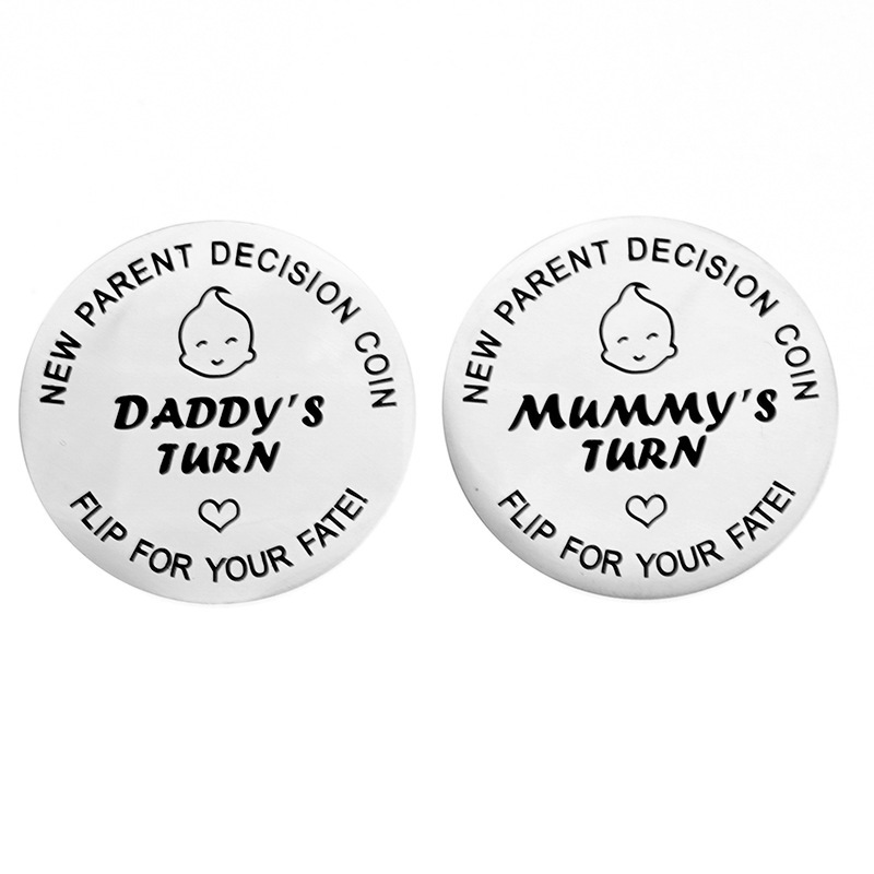 유럽과 미국의 뜨거운 판매 신생아 아기 스테인레스 스틸 결정 동전 엄마와 아빠가 동전 기념 도매 결정스토어 가기
