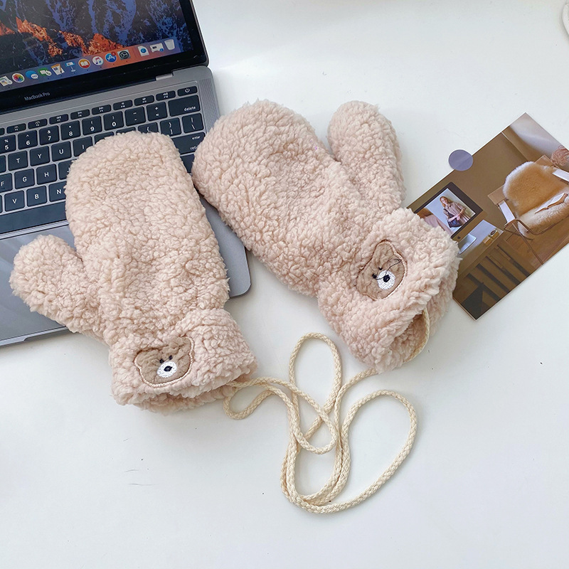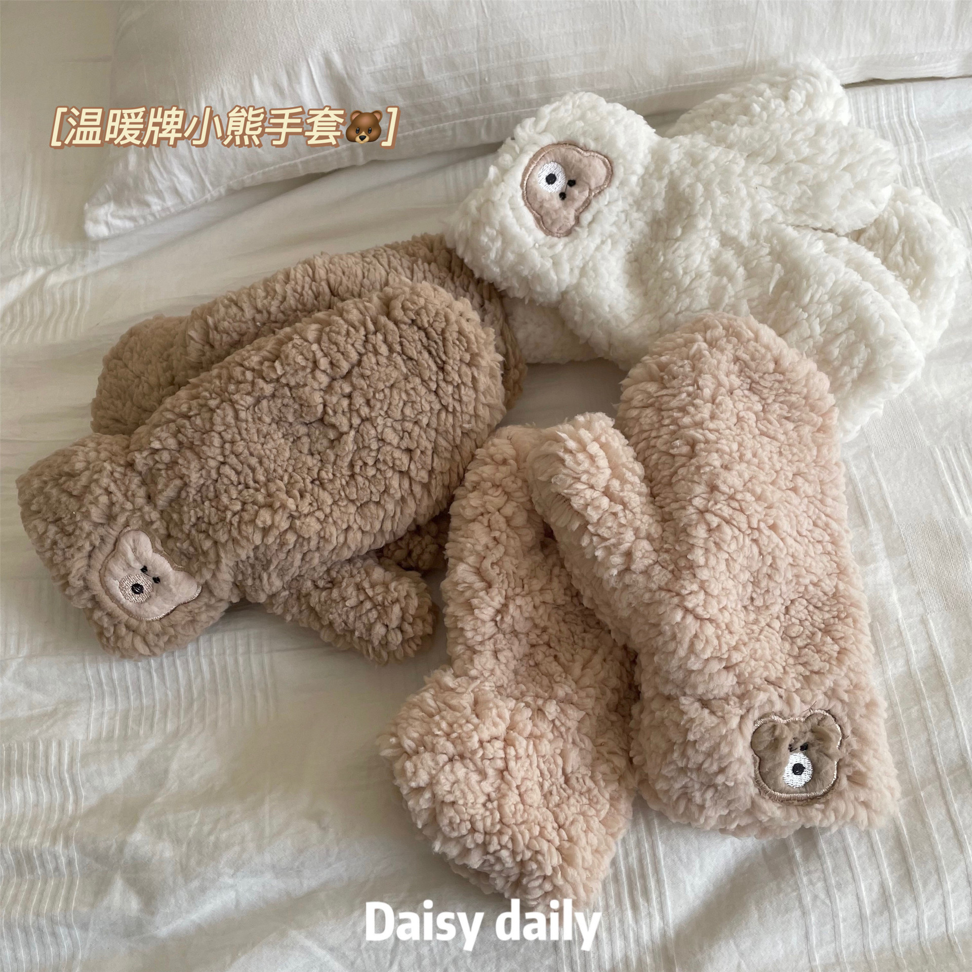 겨울 따뜻한 양고기 양모 장갑 곰 귀엽고 부드러운 겨울 방한 커플 승마 학생의 목 손가락으로스토어 가기