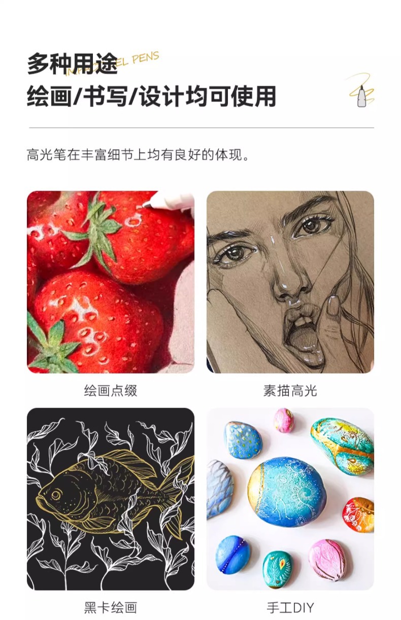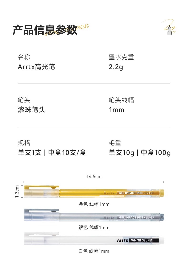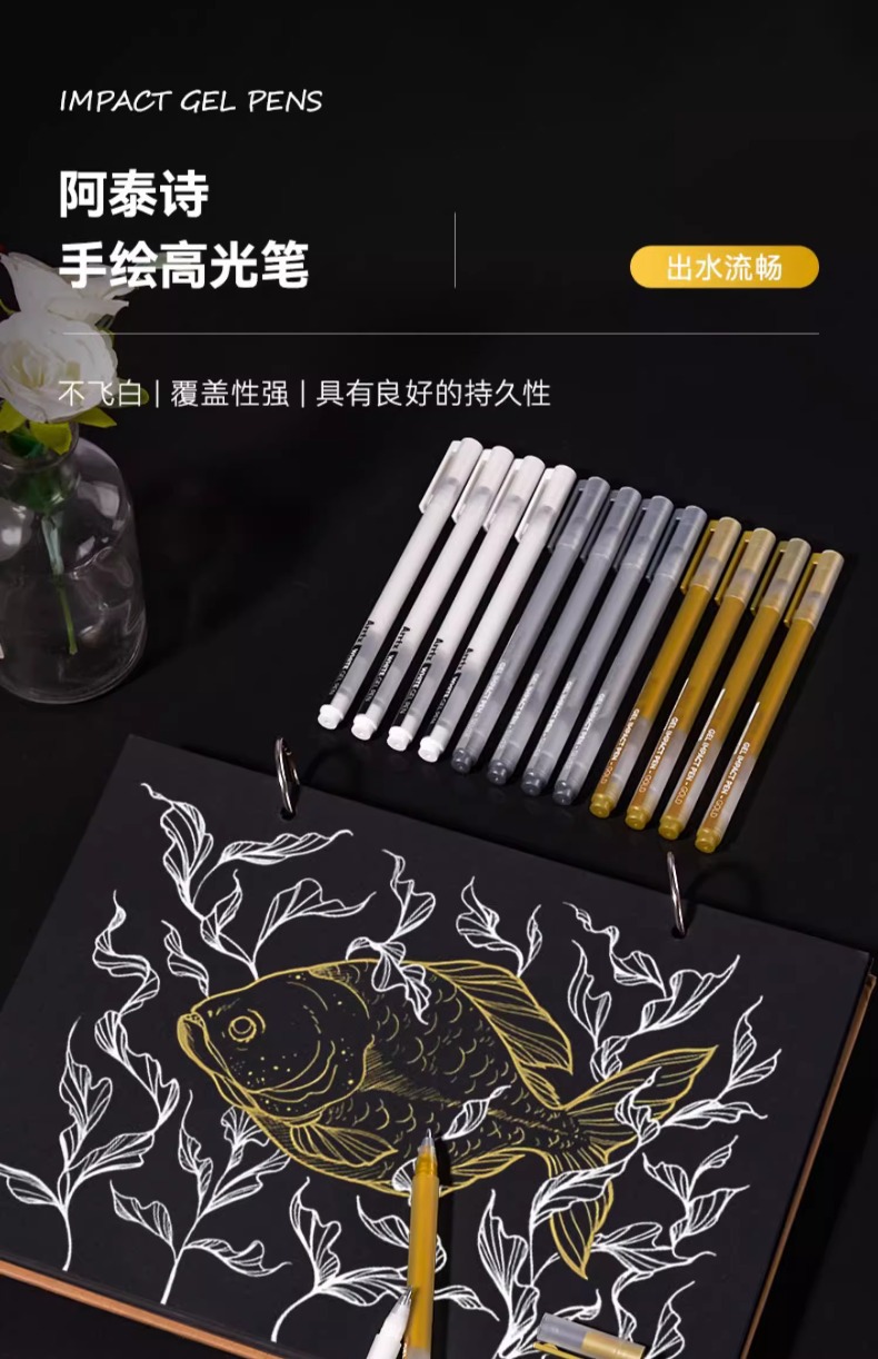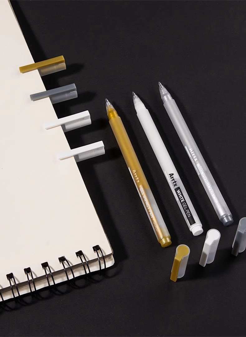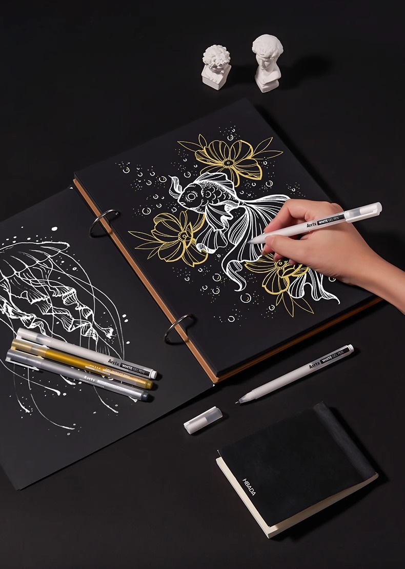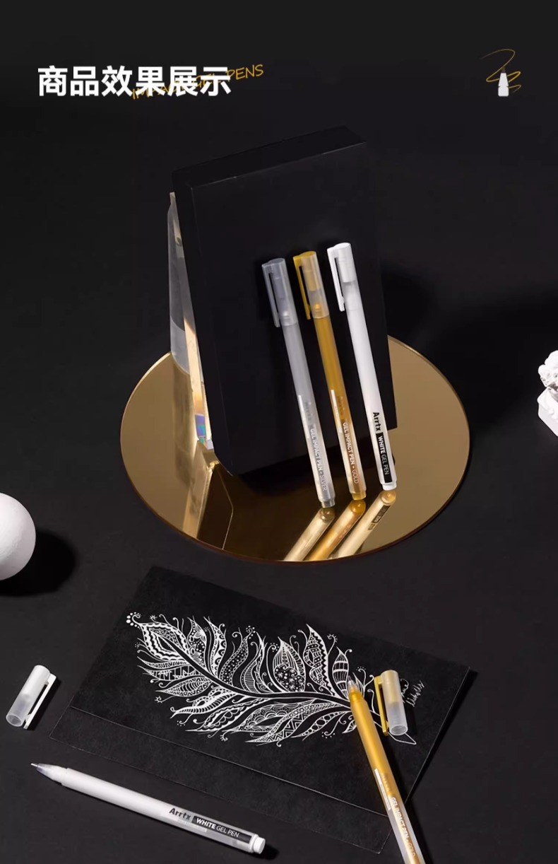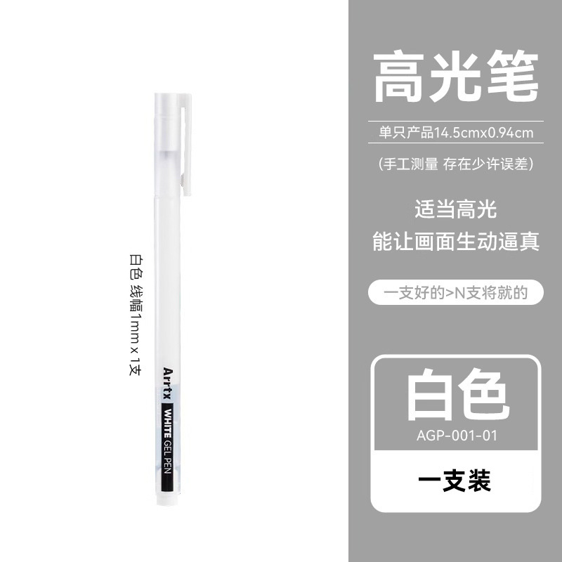 Arrtx Artest 화이트 하이 글로우 펜 아트 만화 손으로 그린 화이트 블랙 쓰기 흰색 문자 눈금 선 장식 펜