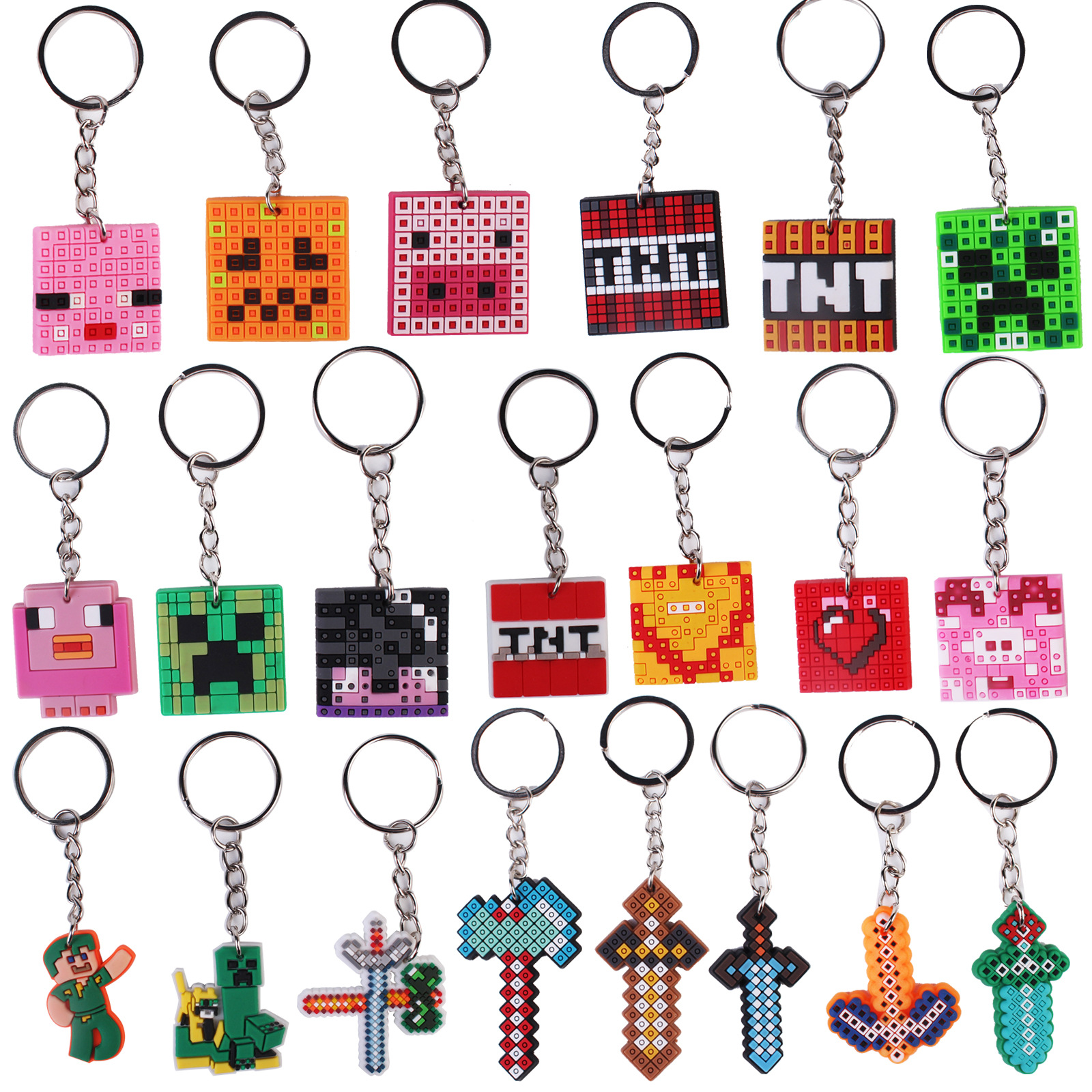 게임 마이크로블록 시리즈 키체인 탄성 PVC 소재 액세서리 작은 장식품 공장 도매 아마존 인기 판매*제작스토어 가기