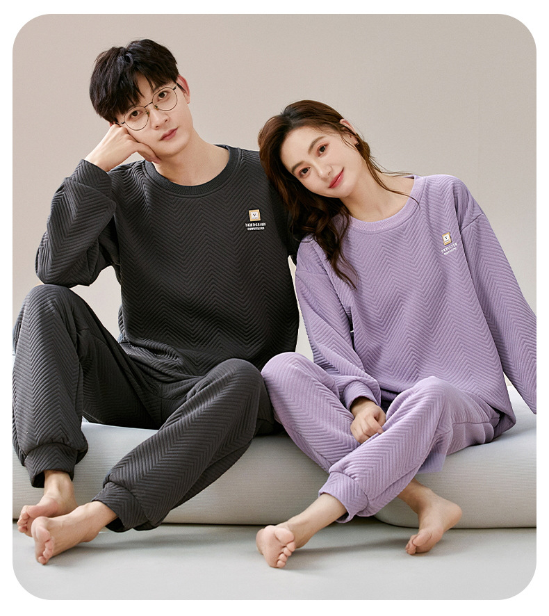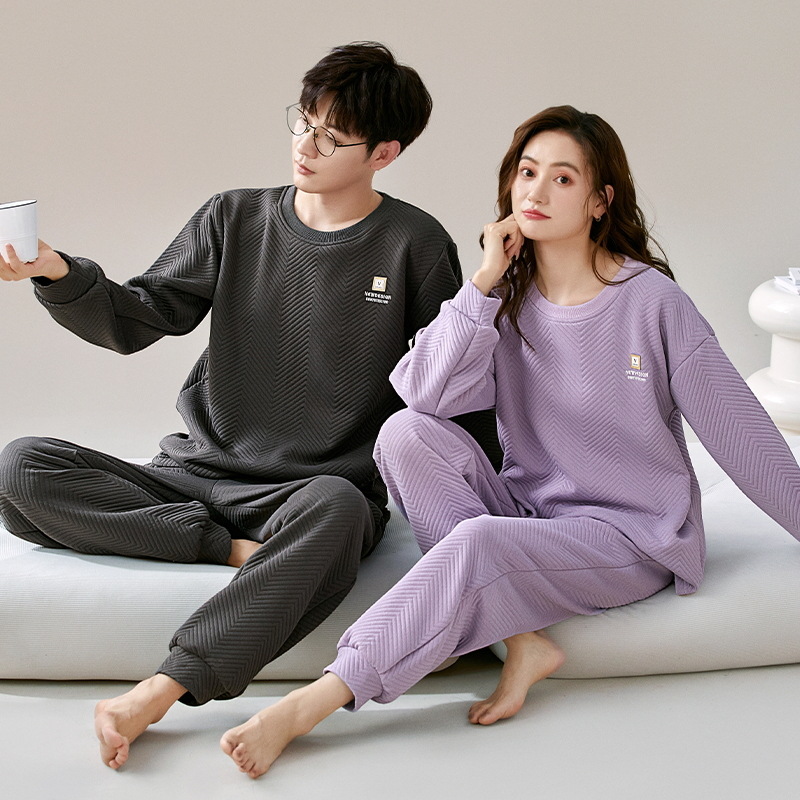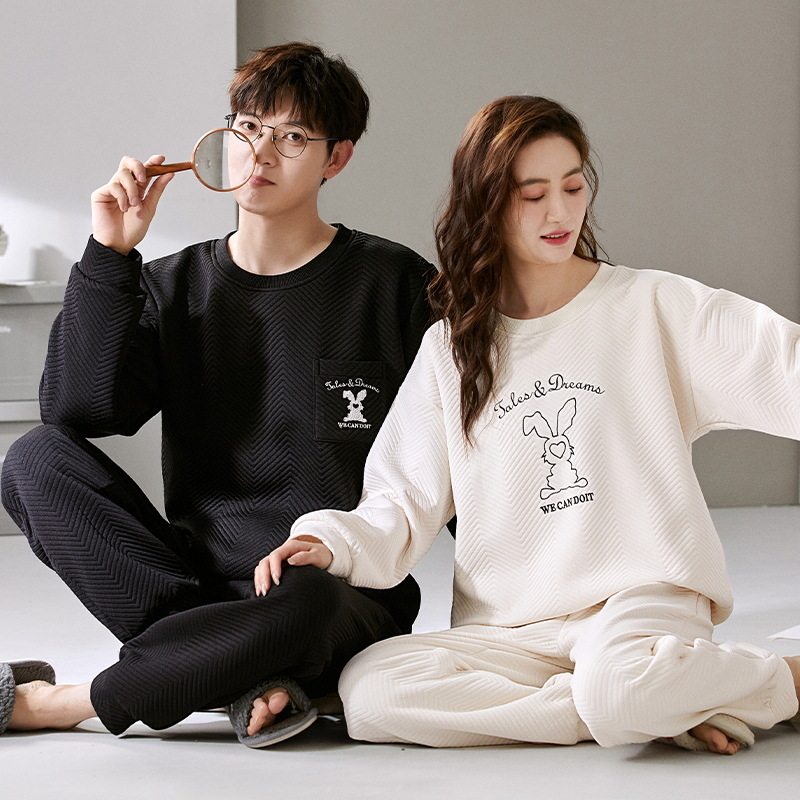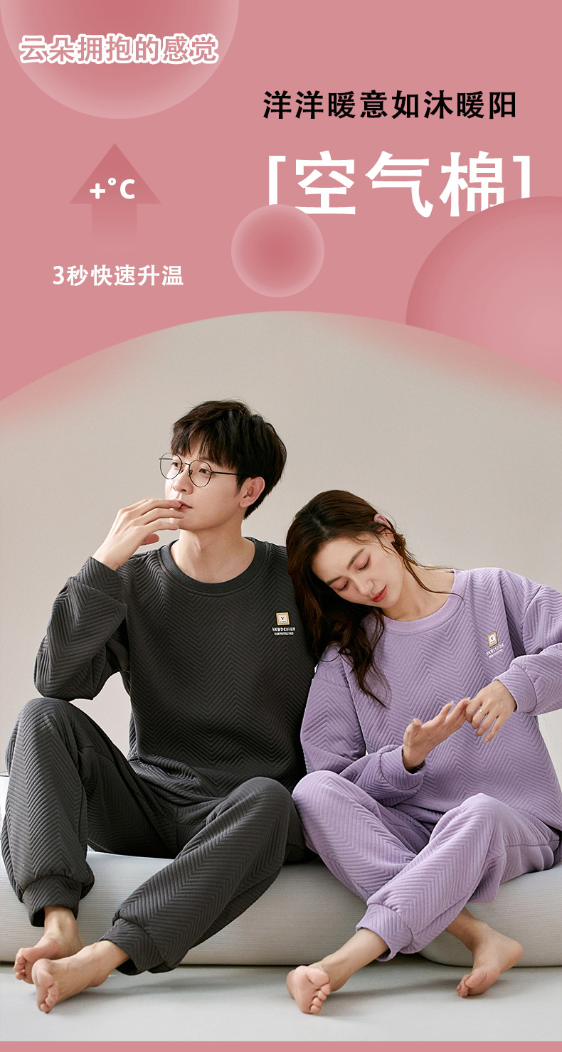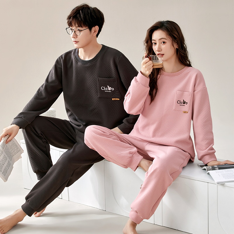 에어 코튼 샌드위치 가을과 겨울 커플 잠옷 긴팔 여성용 두꺼운 따뜻한 겉옷 착용 남성용 고급 감각 가정복