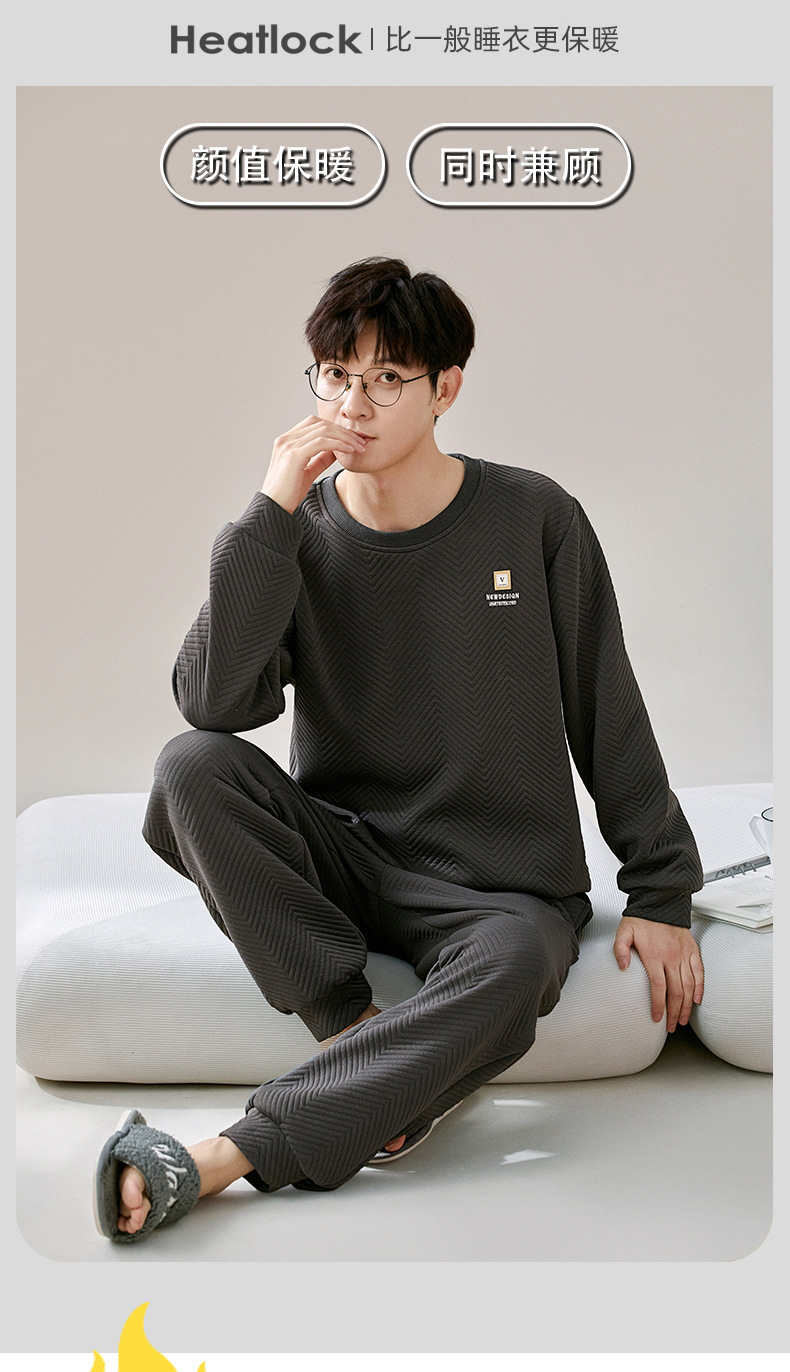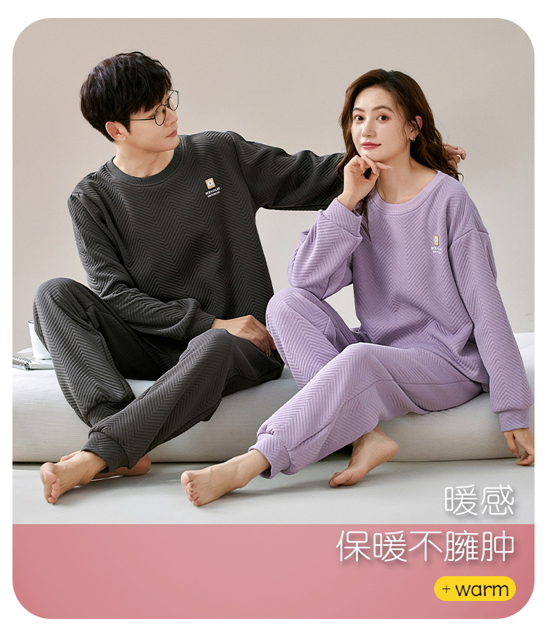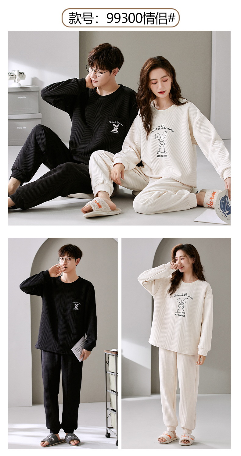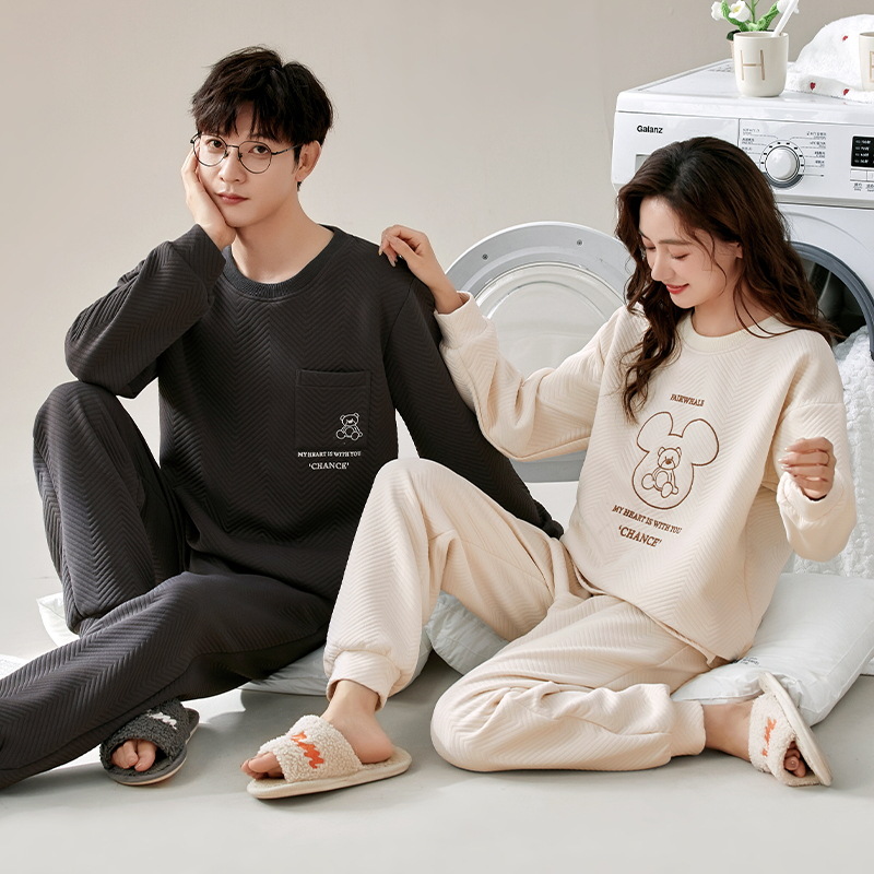 에어 코튼 샌드위치 가을과 겨울 커플 잠옷 긴팔 여성용 두꺼운 따뜻한 겉옷 착용 남성용 고급 감각 가정복스토어 가기