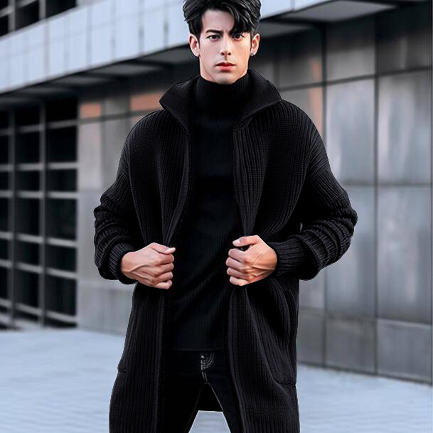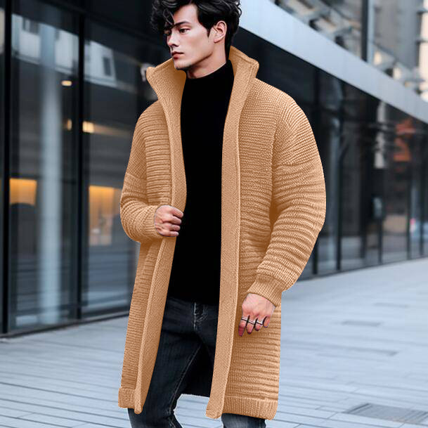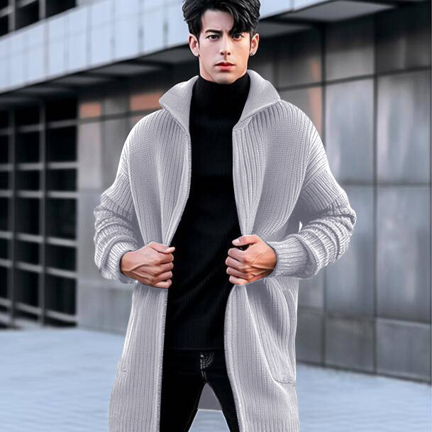 AliExpress 해외 무역 새로운 유럽과 미국 남성용 긴 스웨터 코트 가을과 겨울 옷깃 단색 니트 카디건
