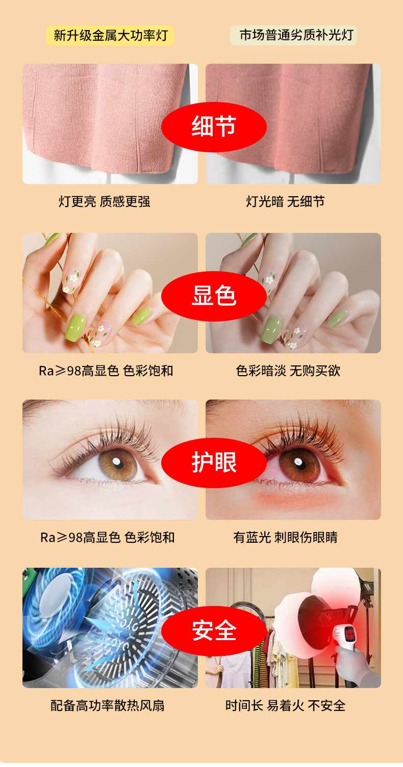 라이브 방송 보조 조명, 사진 촬영용 상시 점등 조명, 라이브 방송실 조명 전용 램프, 앵커 정물 촬영용 구형 소프트 라이트 태양광 램프