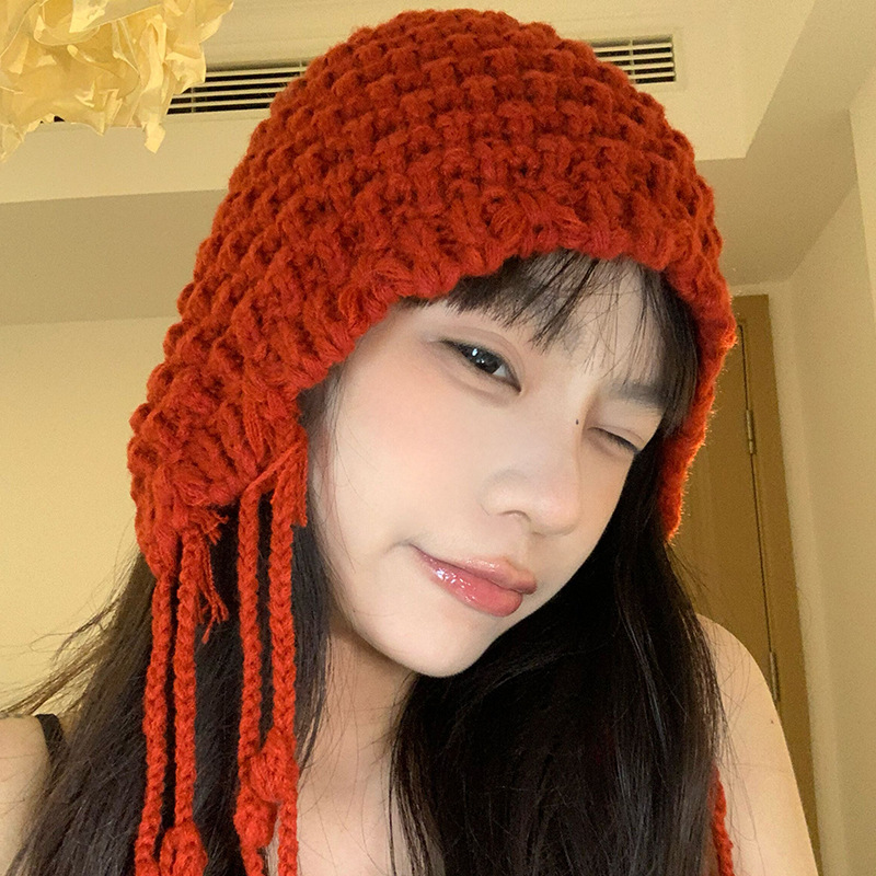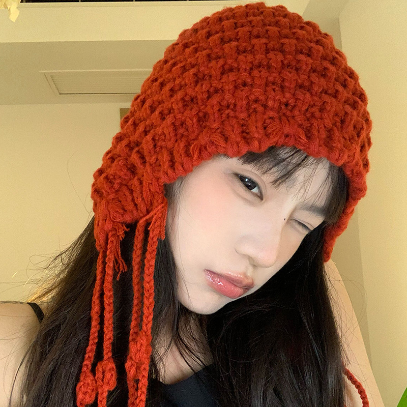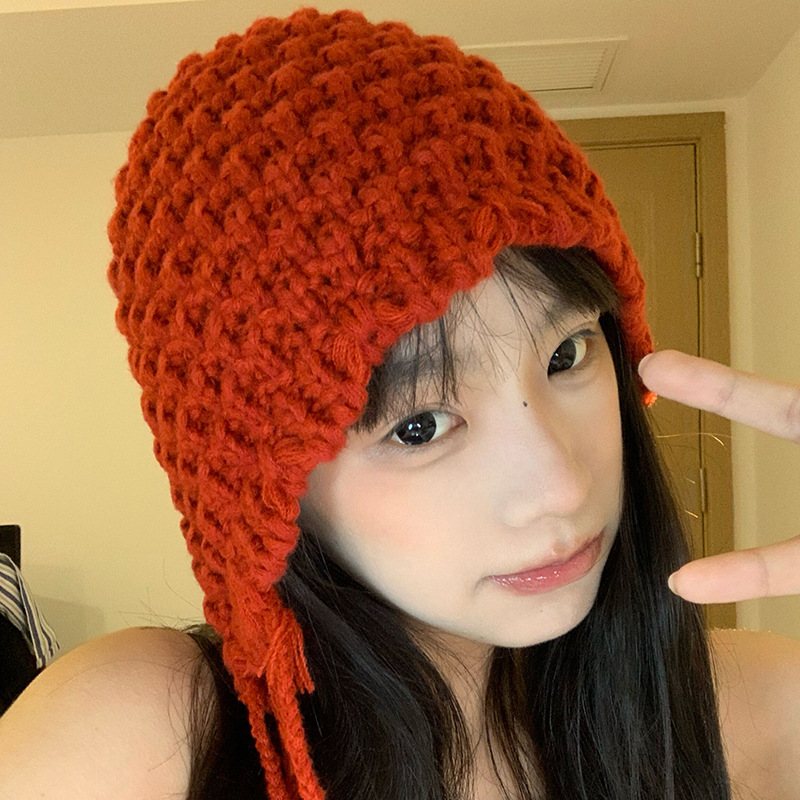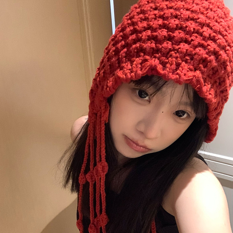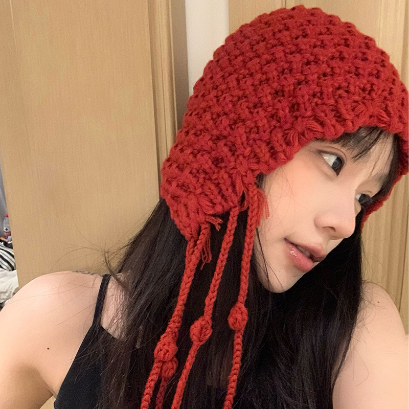 가을과 겨울 따뜻한 니트 수제 울 캡 네트 레드 캐주얼 올 매치 패션 개성 얼굴 작은 캡