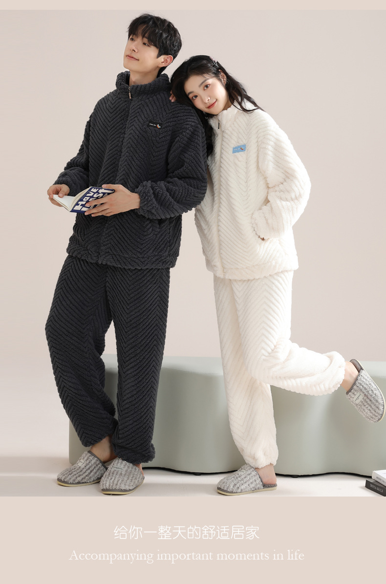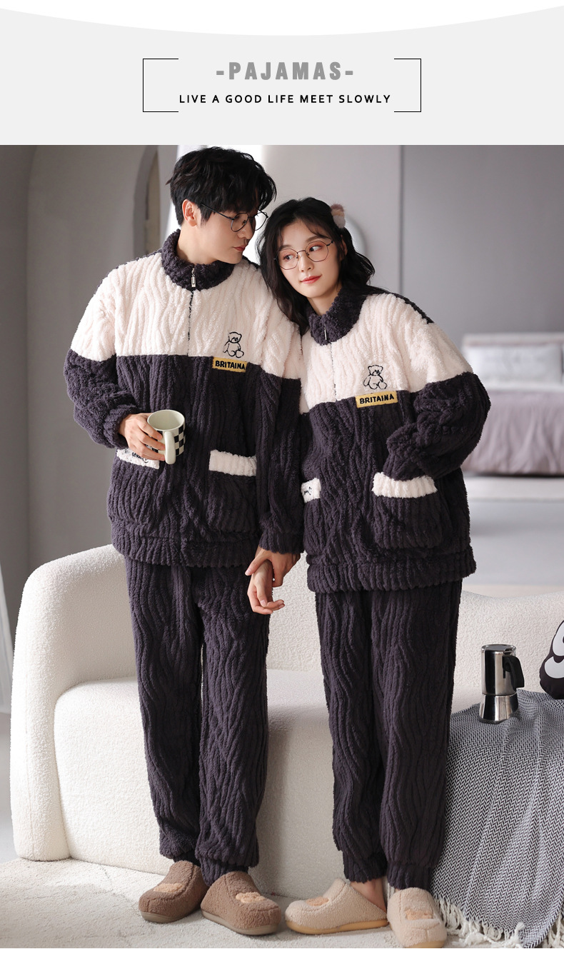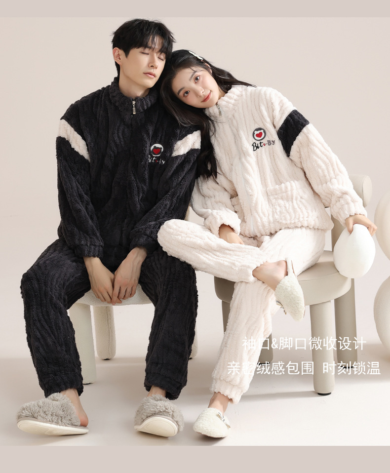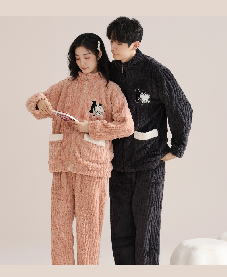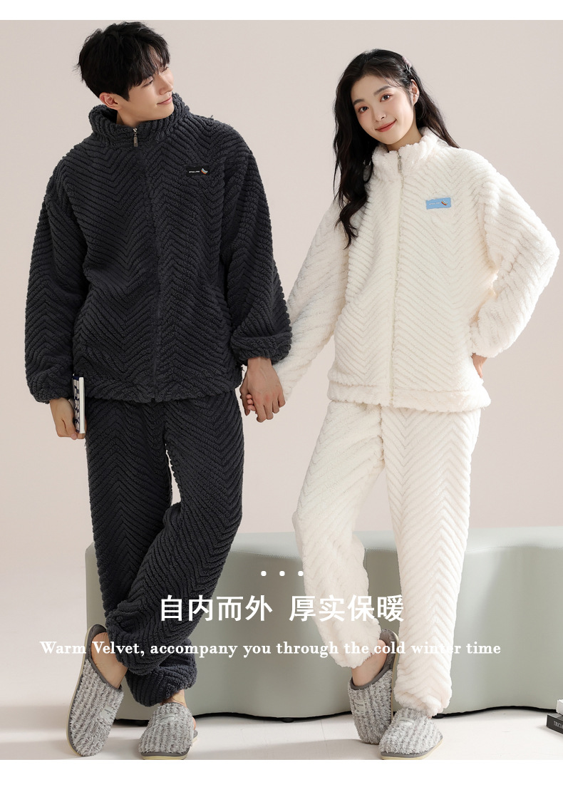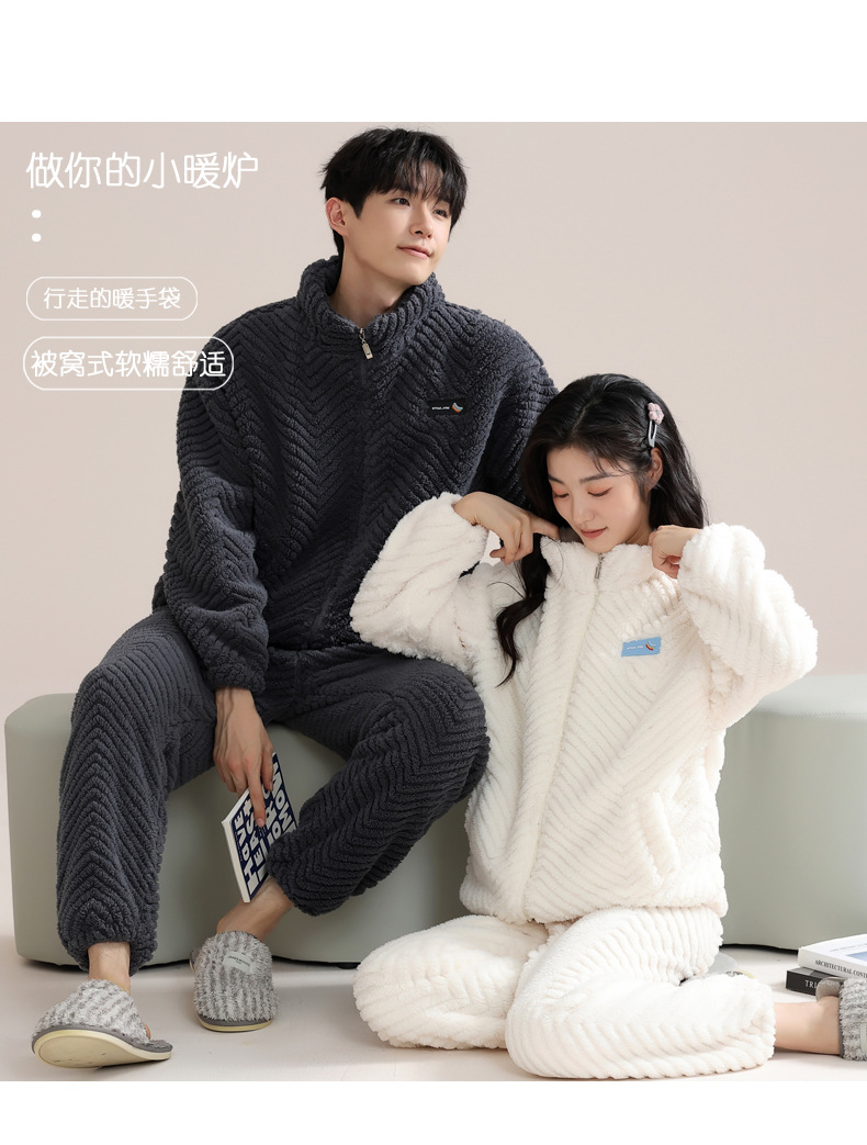 자카드 벨벳 커플 잠옷 여자의 겨울 신상품 기모 두꺼운 따뜻한 가정 옷 남자와 여자의 플란넬 세트스토어 가기
