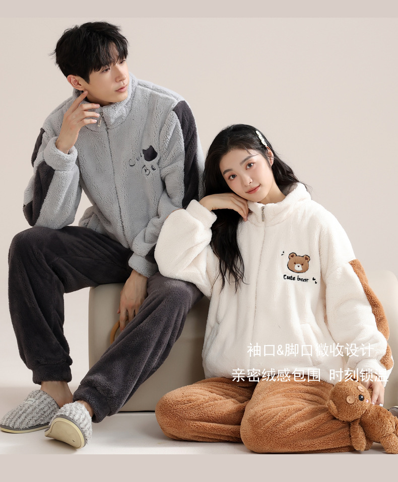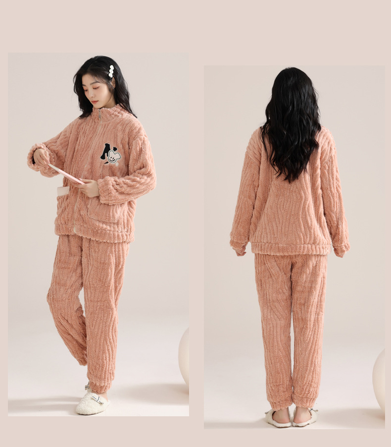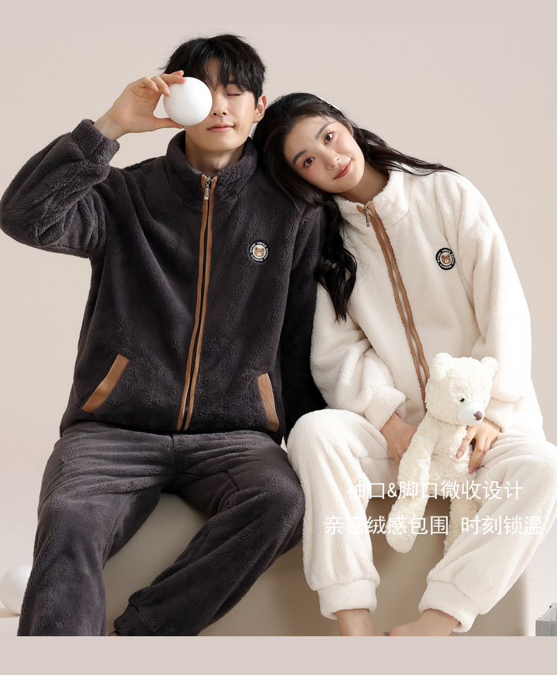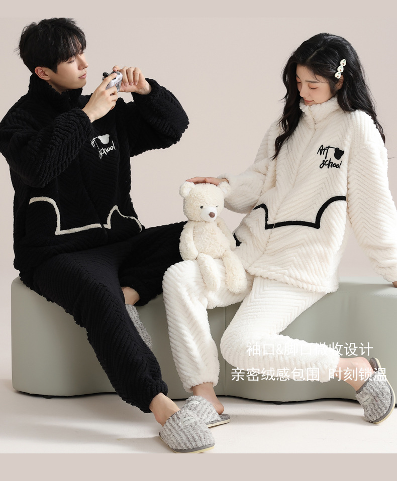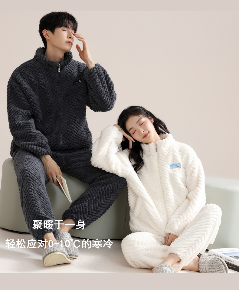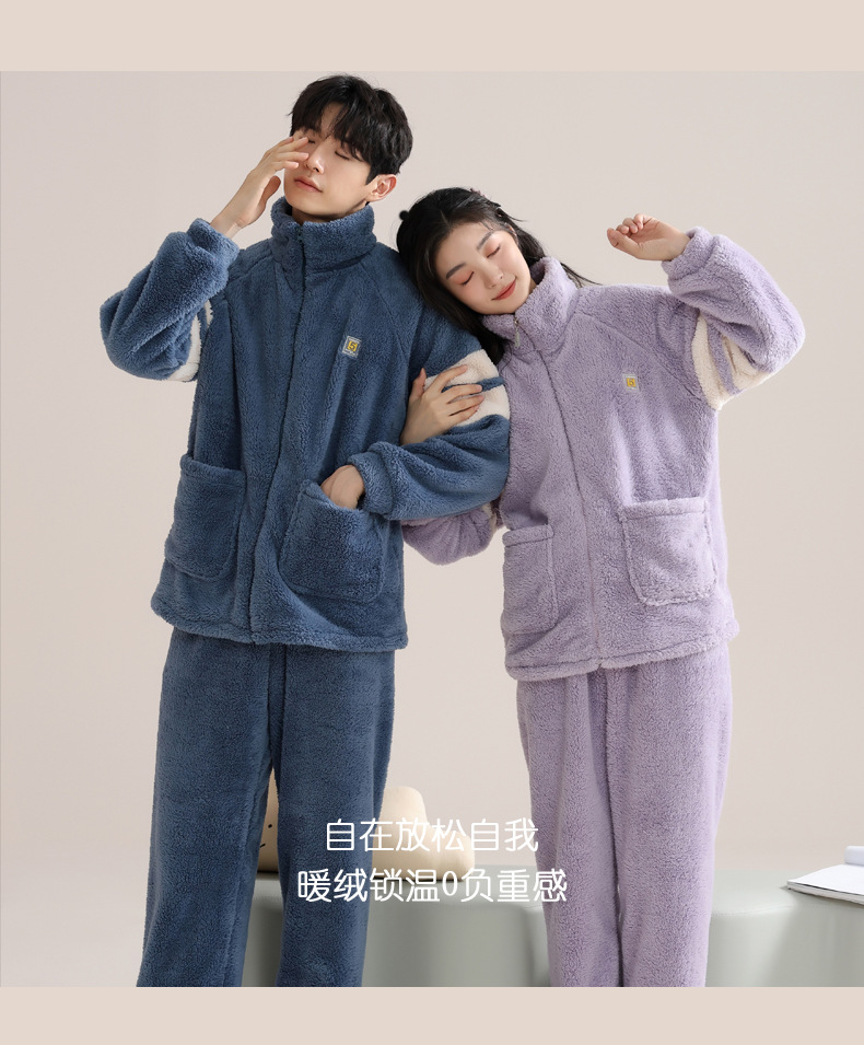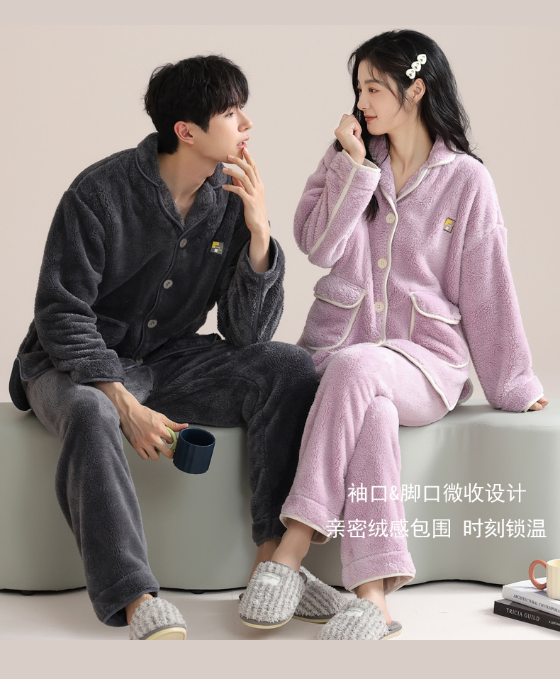 자카드 벨벳 커플 잠옷 여자의 겨울 신상품 기모 두꺼운 따뜻한 가정 옷 남자와 여자의 플란넬 세트스토어 가기