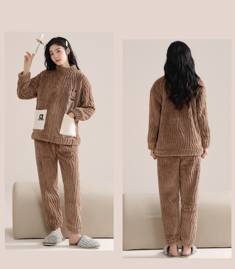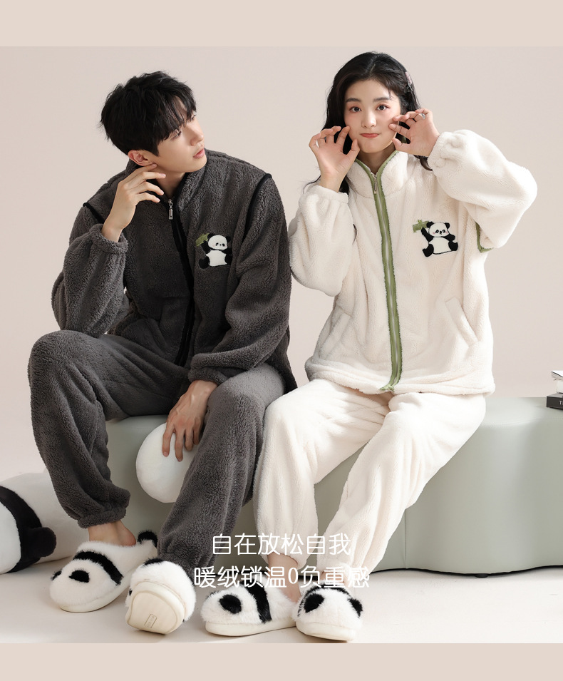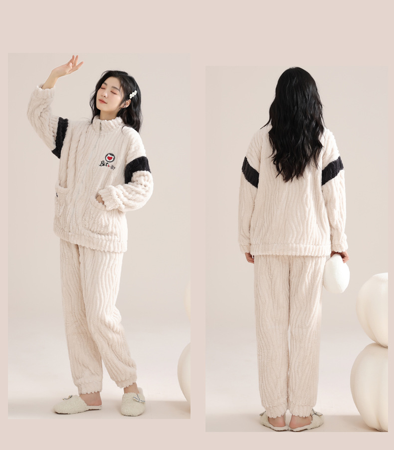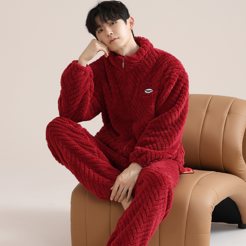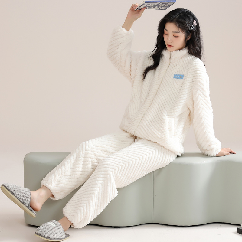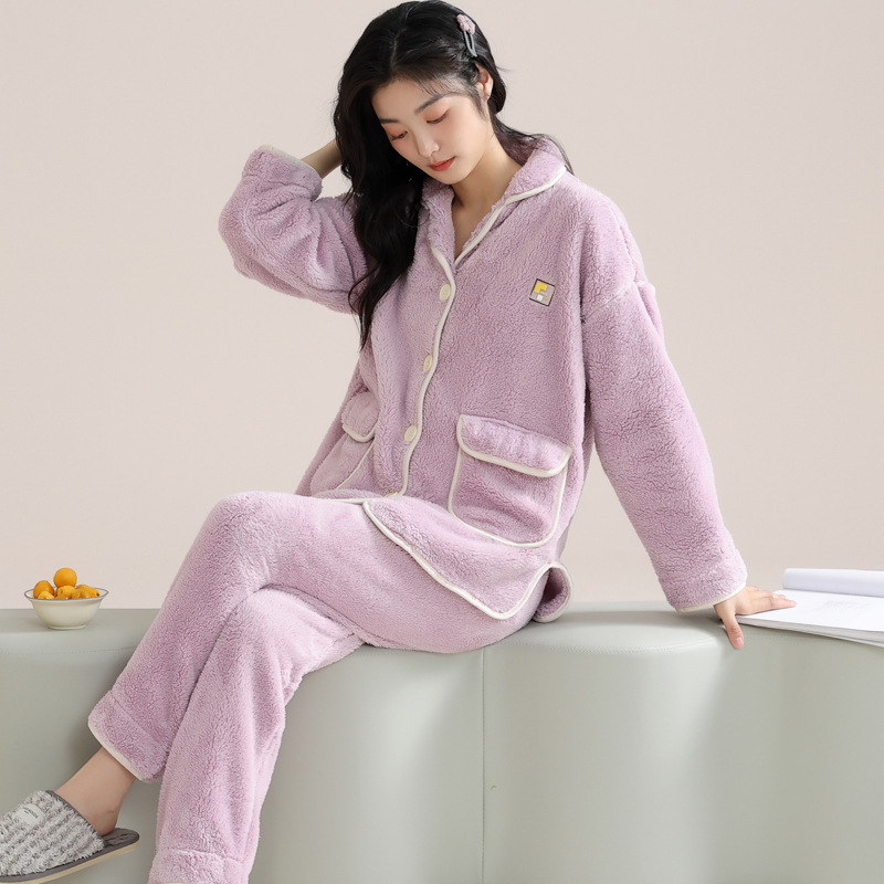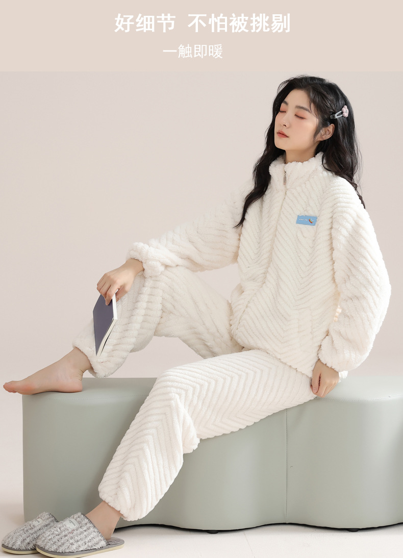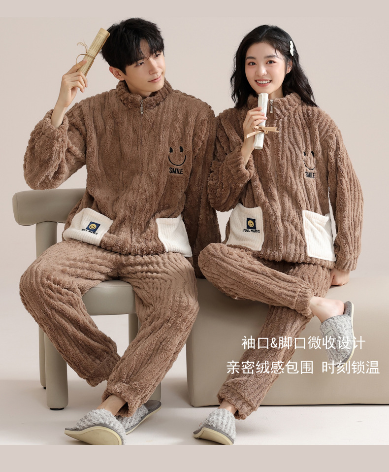 자카드 벨벳 커플 잠옷 여자의 겨울 신상품 기모 두꺼운 따뜻한 가정 옷 남자와 여자의 플란넬 세트스토어 가기
