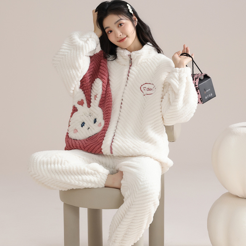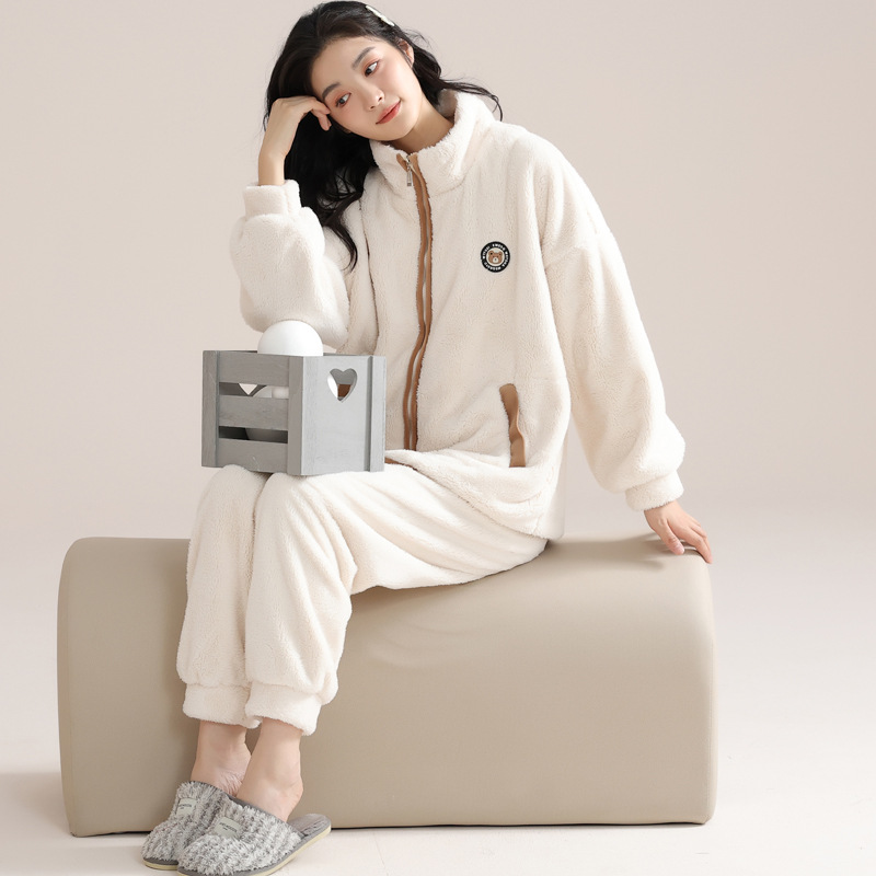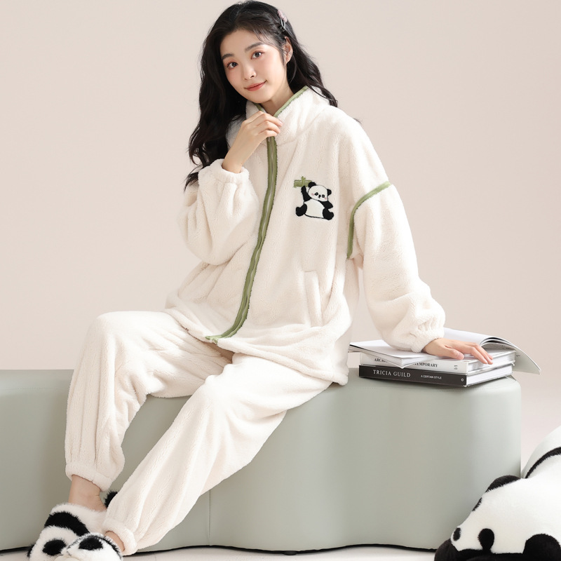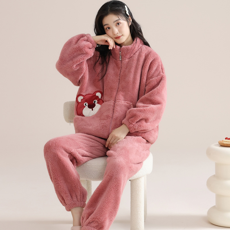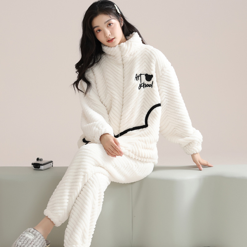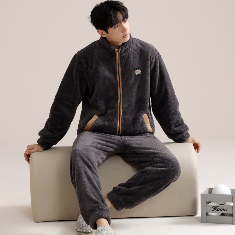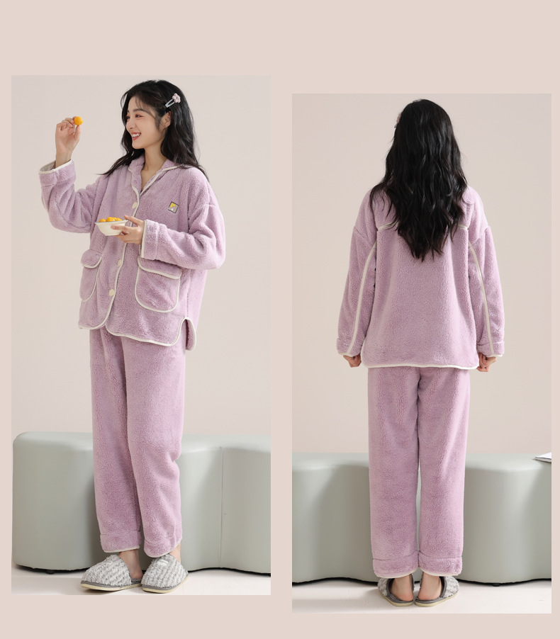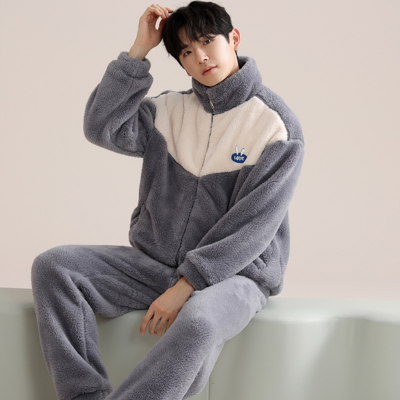 자카드 벨벳 커플 잠옷 여자의 겨울 신상품 기모 두꺼운 따뜻한 가정 옷 남자와 여자의 플란넬 세트스토어 가기