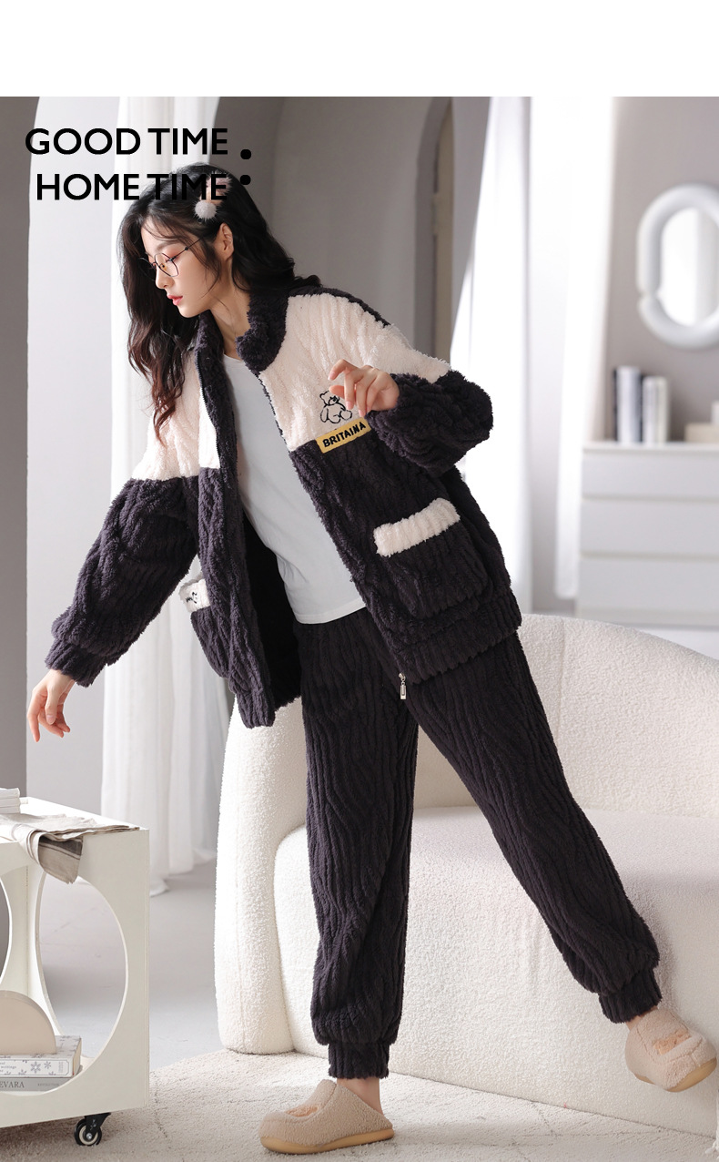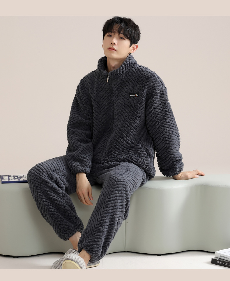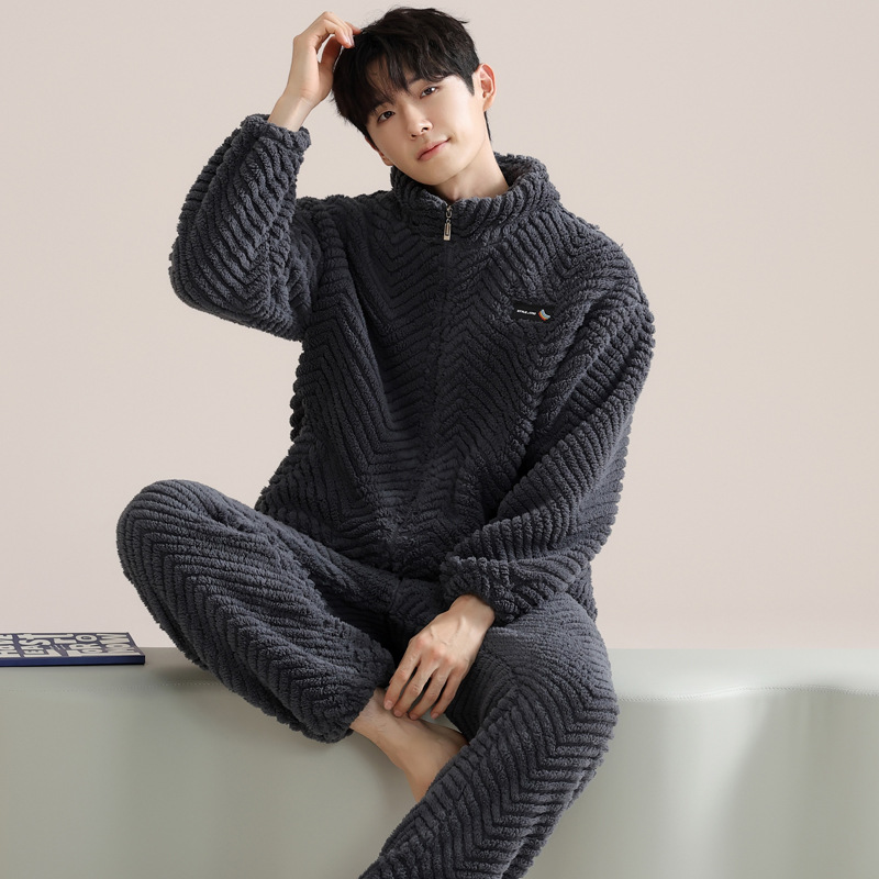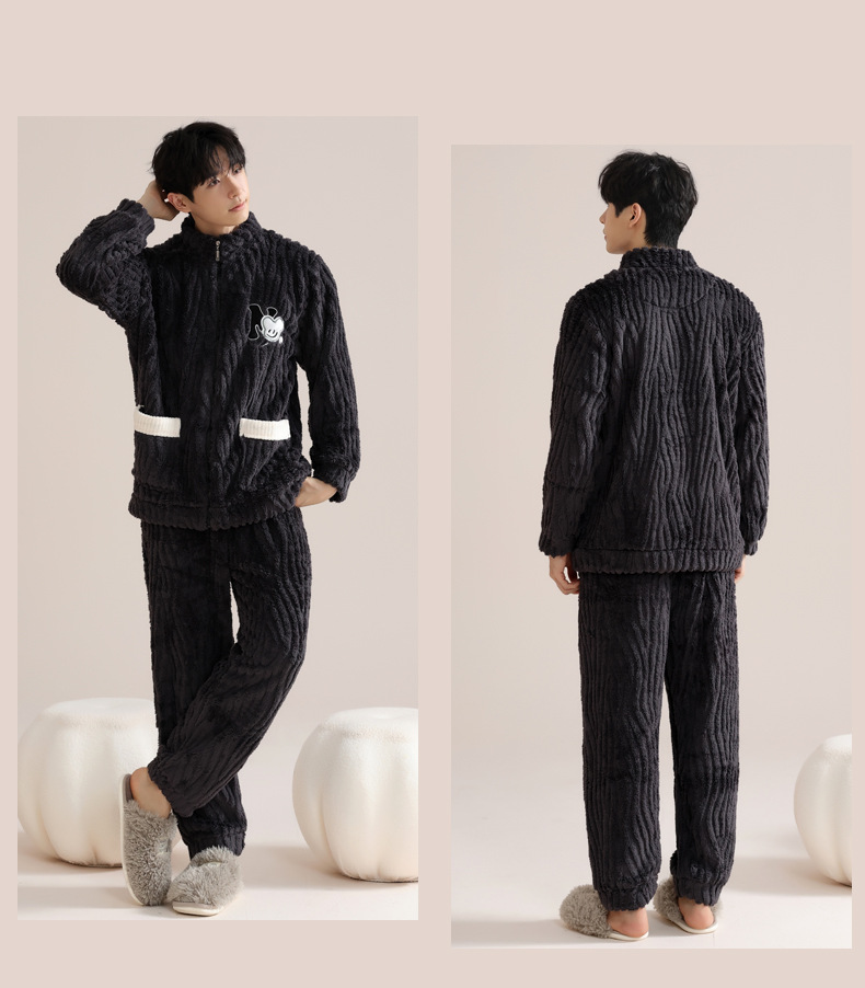 자카드 벨벳 커플 잠옷 여자의 겨울 신상품 기모 두꺼운 따뜻한 가정 옷 남자와 여자의 플란넬 세트