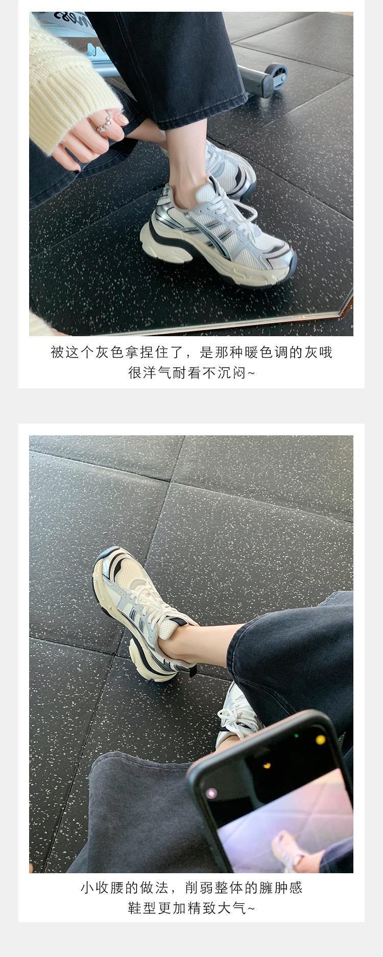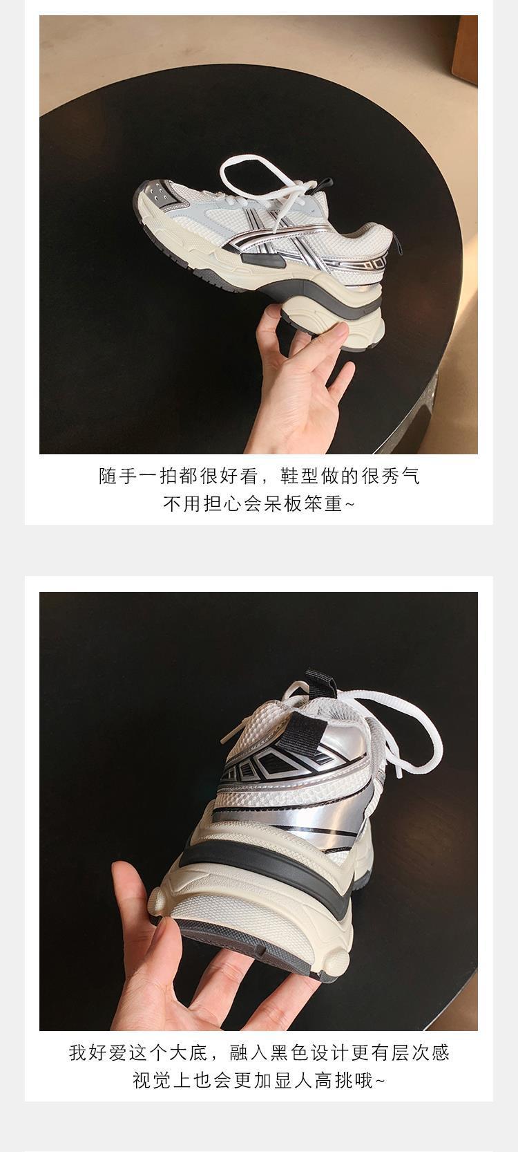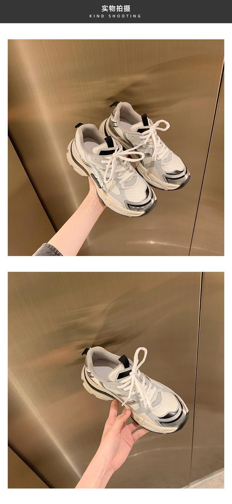 소가죽 버전 두꺼운 밑창 같은 스타일의 끈 묶는 캐주얼 키높이 운동화 가볍고 인기 있는 중공업 스타일 아빠 신발 여성용 다용도 등산화스토어 가기