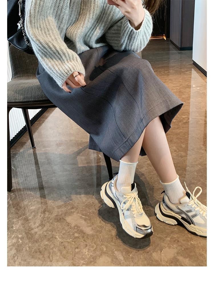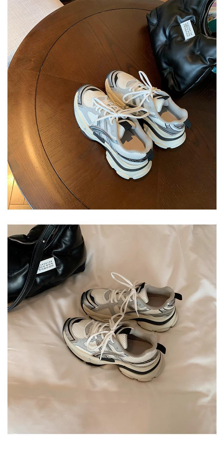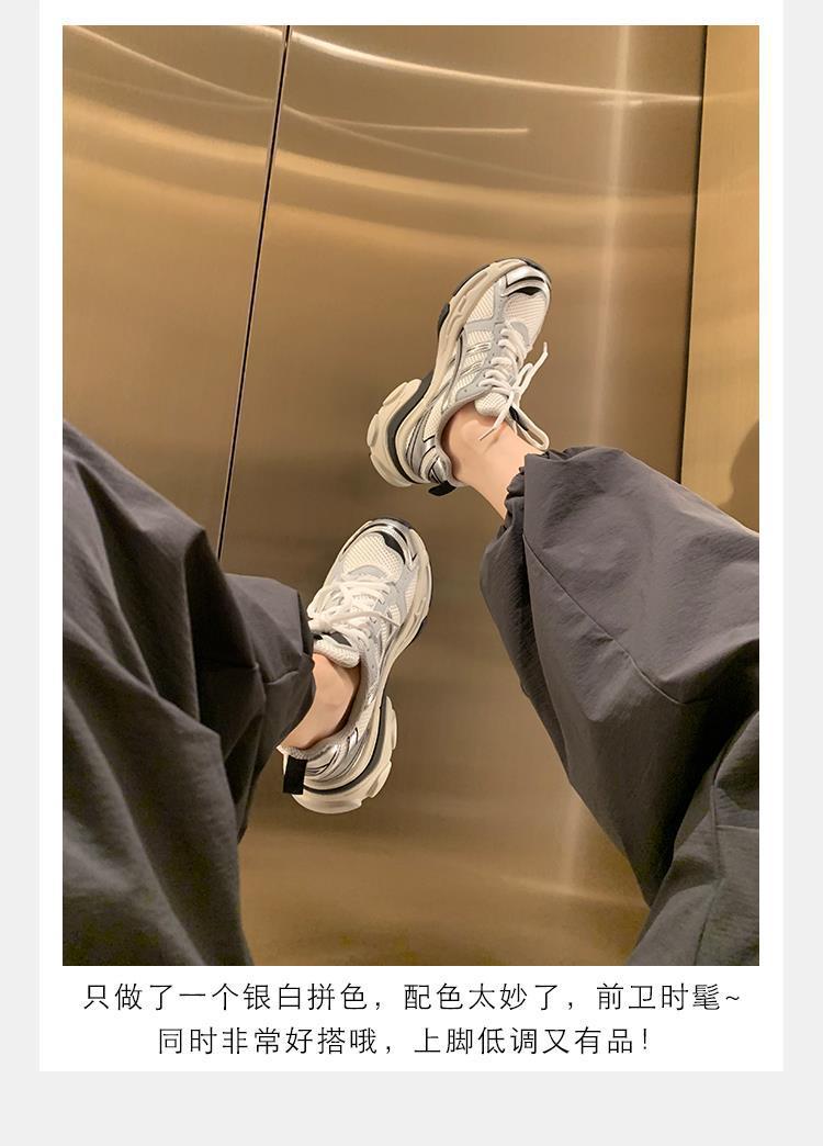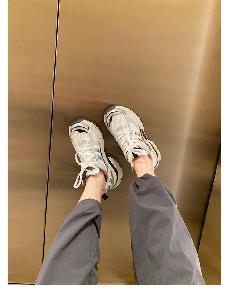 소가죽 버전 두꺼운 밑창 같은 스타일의 끈 묶는 캐주얼 키높이 운동화 가볍고 인기 있는 중공업 스타일 아빠 신발 여성용 다용도 등산화스토어 가기
