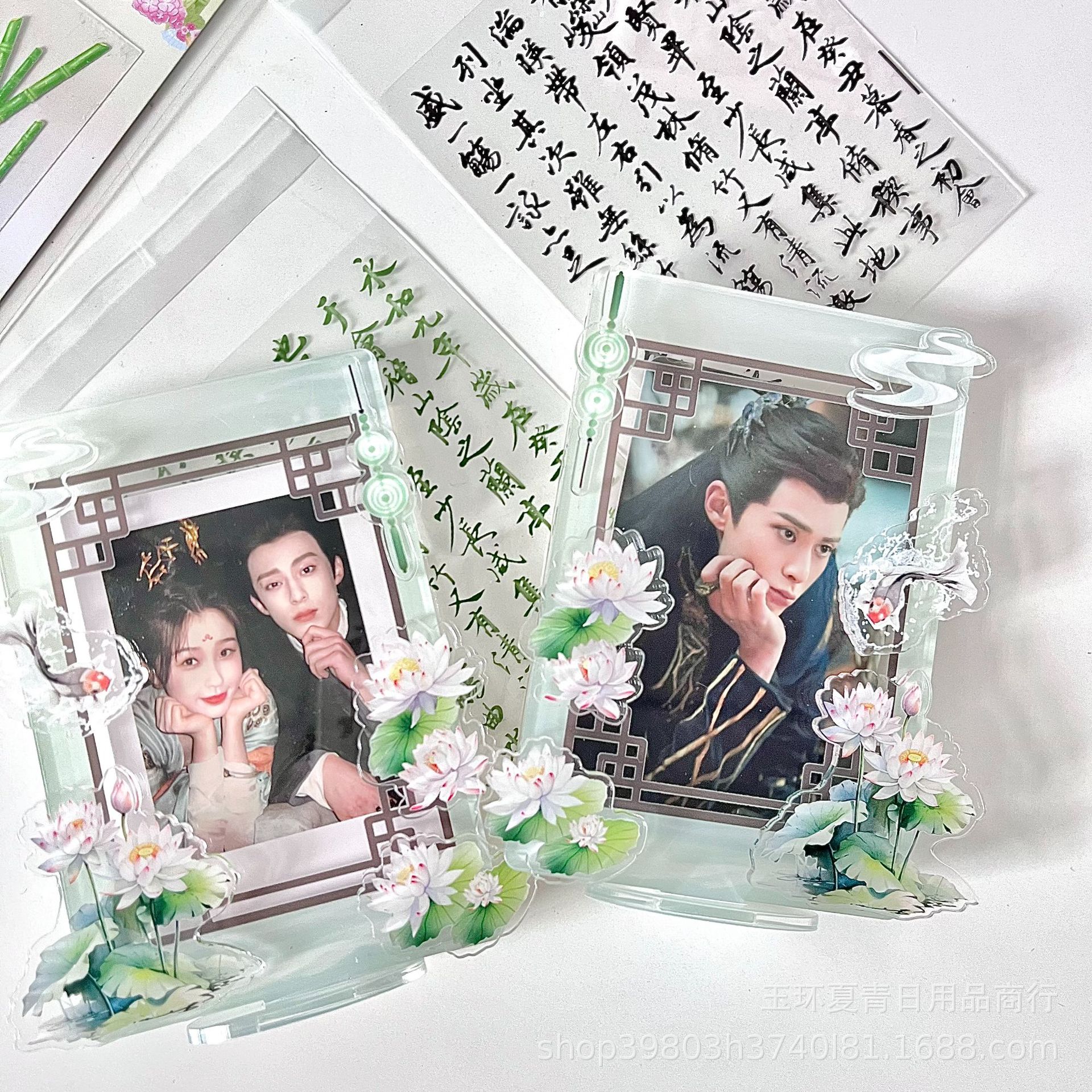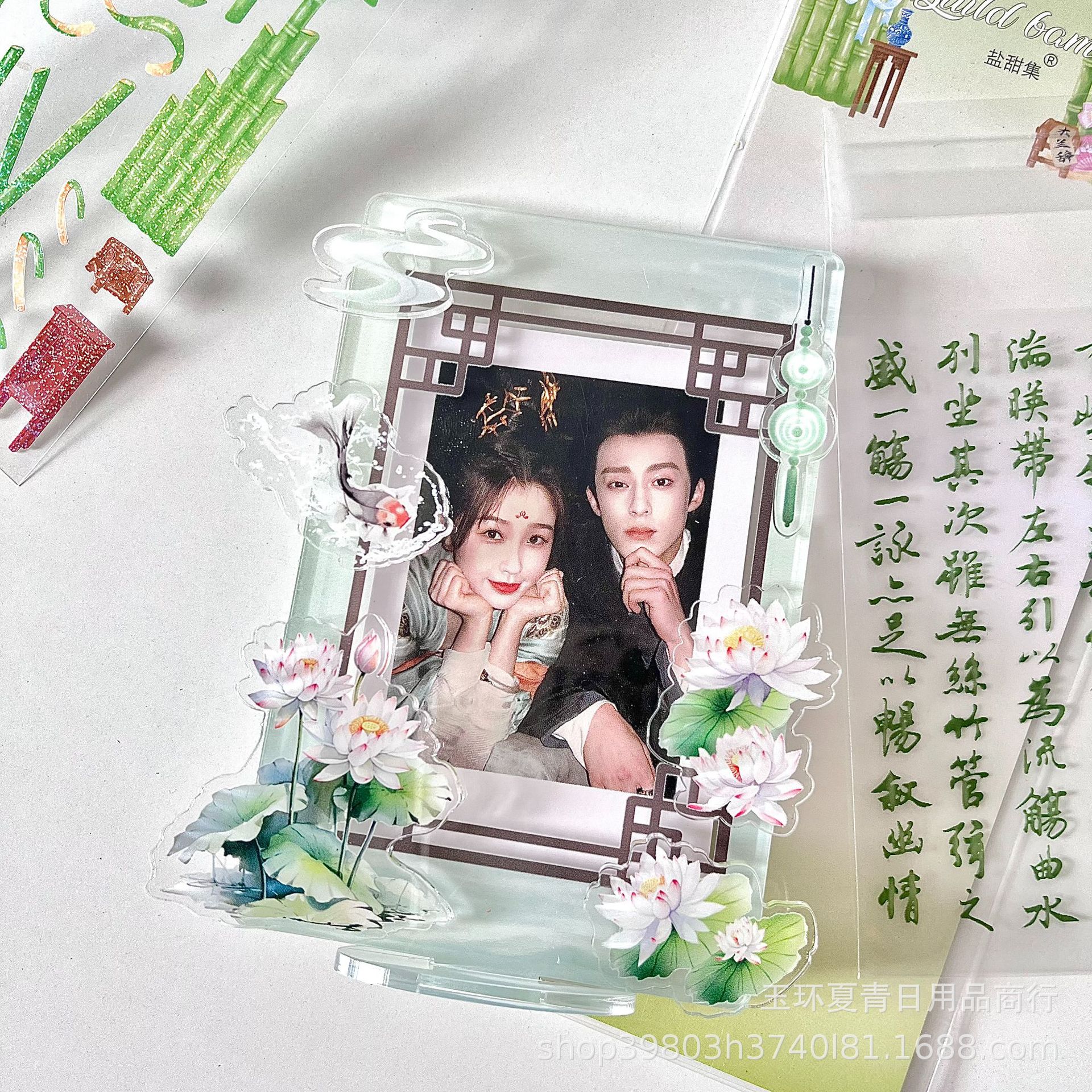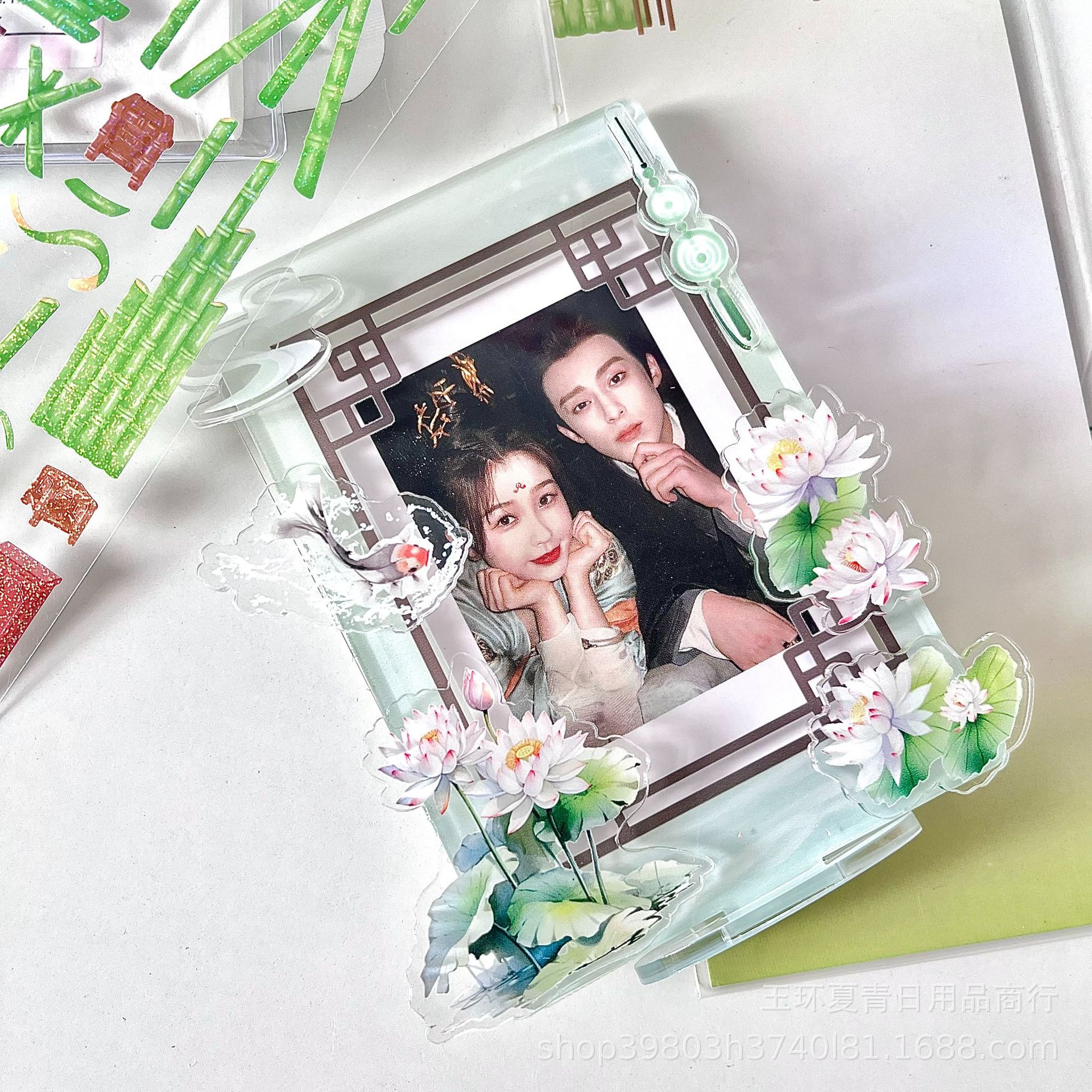 원래 Guofeng 연꽃 연못 달빛 카드 별 추적 3 인치 사진 프레임 디스플레이 프레임 폴라로이드 사진 프레임 아크릴스토어 가기