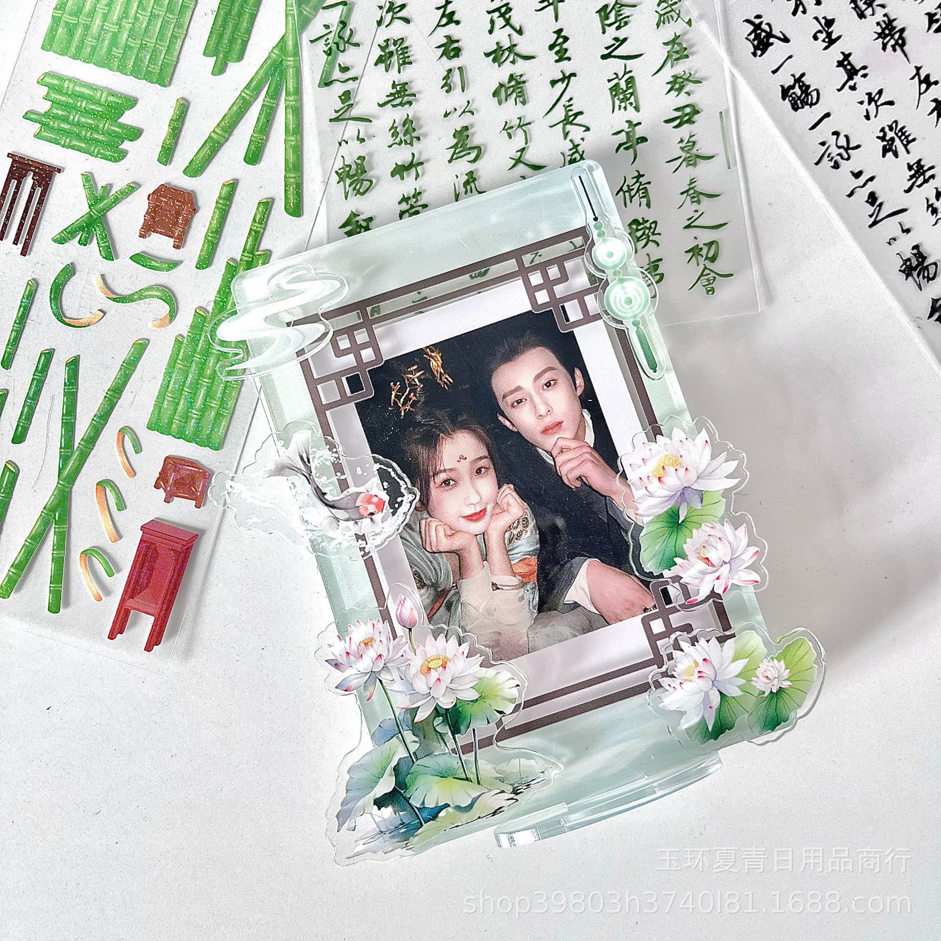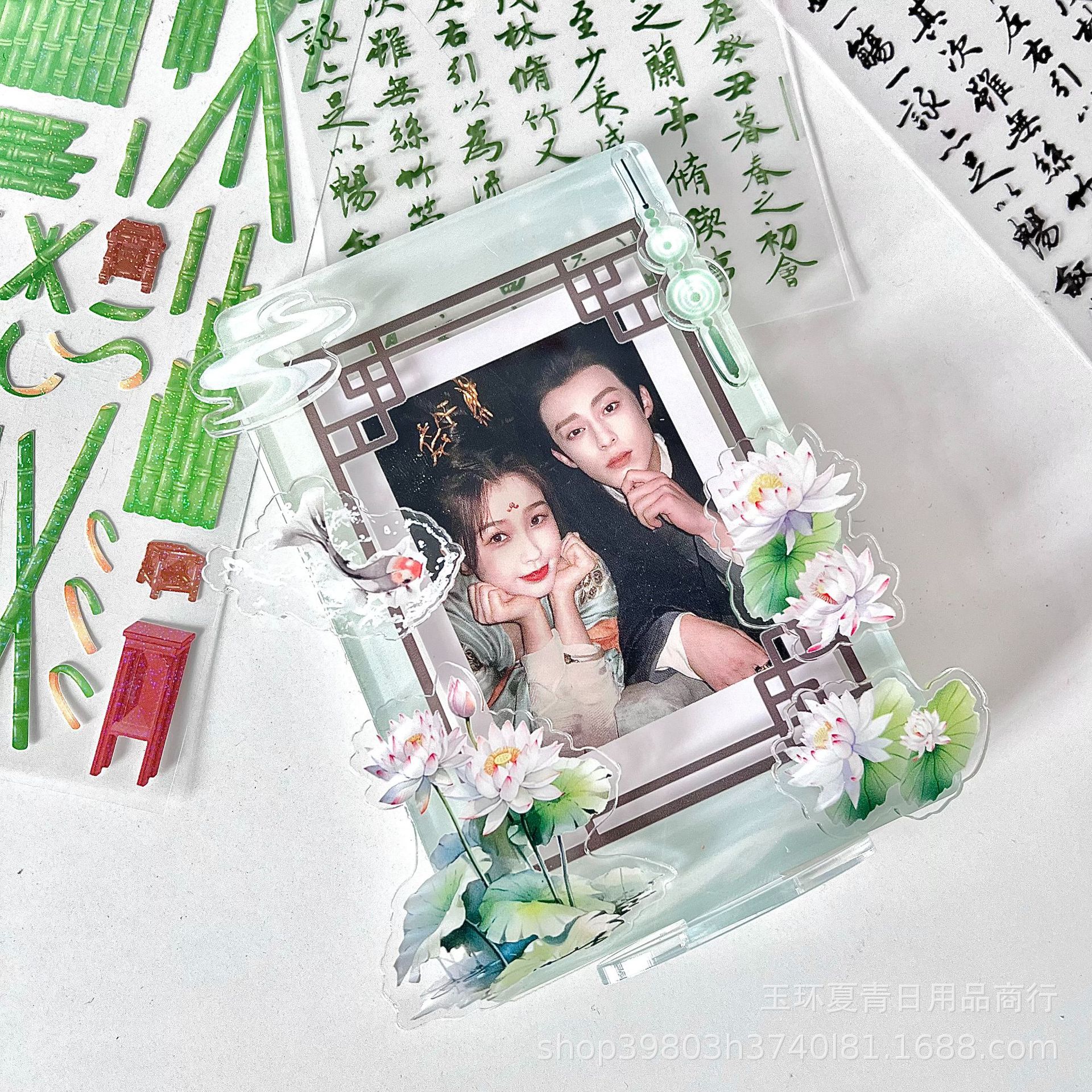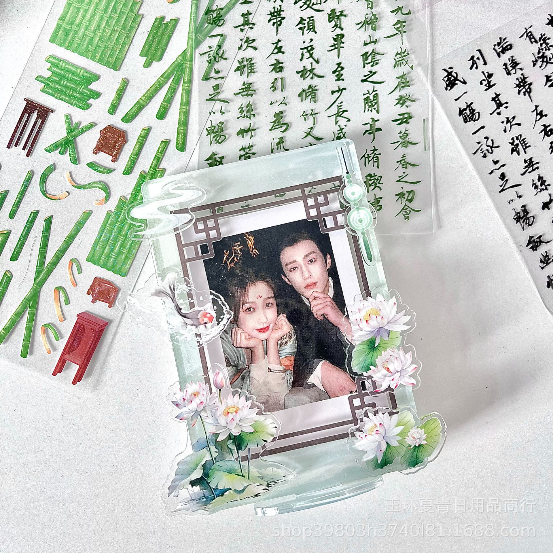 원래 Guofeng 연꽃 연못 달빛 카드 별 추적 3 인치 사진 프레임 디스플레이 프레임 폴라로이드 사진 프레임 아크릴스토어 가기