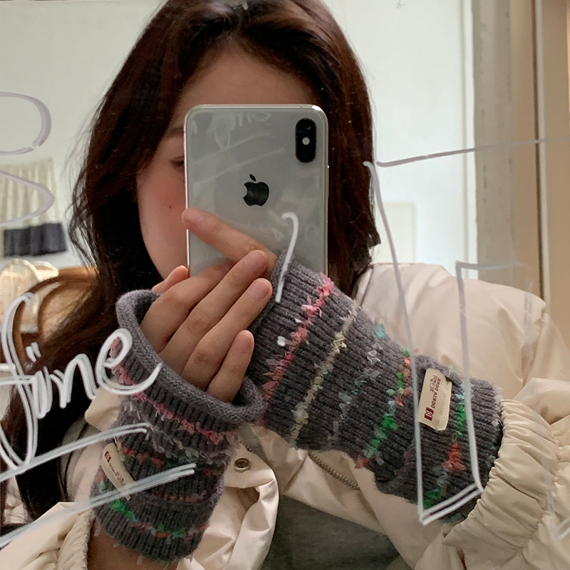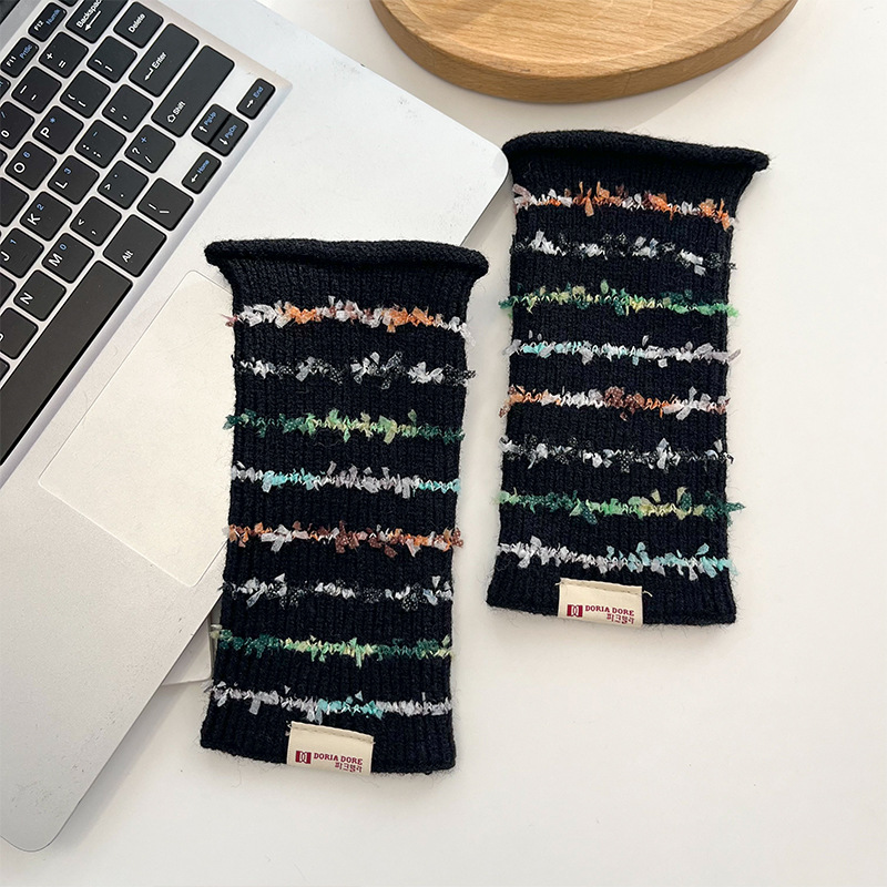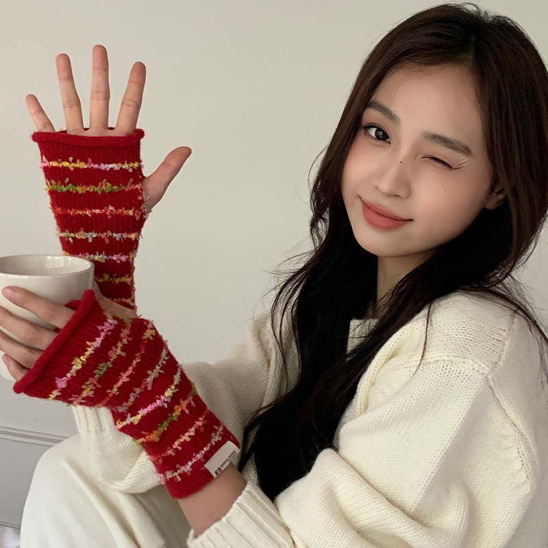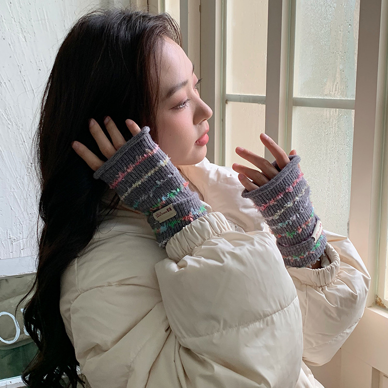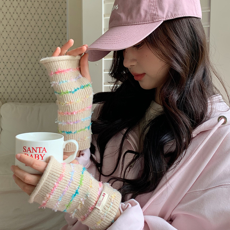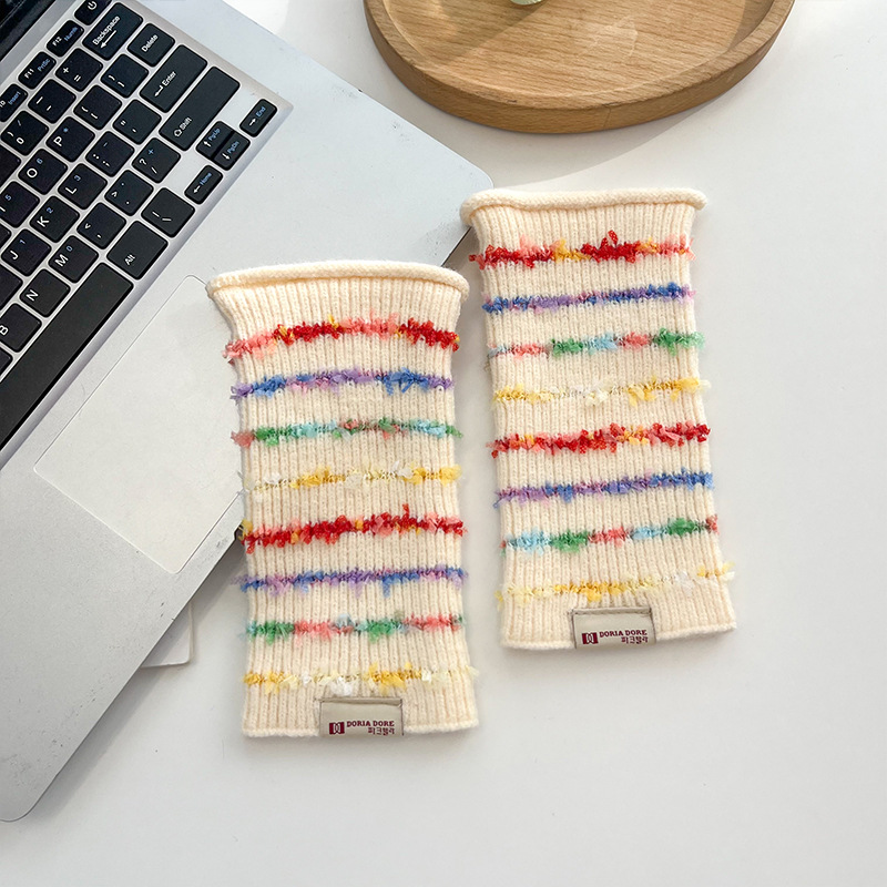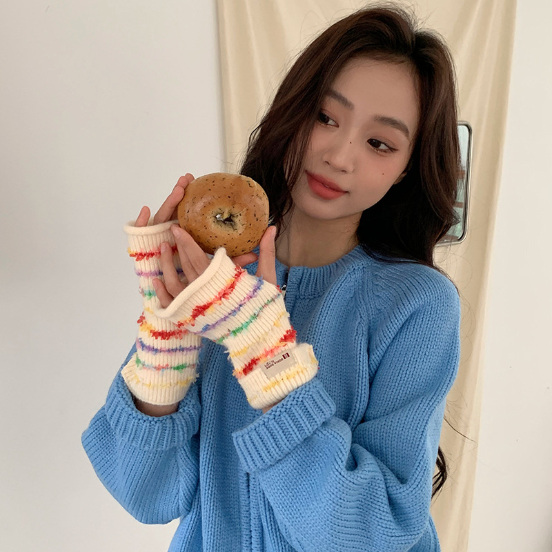 니트 패션 따뜻한 통기성 장갑 겨울 방한 레인보우 라인 인쇄 캐주얼 통기성 울 반 손가락 장갑