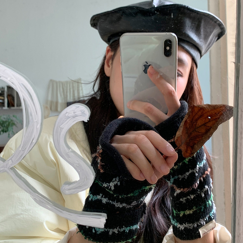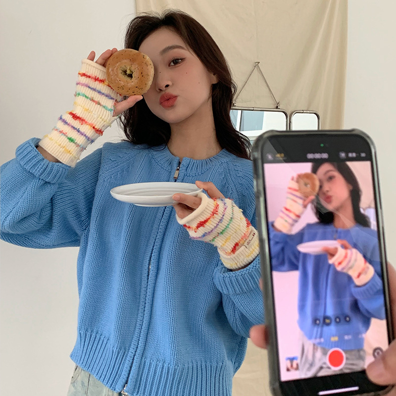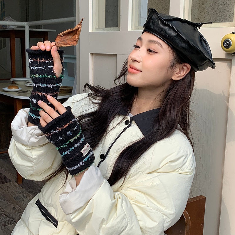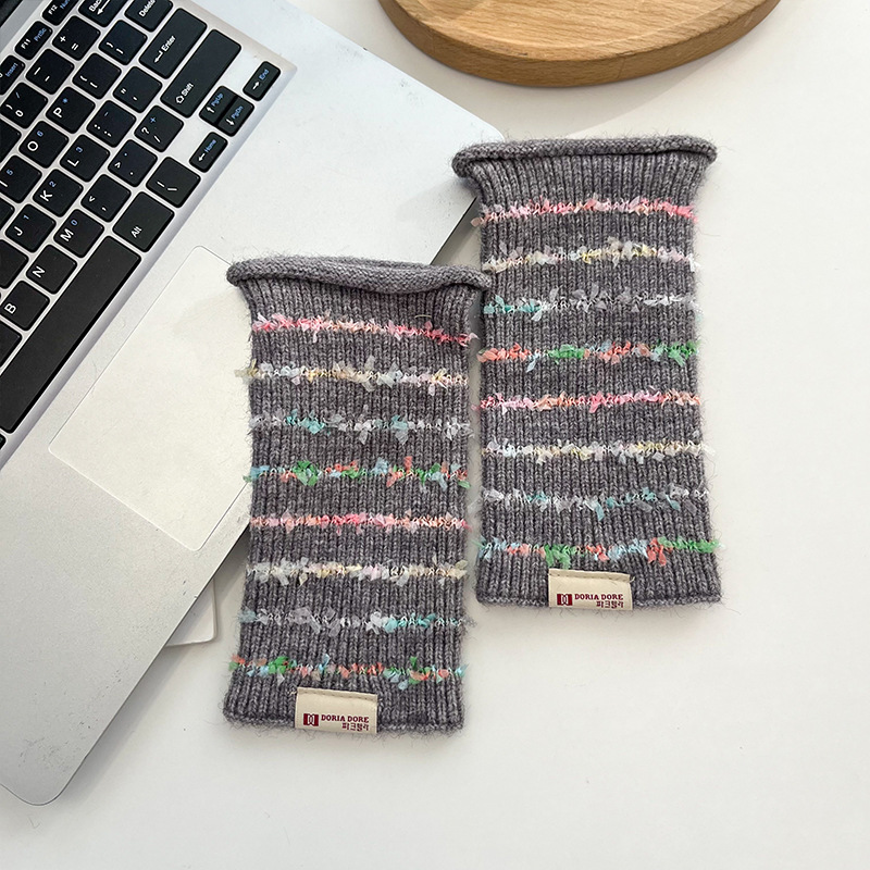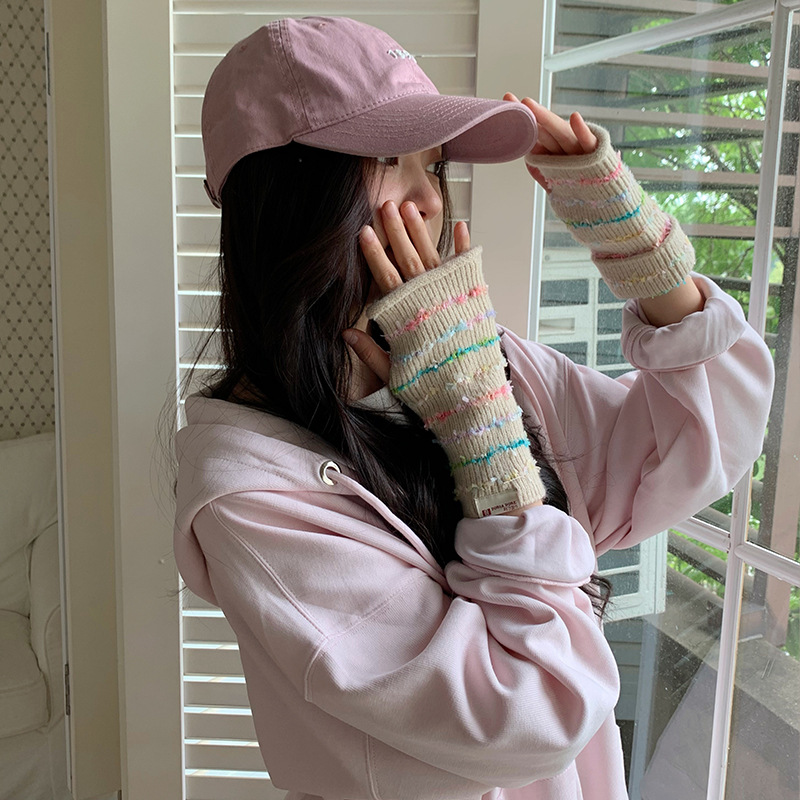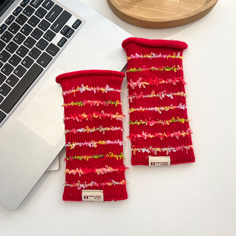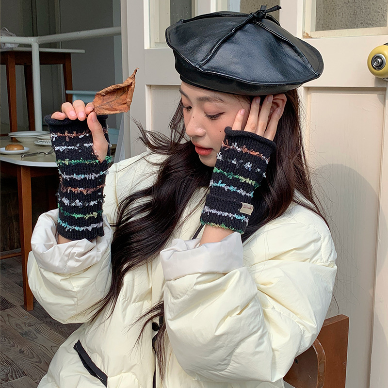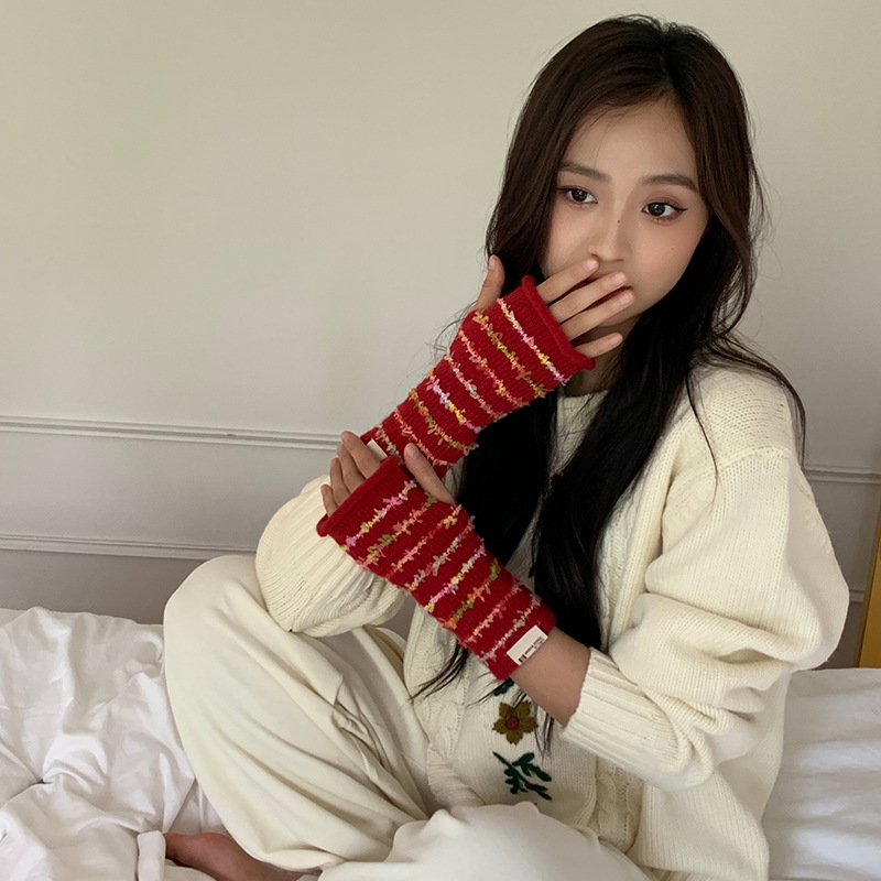 니트 패션 따뜻한 통기성 장갑 겨울 방한 레인보우 라인 인쇄 캐주얼 통기성 울 반 손가락 장갑