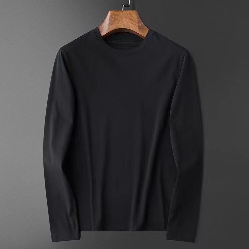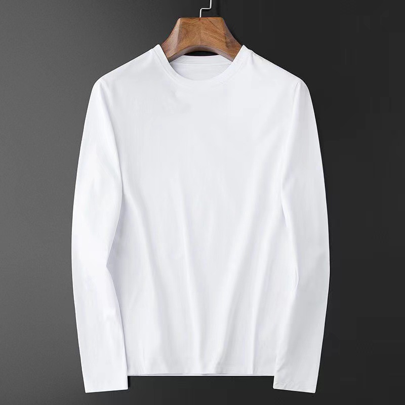 봄과 가을 남자의 라운드 넥 긴팔 티셔츠 느슨한 단색 베이스 셔츠 청소년 가을 옷 플러스 사이즈 캐주얼 남자의 탑