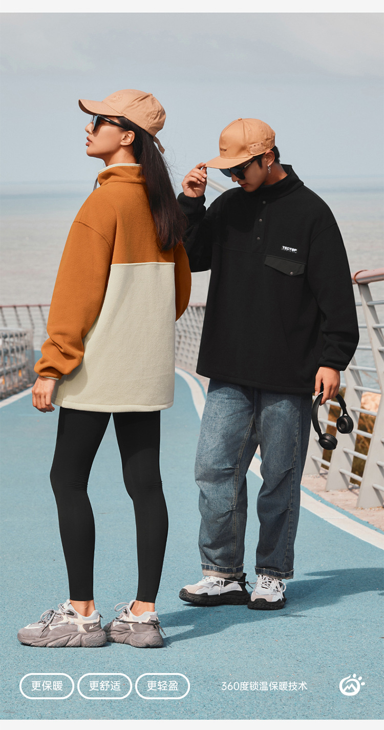 2023 가을과 겨울 새로운 야외 커플 풀오버 양털 여성 패션 패션 컬러 매칭 양털 스웨터 남성용스토어 가기