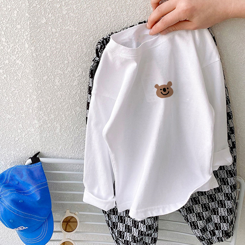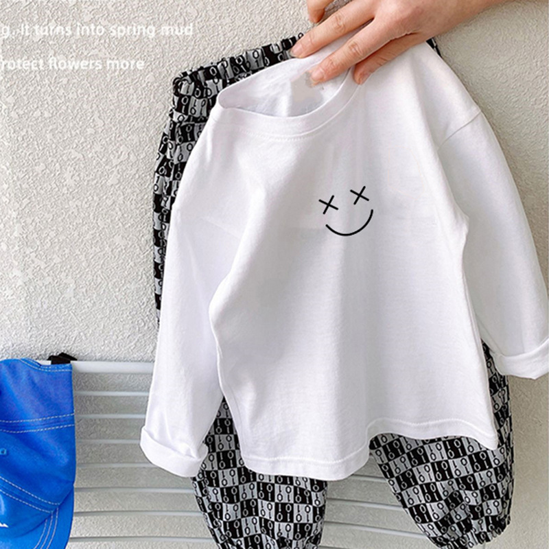 면 어린이 티셔츠 긴팔 남성 및 여성 아동복 2023 귀여운 만화 애니메이션 어린이 바닥 탑 봄과 가을스토어 가기