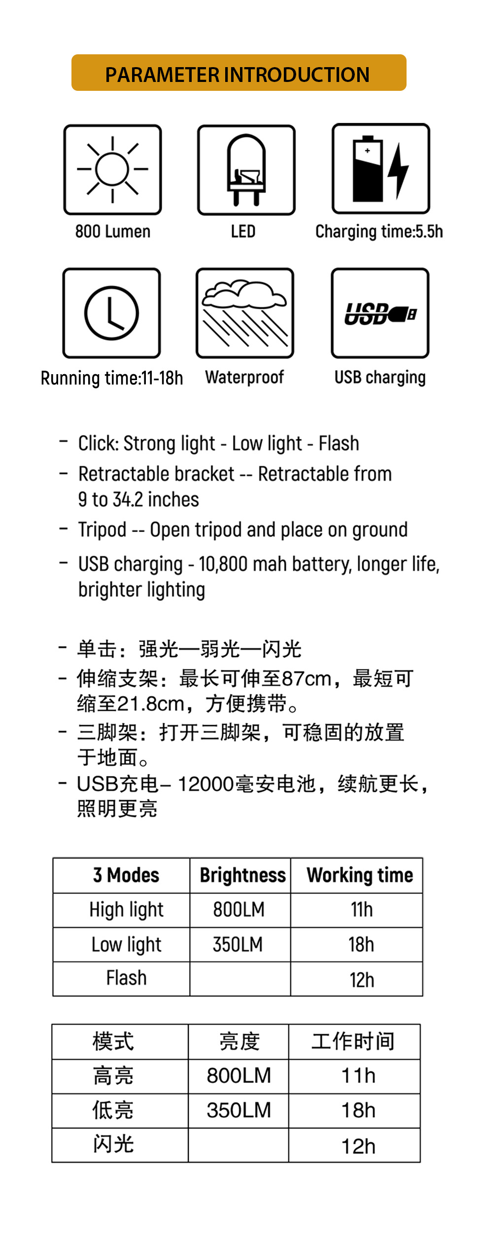 야외 캠핑 램프 휴대용 분위기 램프 텐트 램프 멀티 레벨 디밍 램프 낚시 램프 실속 작업 램프