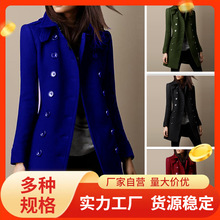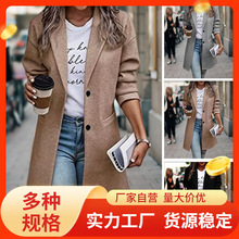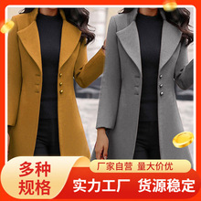 2023秋冬女士毛呢外套新品韩版独立站加长款西装领大衣现货批发