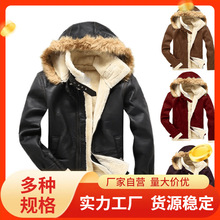 2023男冬季外贸批发皮毛一体大衣现货加厚仿皮绒欧码男夹克独立站