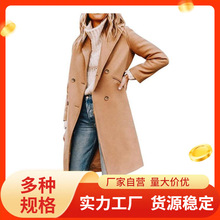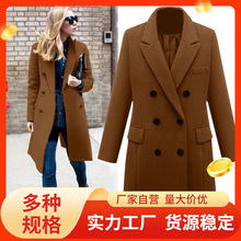 新品现货2023女毛呢外套中长款亚马逊爆单双排扣呢子外套外贸批发