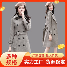 2023秋冬女式加厚毛呢大衣韩版独立站批发爆单女款呢料外套龙凤呢