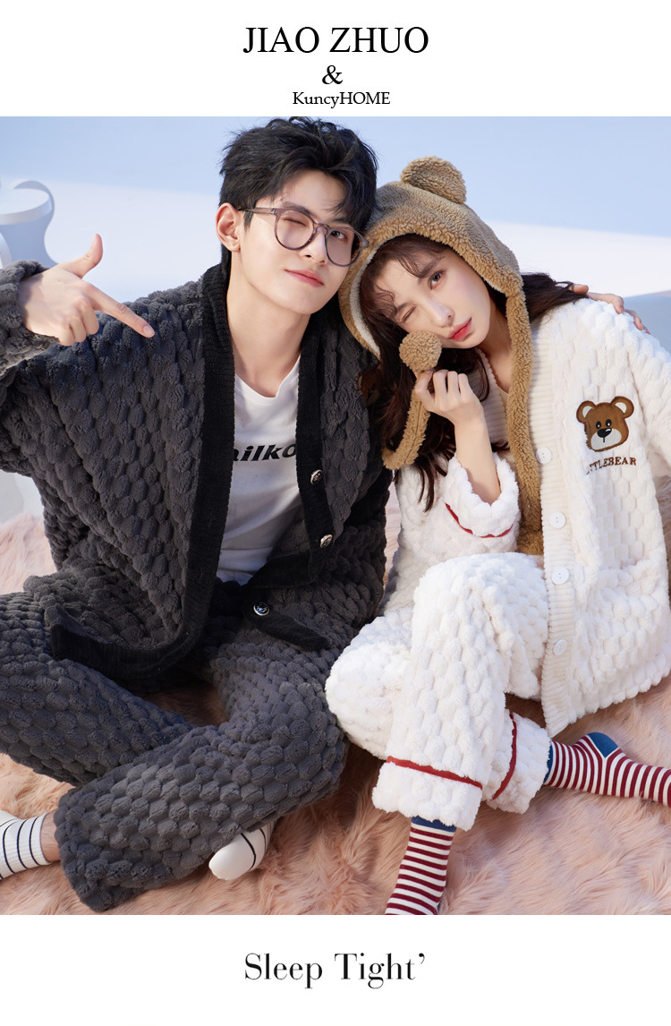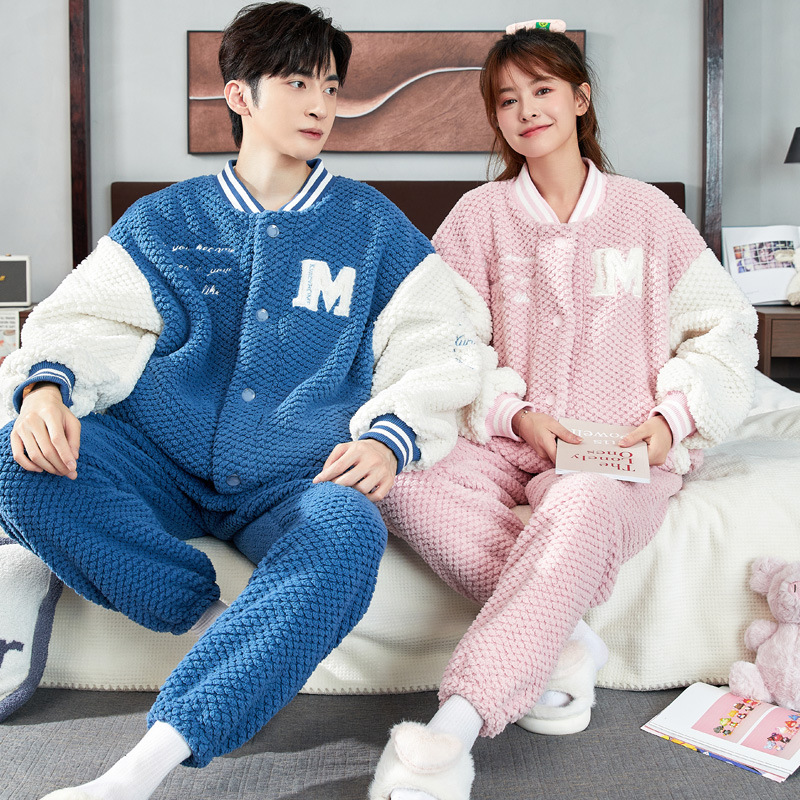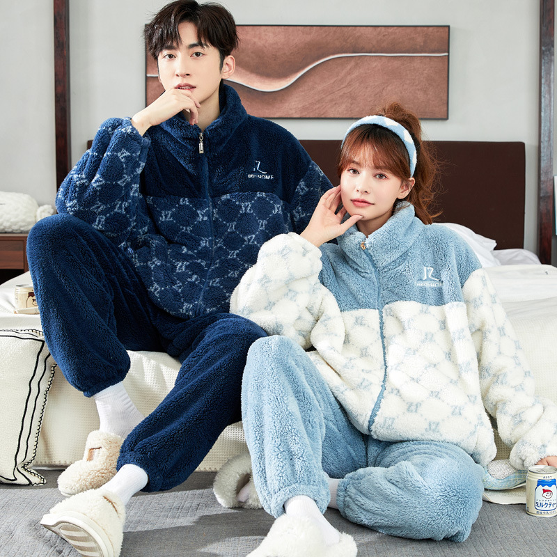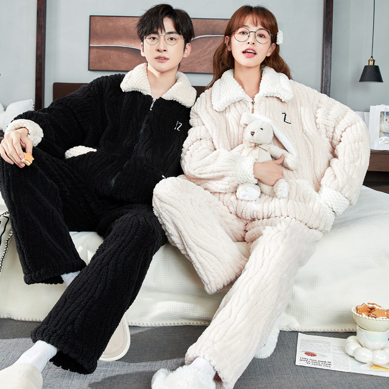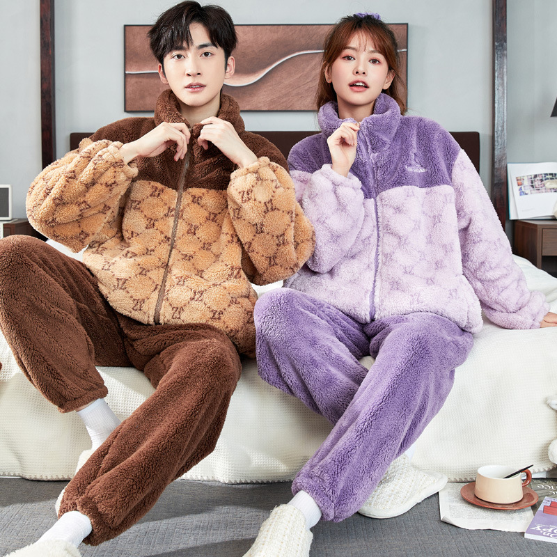 2025년 신상 커플 잠옷 여성용 가을 겨울 코랄 벨벳 고급 대형 사이즈 두꺼운 남성용 홈웨어 세트스토어 가기