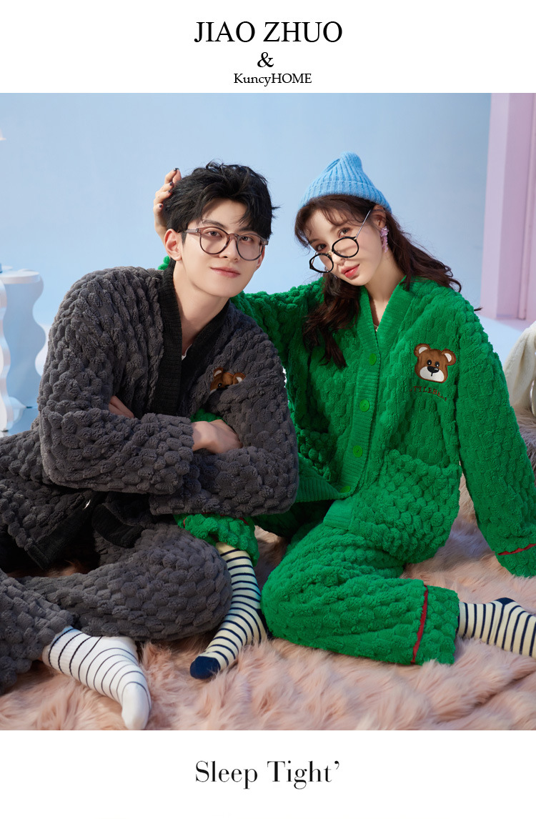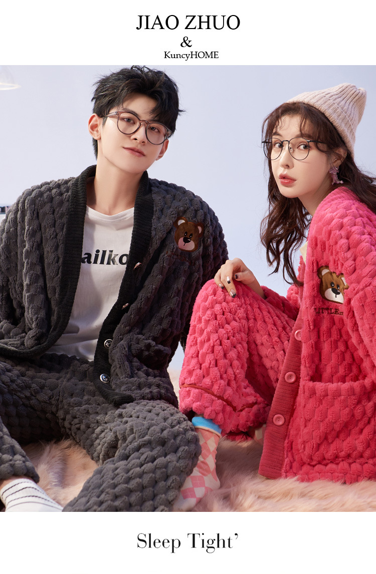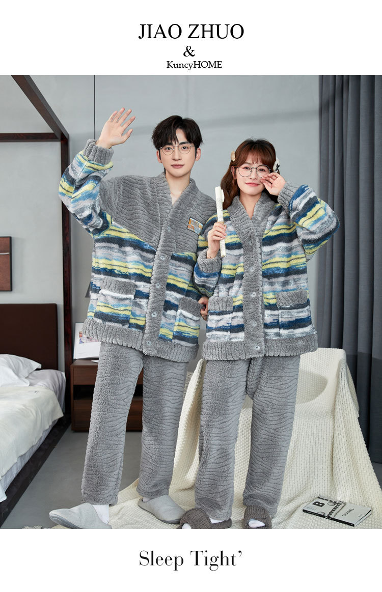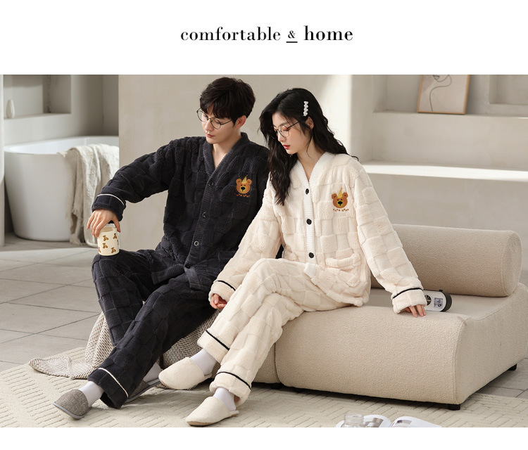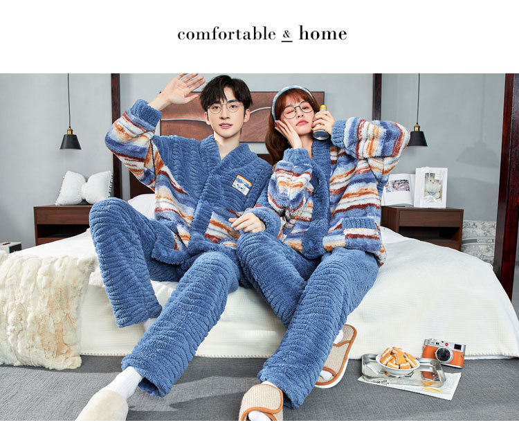 2025년 신상 커플 잠옷 여성용 가을 겨울 코랄 벨벳 고급 대형 사이즈 두꺼운 남성용 홈웨어 세트스토어 가기