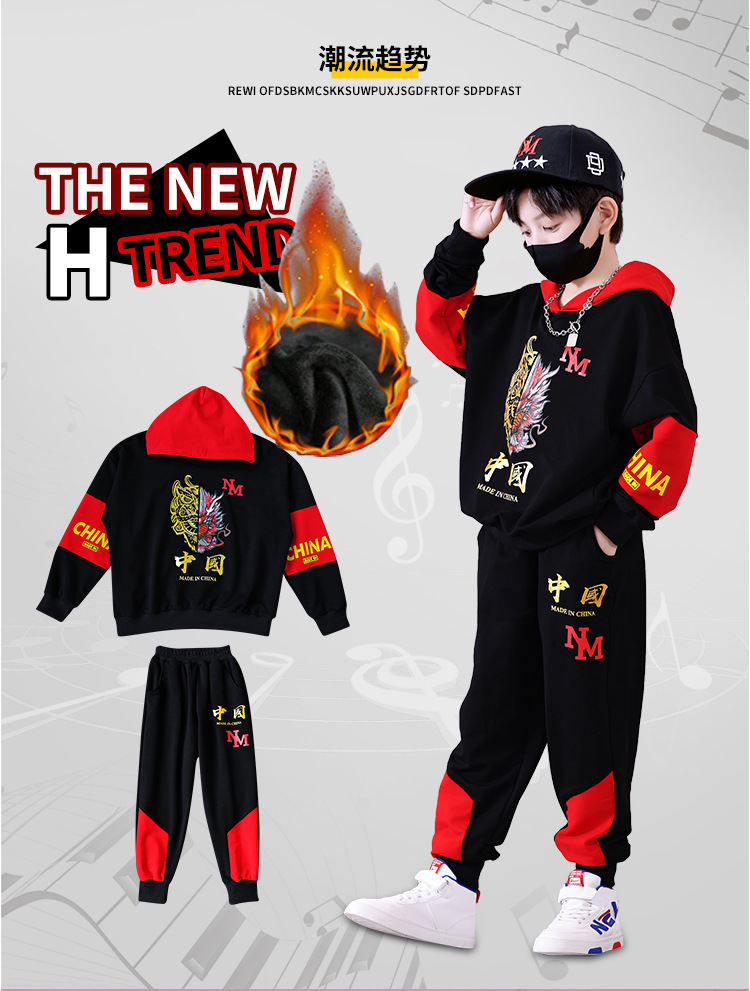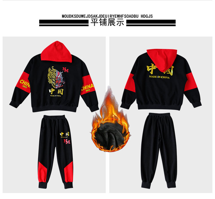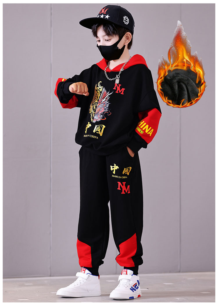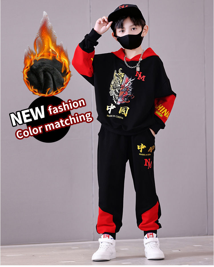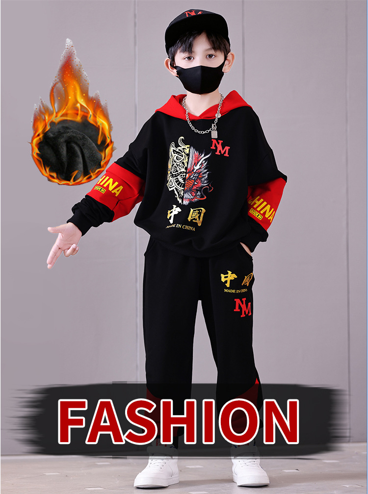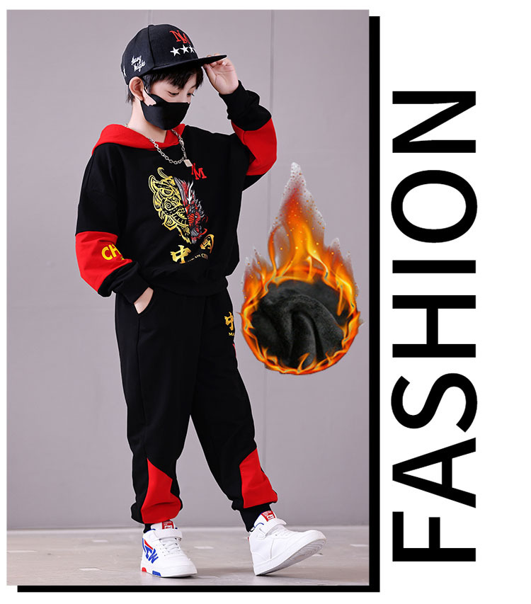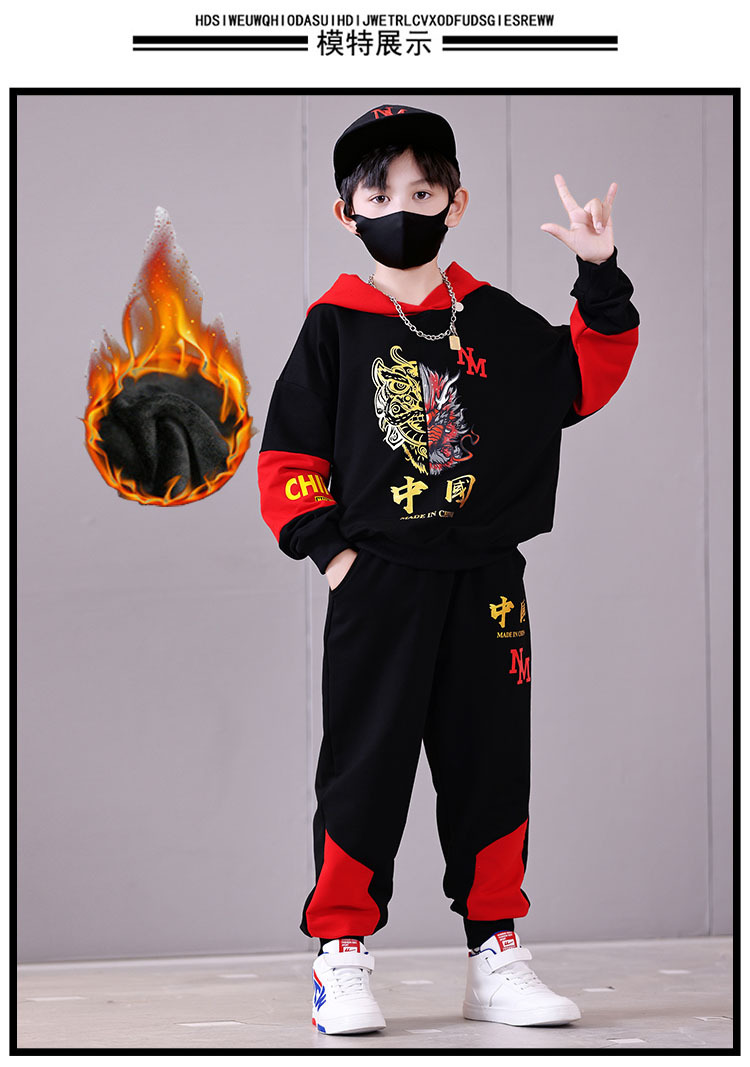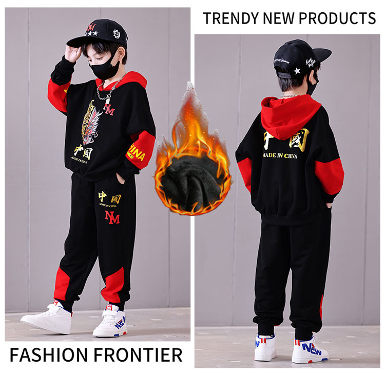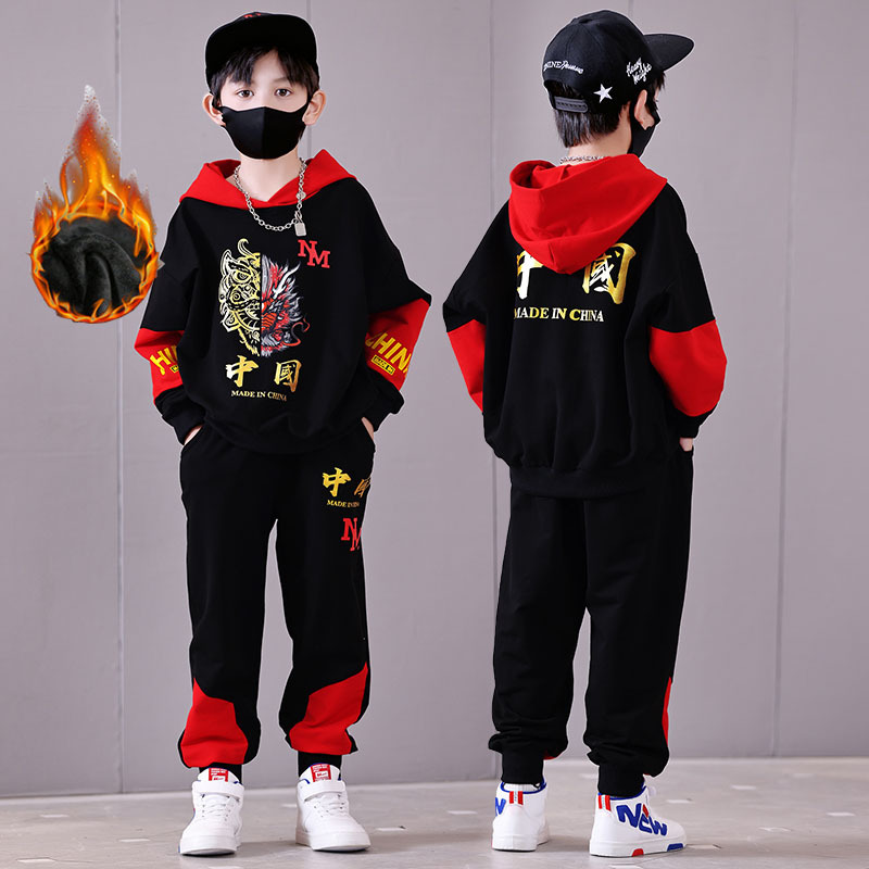 남아용 양털 2024 겨울 신상 중대형 아동용 스웨트 셔츠 투피스 세트, 멋진 스포츠 한국식 겨울 정장 트렌디스토어 가기
