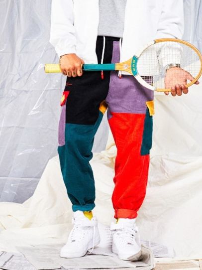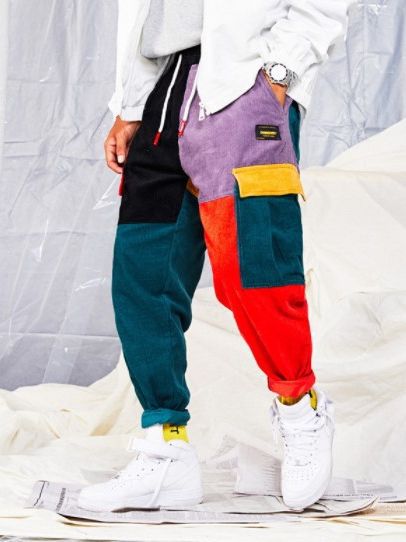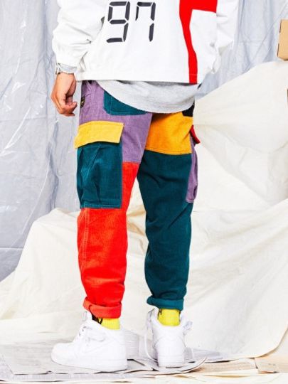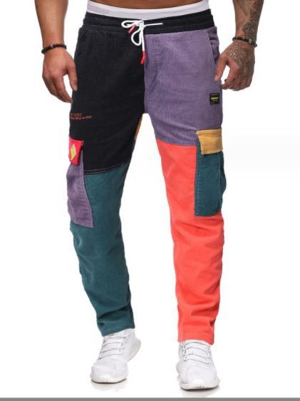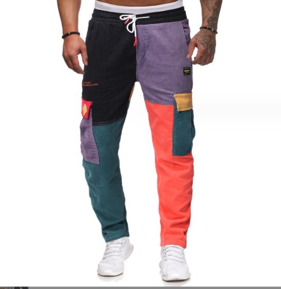 대외 무역 뜨거운 판매 AliExpress Corduroy 트렌디 브랜드 바지 남성 스티칭 대비 컬러 청바지 캐주얼 풋 크레인 바지