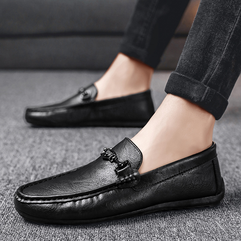 남성 신발 2025 새로운 남성 비니 신발 가을 캐주얼 가죽 신발 남성 게으른 슬립 온 드라이빙 도매 비즈니스스토어 가기