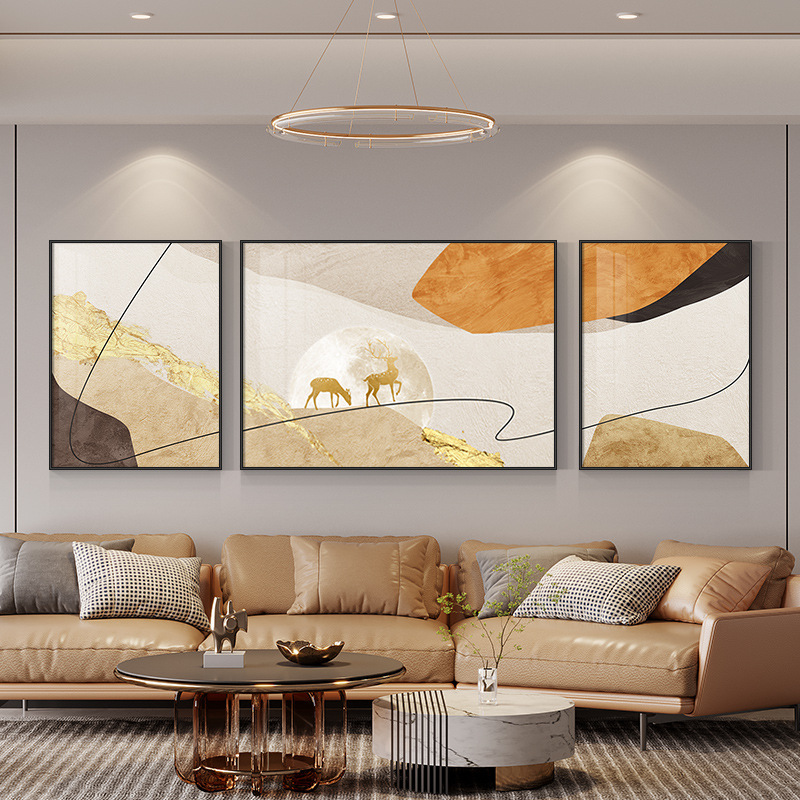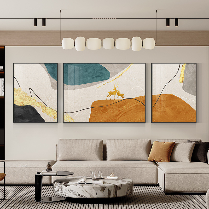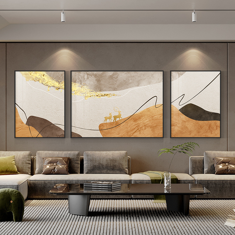 현대 미니멀리스트 장식 그림 거실 추상 소파 배경 사슴 Shengcai 침대 옆 대기 벽화와 벽 트리플 교수형 그림