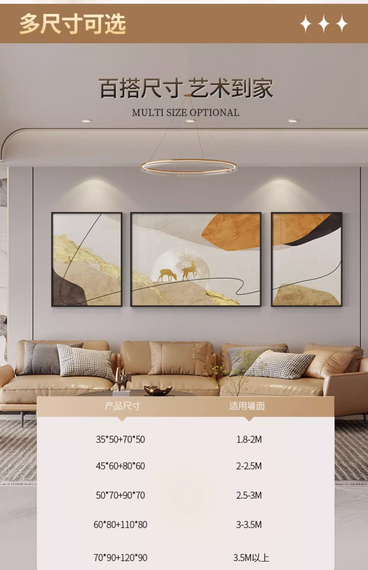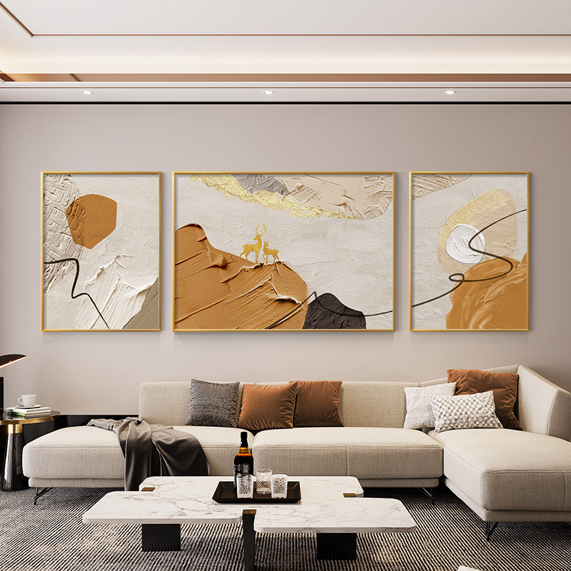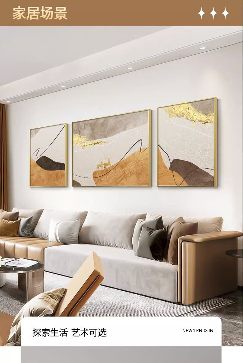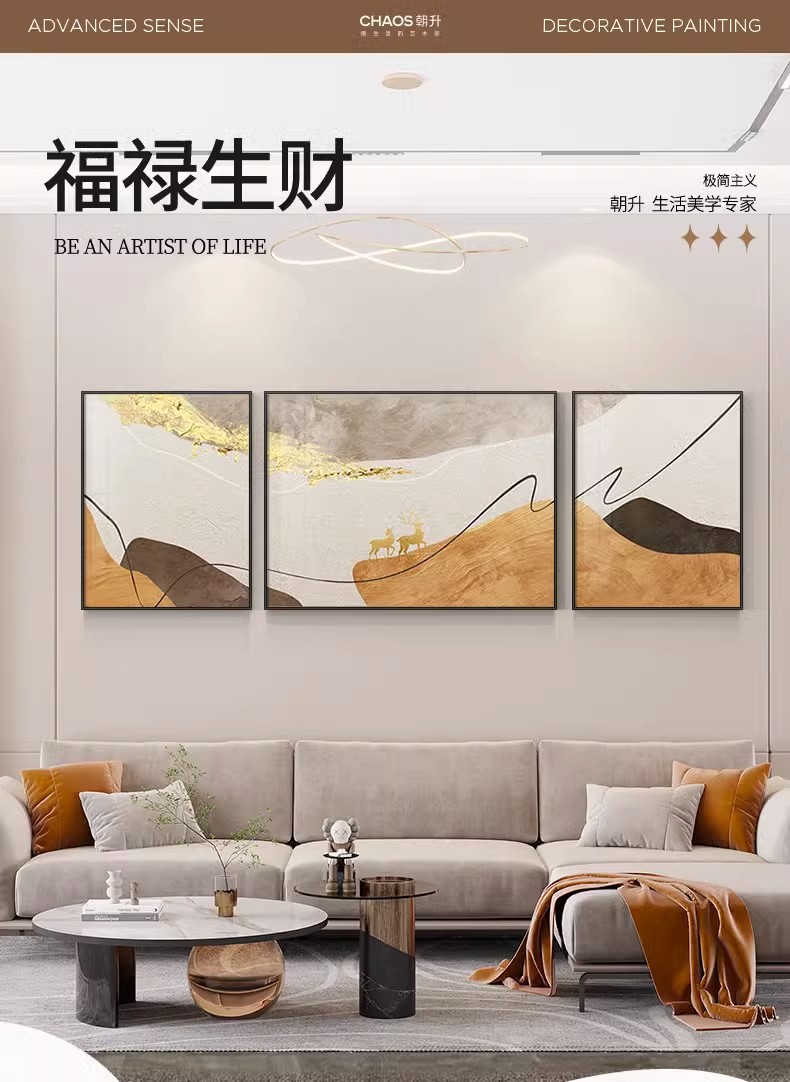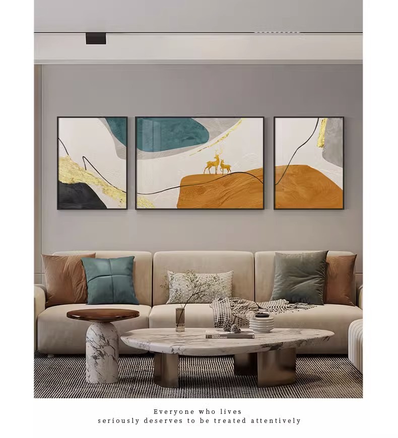 현대 미니멀리스트 장식 그림 거실 추상 소파 배경 사슴 Shengcai 침대 옆 대기 벽화와 벽 트리플 교수형 그림스토어 가기