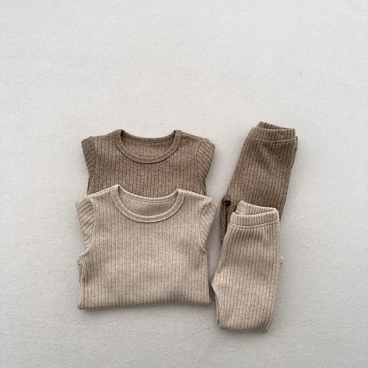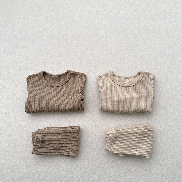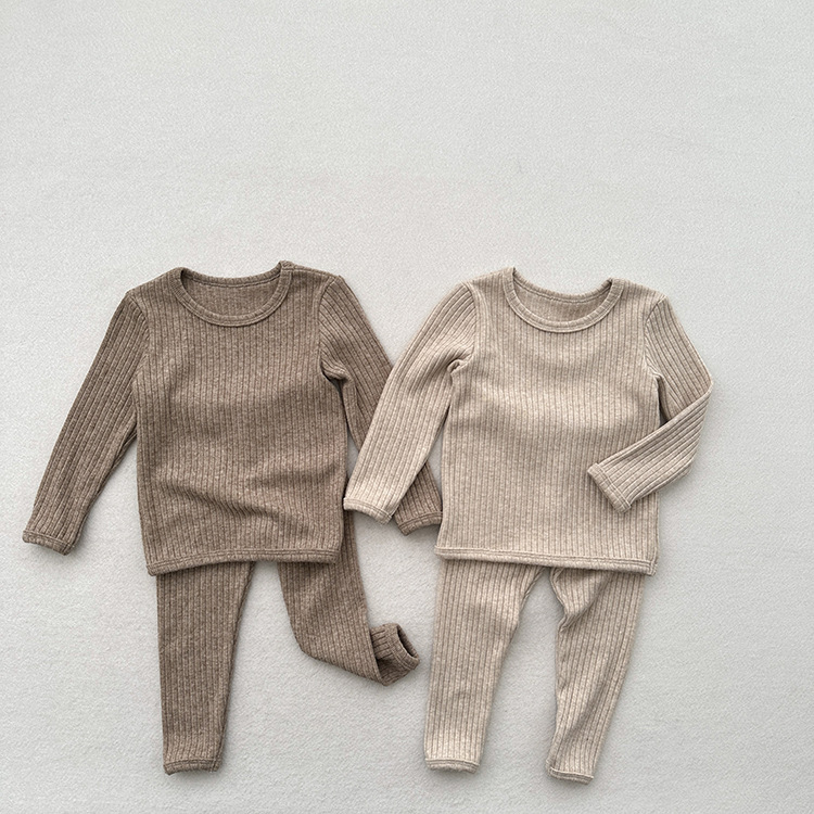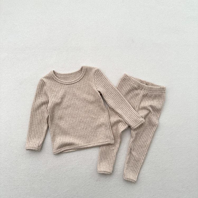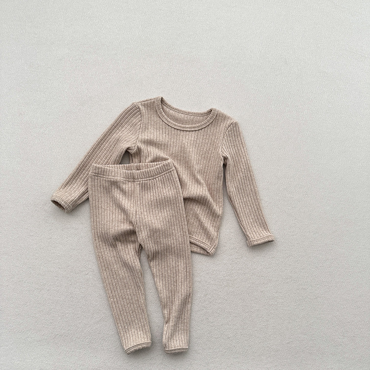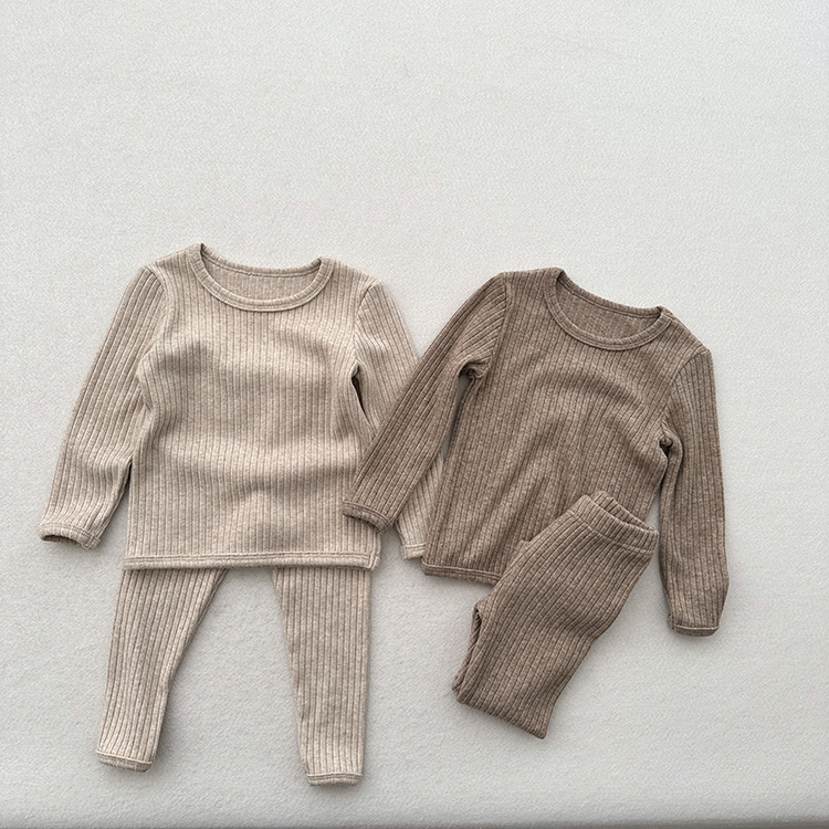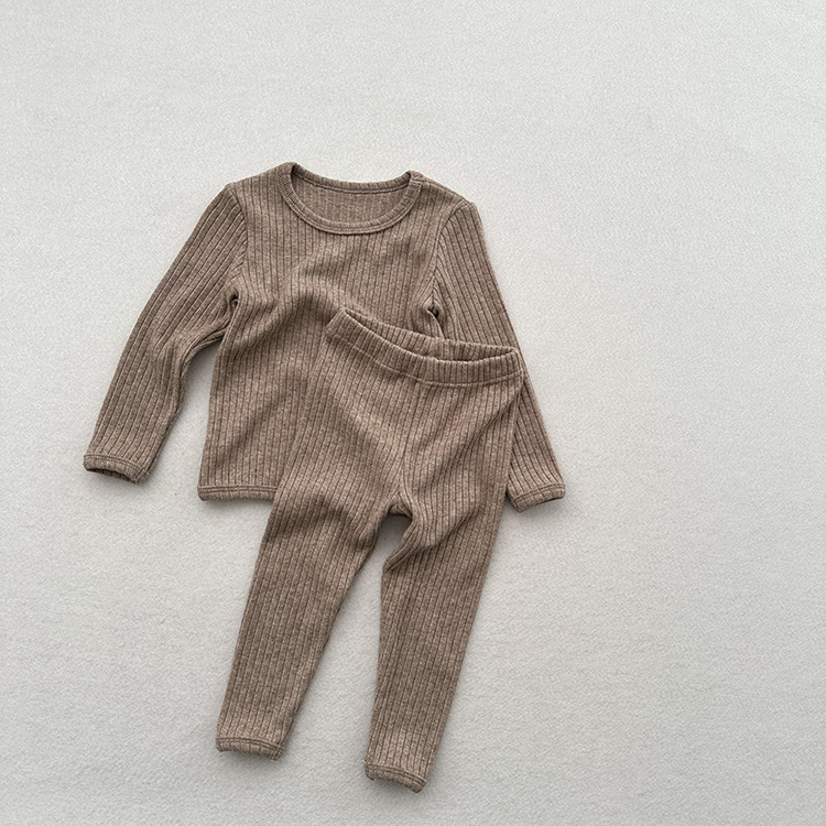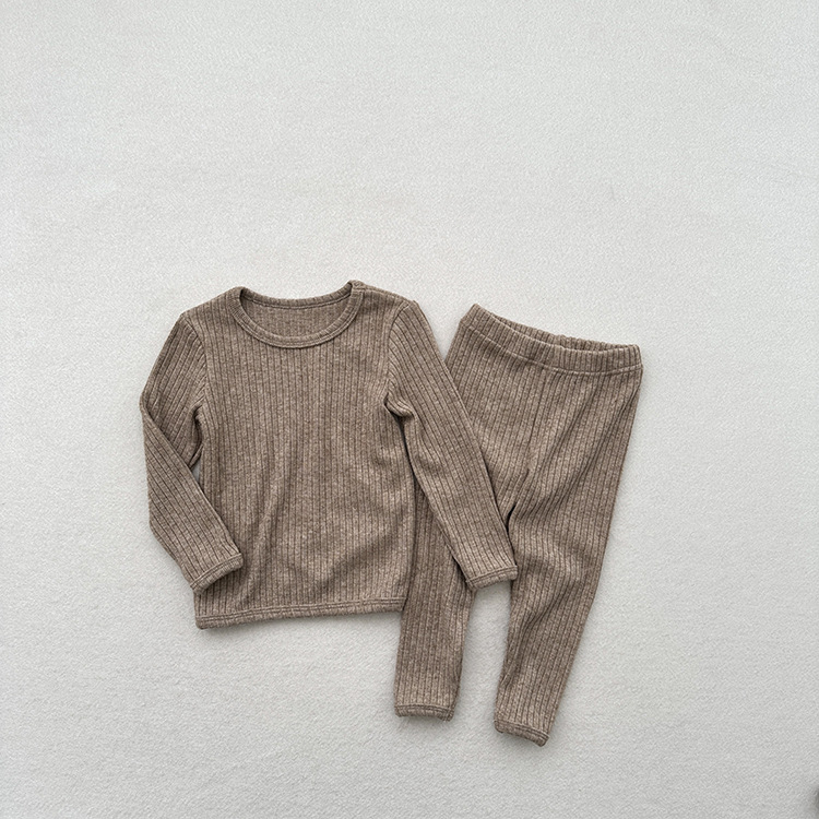 어린이 모리 스타일 지구 색상 피트 스트립 가정 옷 세트 가을과 겨울 새로운 소년과 소녀 북유럽 스타일 따뜻한 레깅스 바지스토어 가기